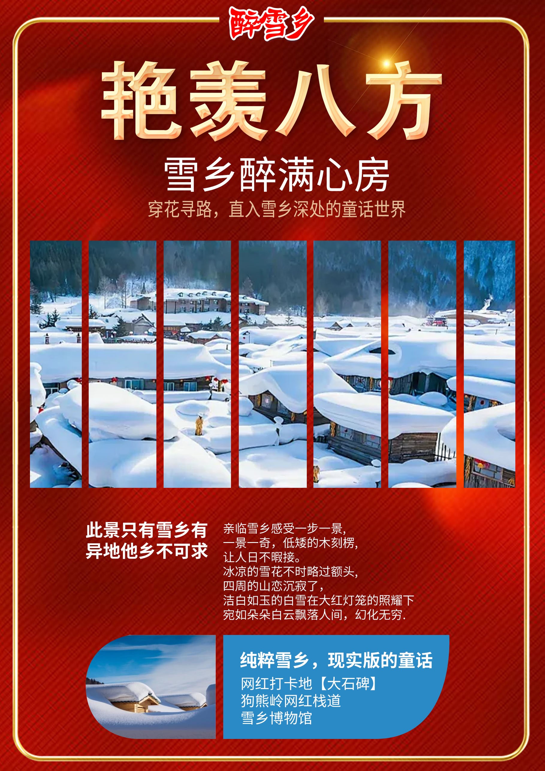 中国雪乡入住携程4钻雪韵大街【醉雪乡度假酒店,独家雪景房1晚】独卫浴四人标间(每户一间,绝不拼房);