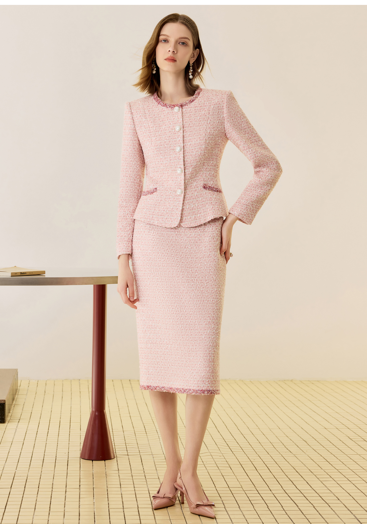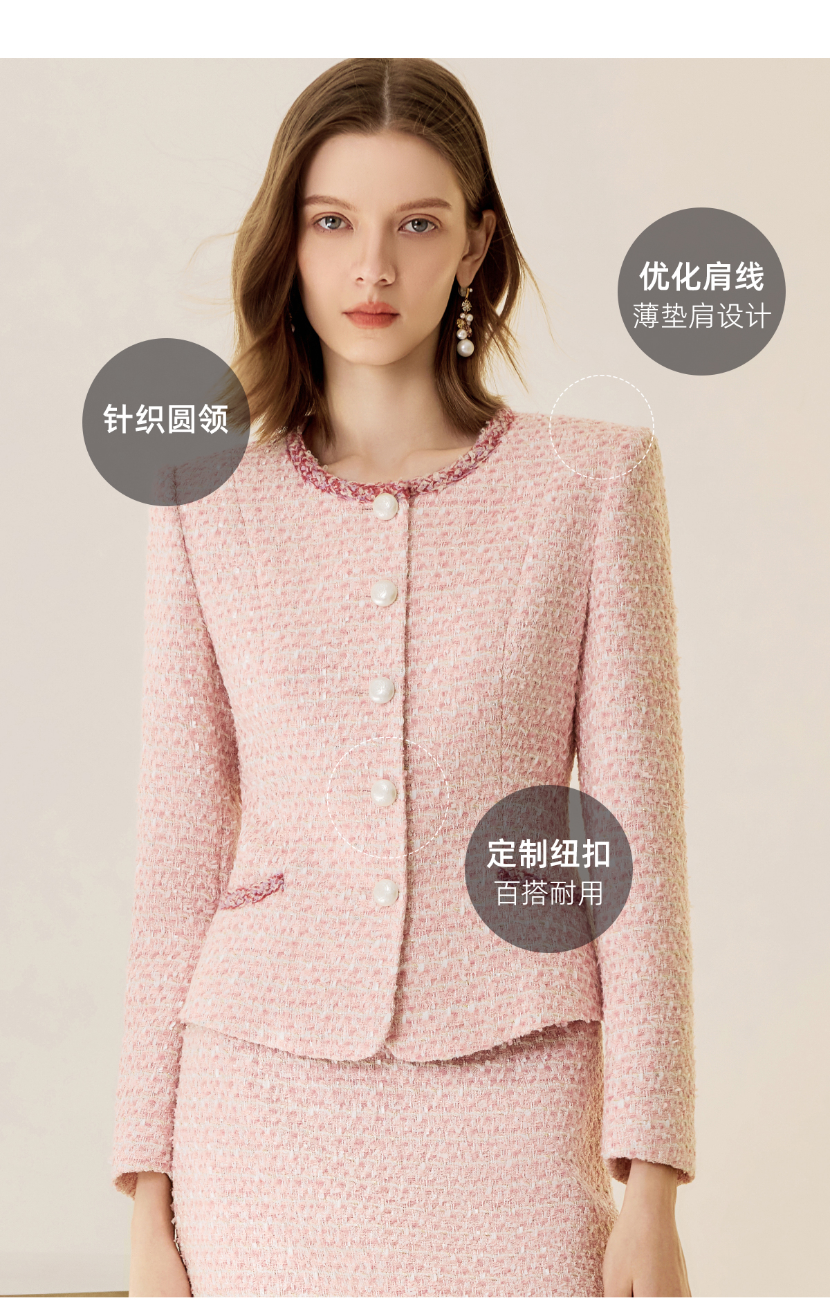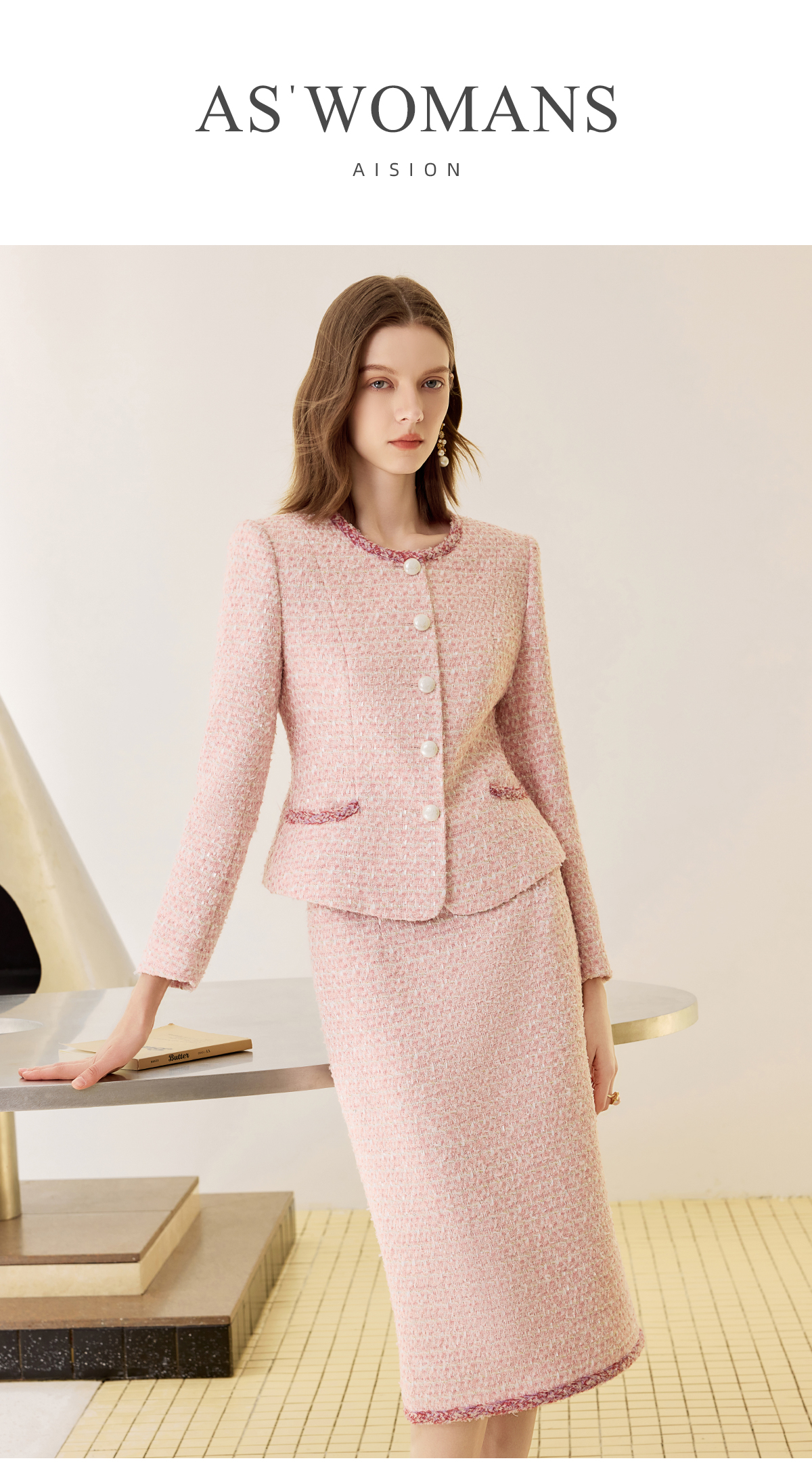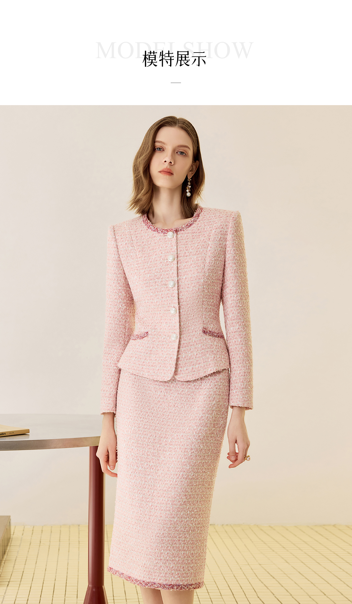 AD粉色小香风套装裙女2025新款秋冬高级感气质名媛高端职业装正装