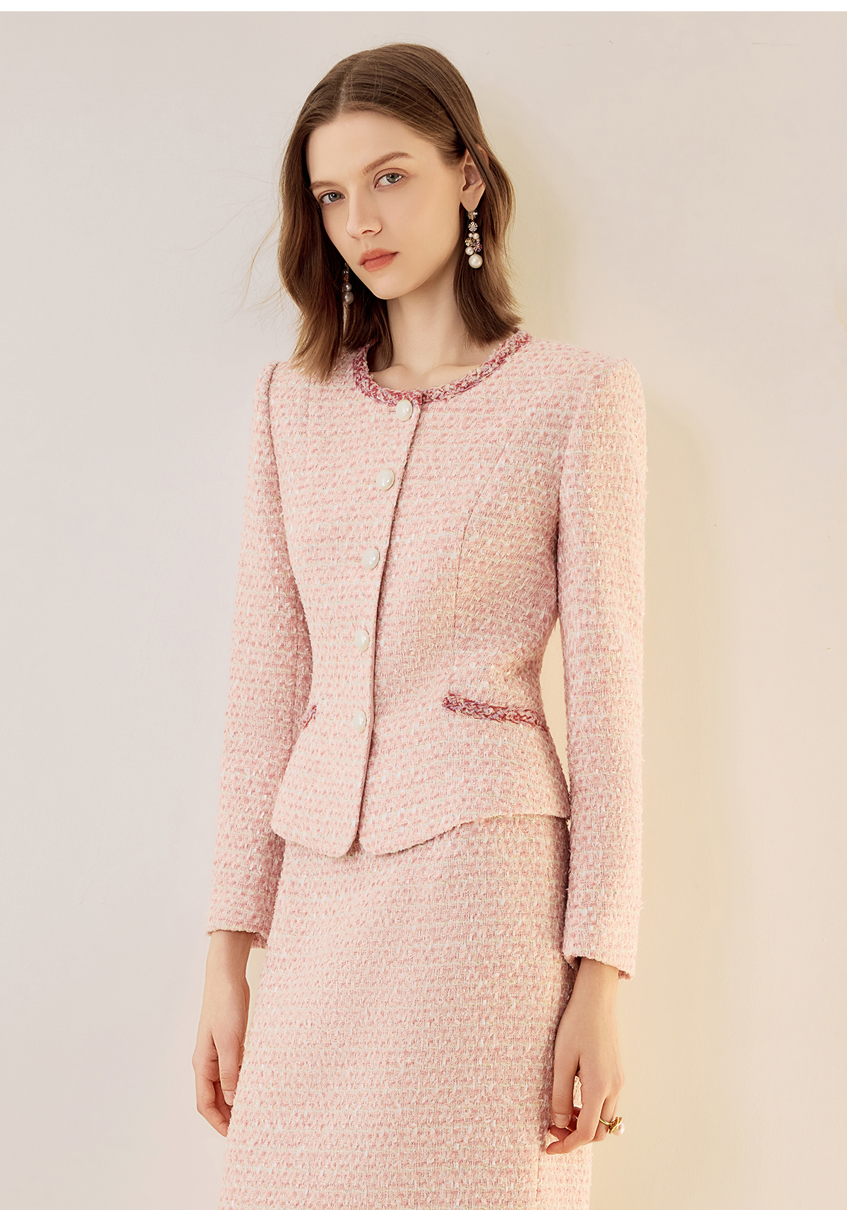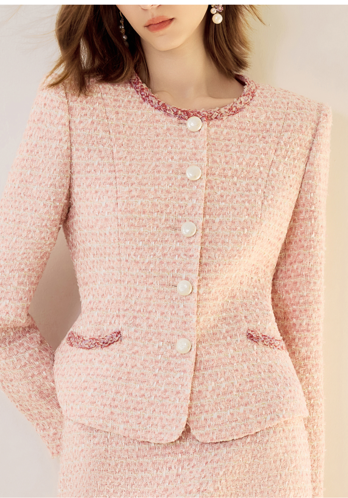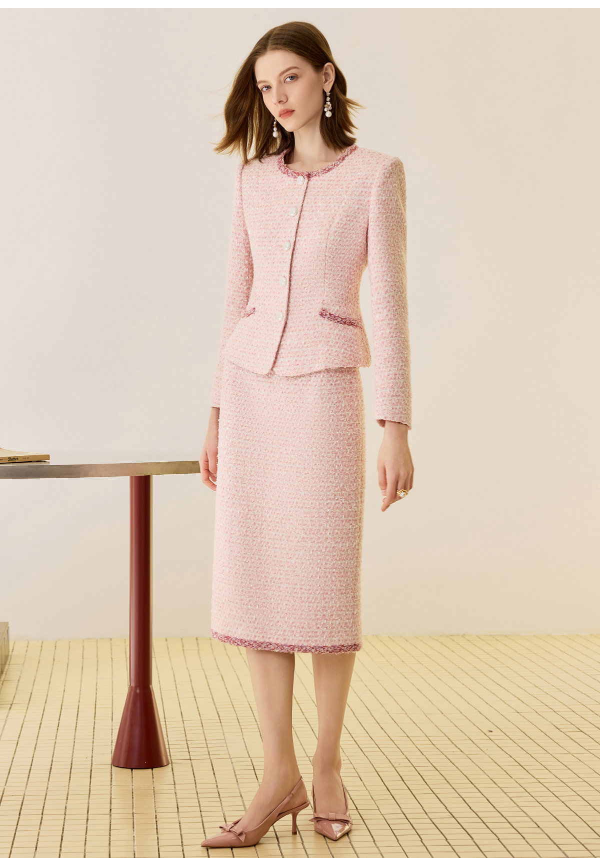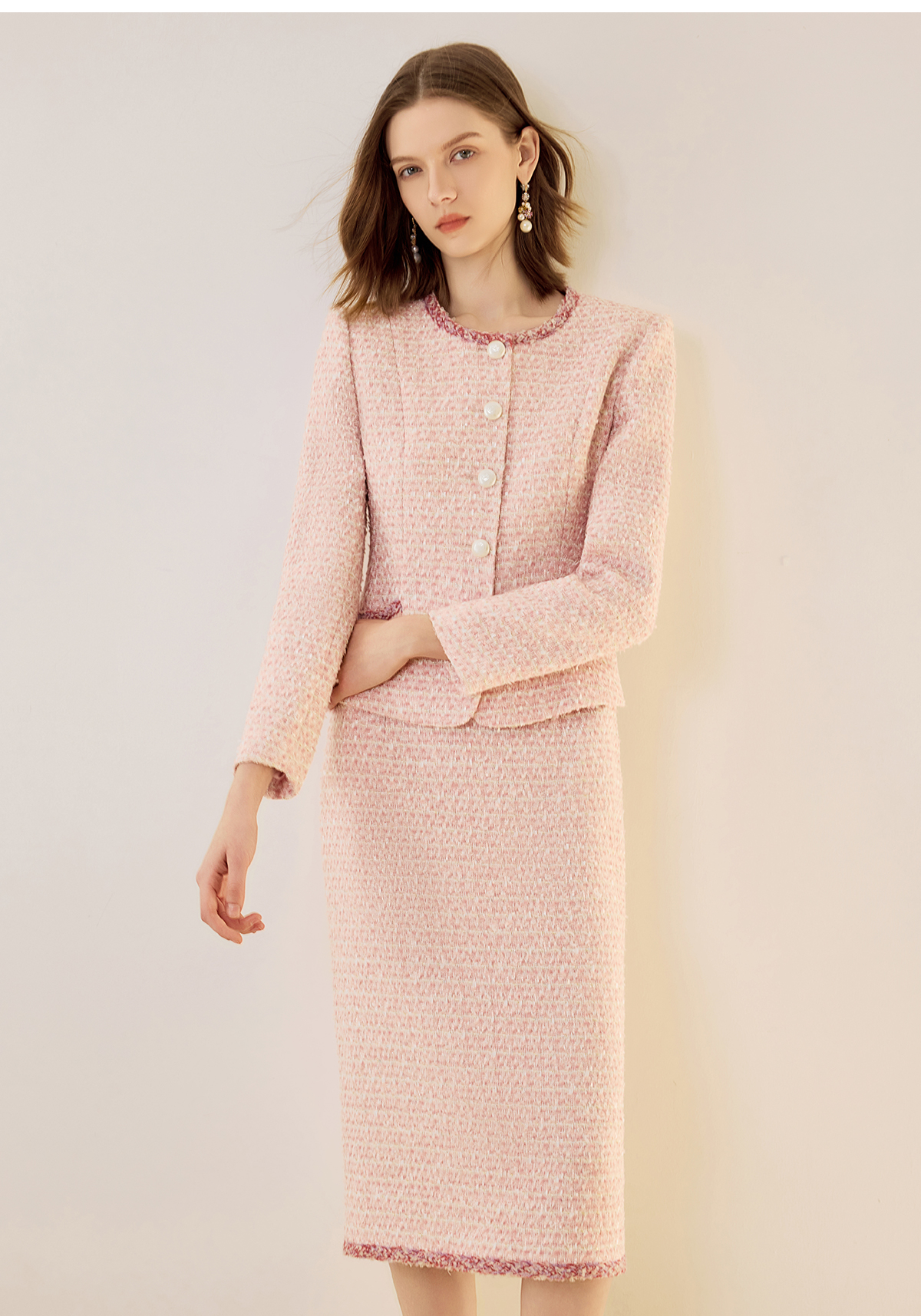 AD粉色小香风套装裙女2025新款秋冬高级感气质名媛高端职业装正装