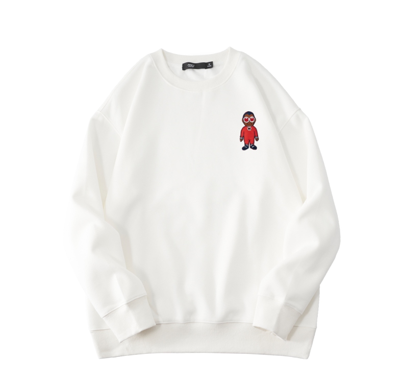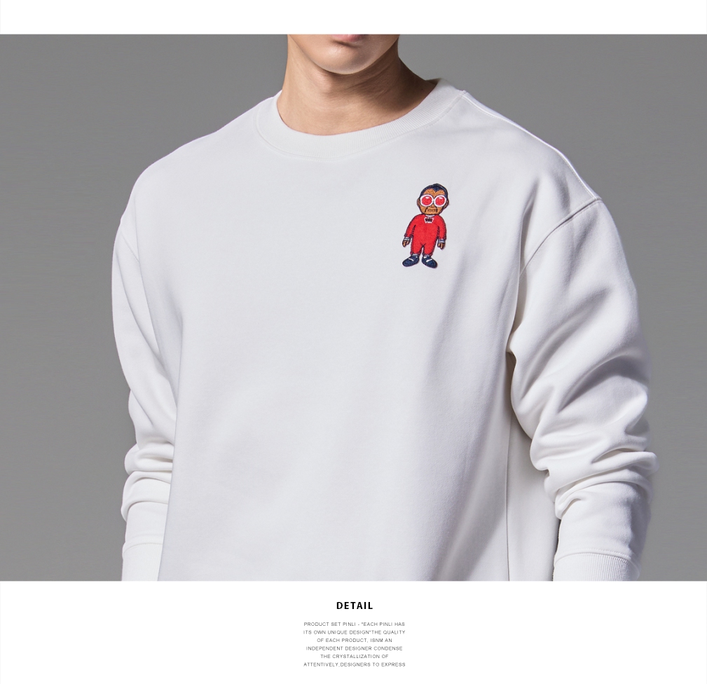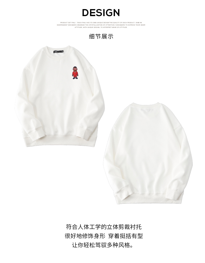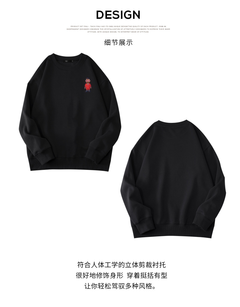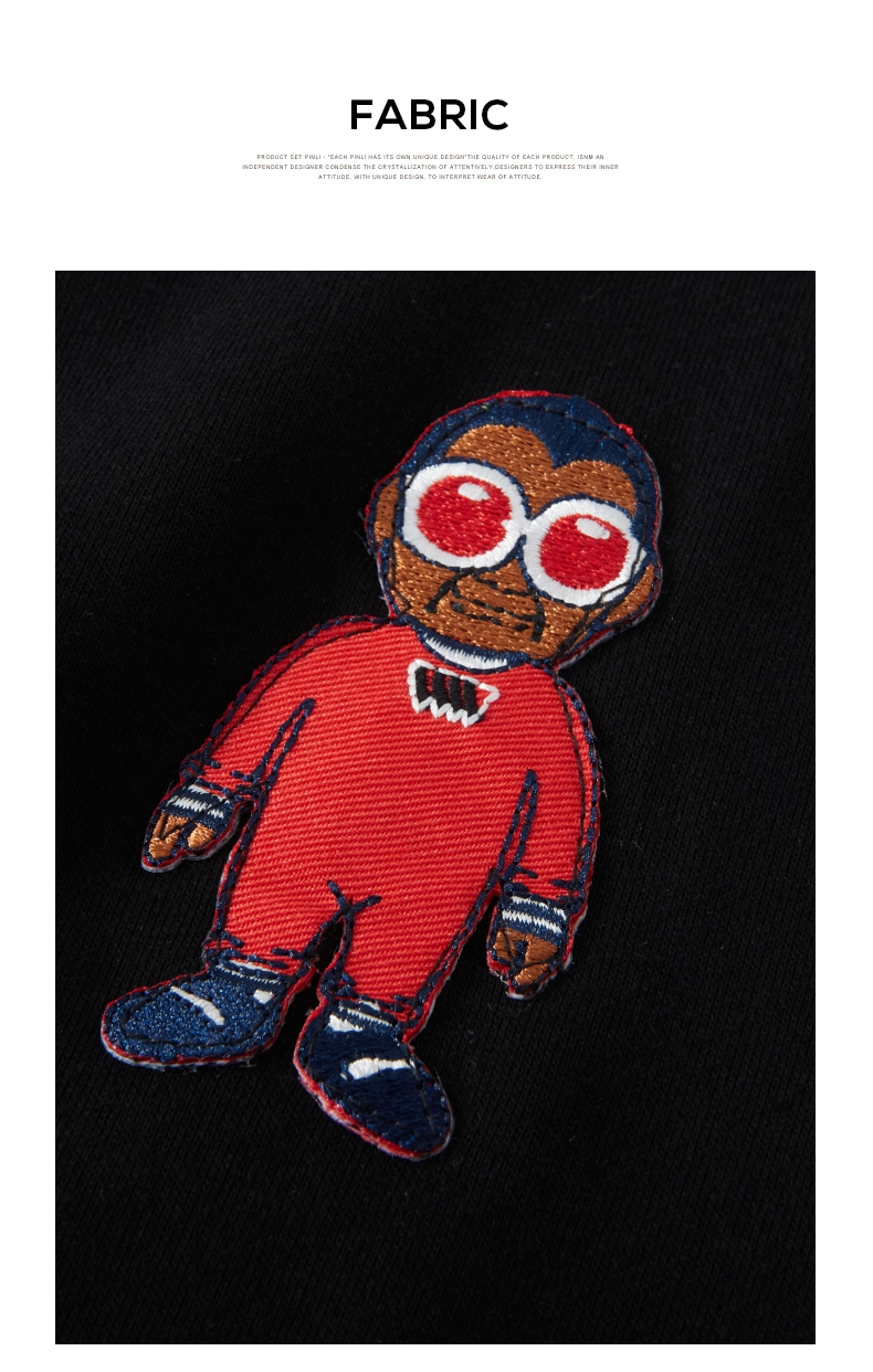 PINLI品立2024秋季新款宽松圆领卡通贴布绣套头卫衣男BG243109046