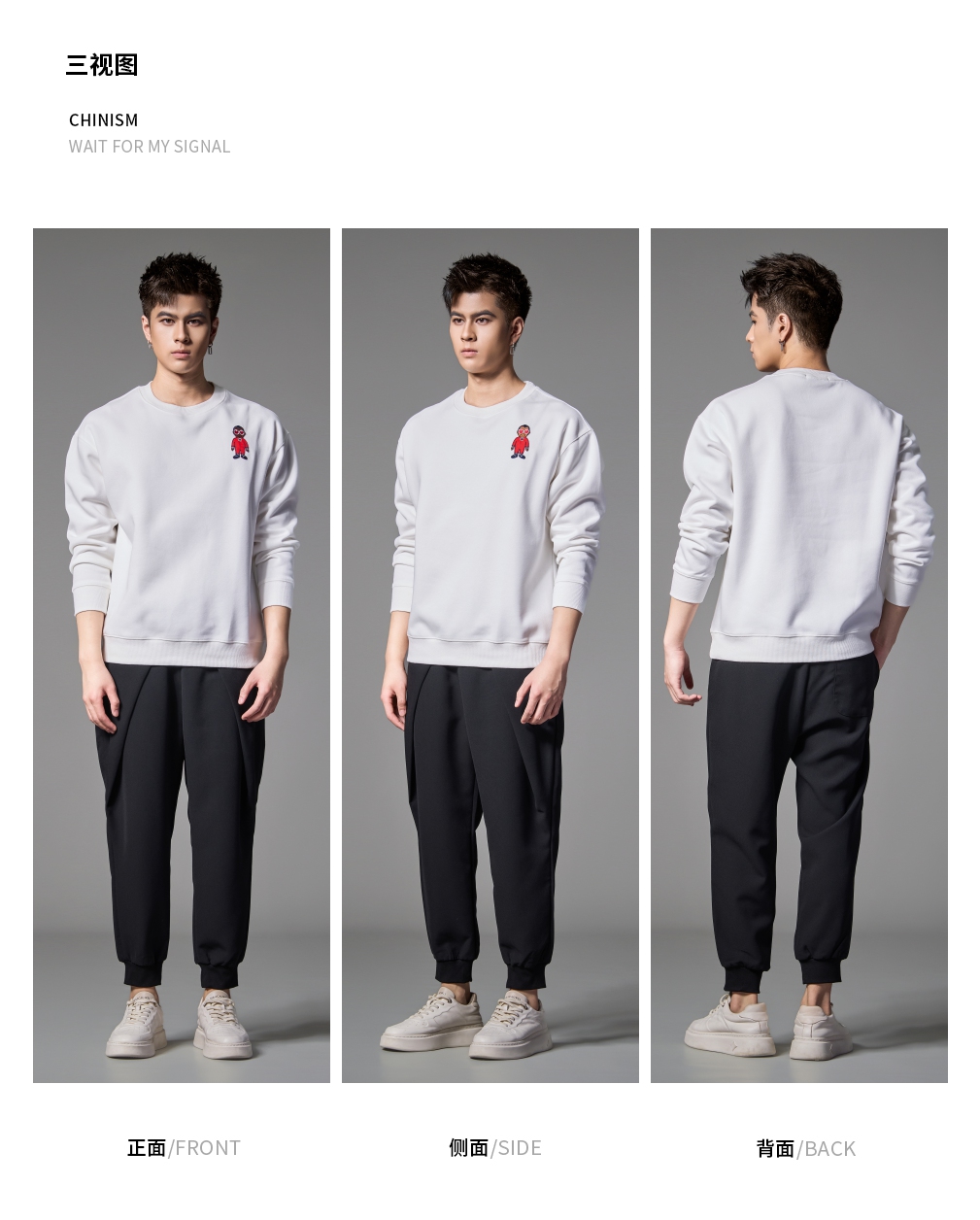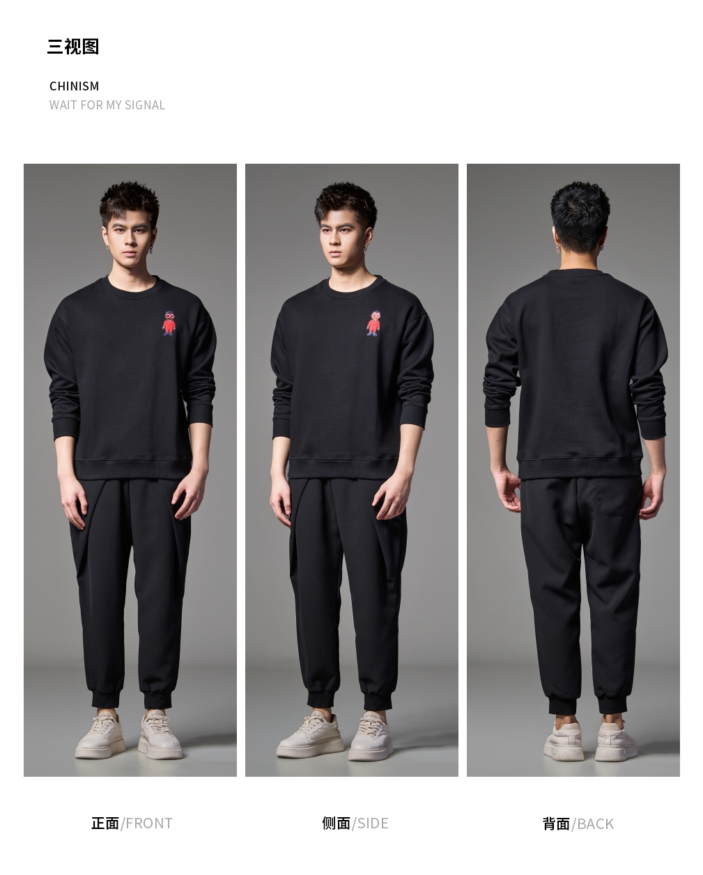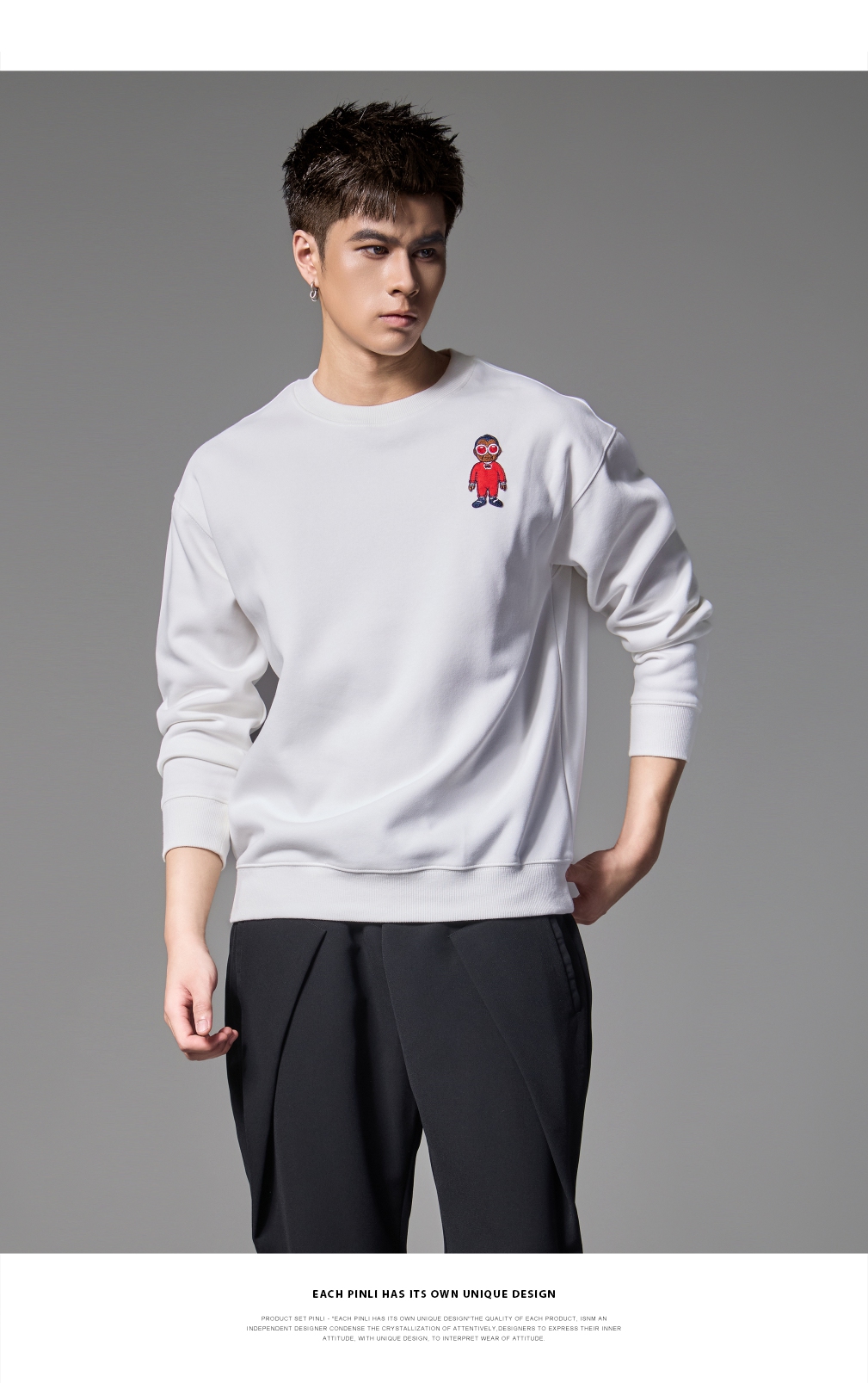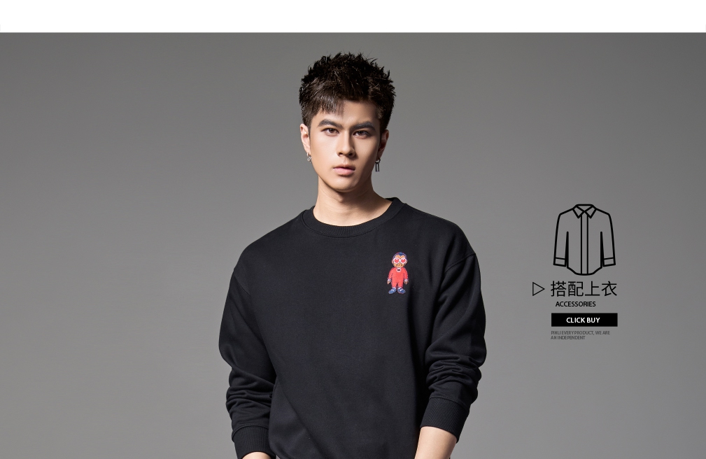 PINLI品立2024秋季新款宽松圆领卡通贴布绣套头卫衣男BG243109046
