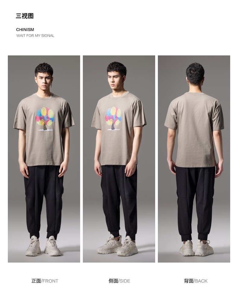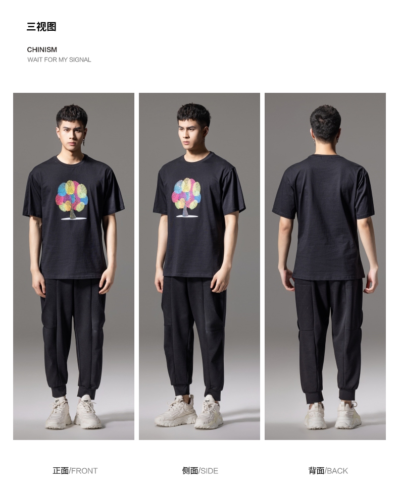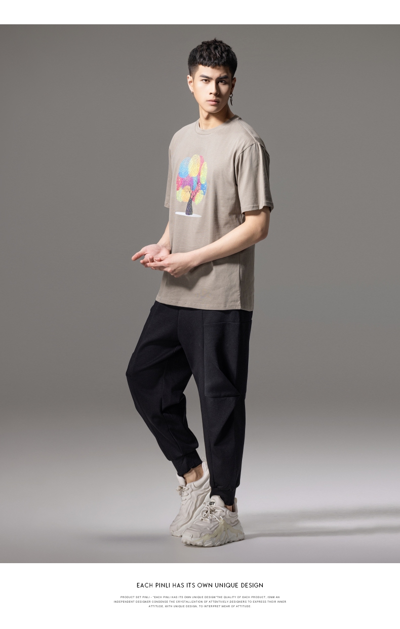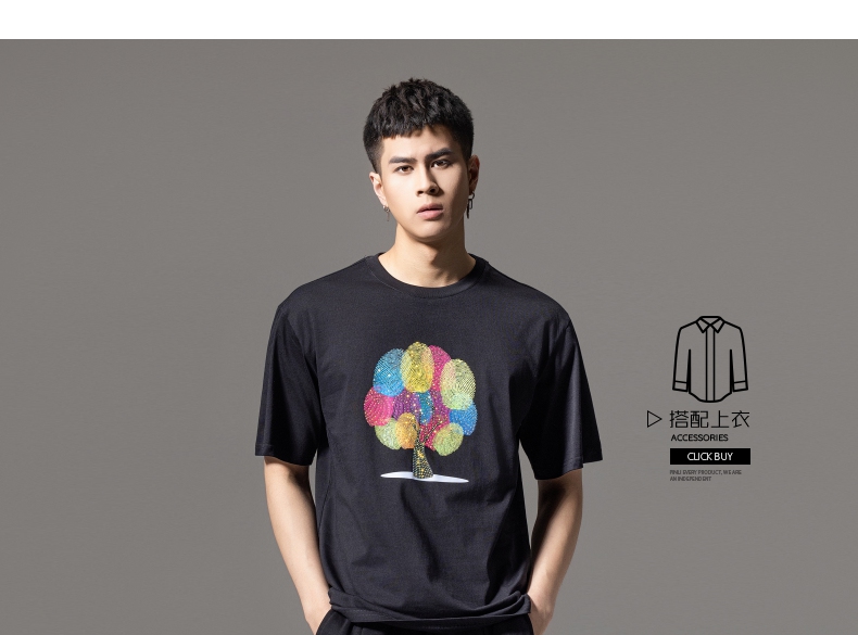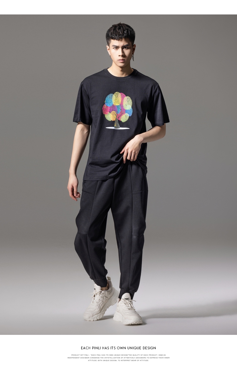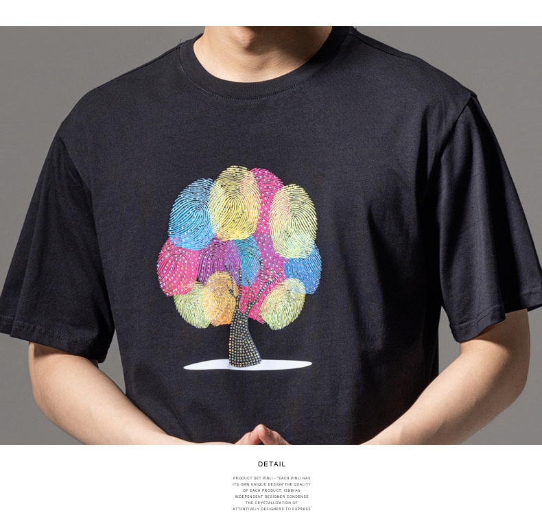 PINLI品立2024夏季新款印花烫钻短袖T恤男士休闲潮牌百搭体恤上衣BG242111017