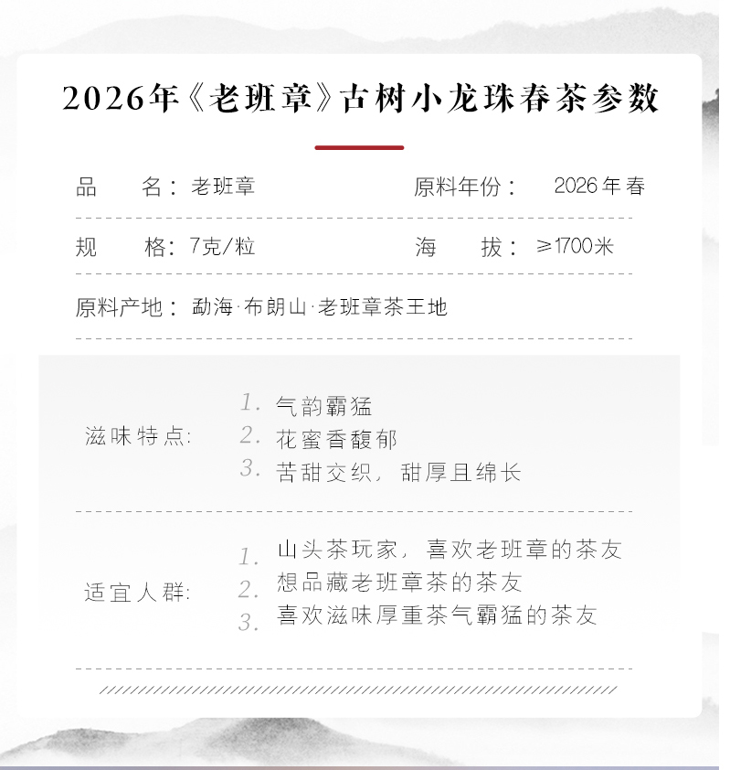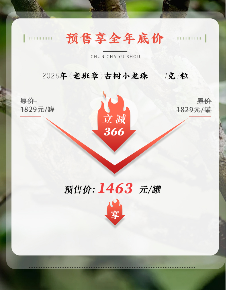 【预售8折】2026《老班章》古树春茶小龙珠 7克*15颗 生茶