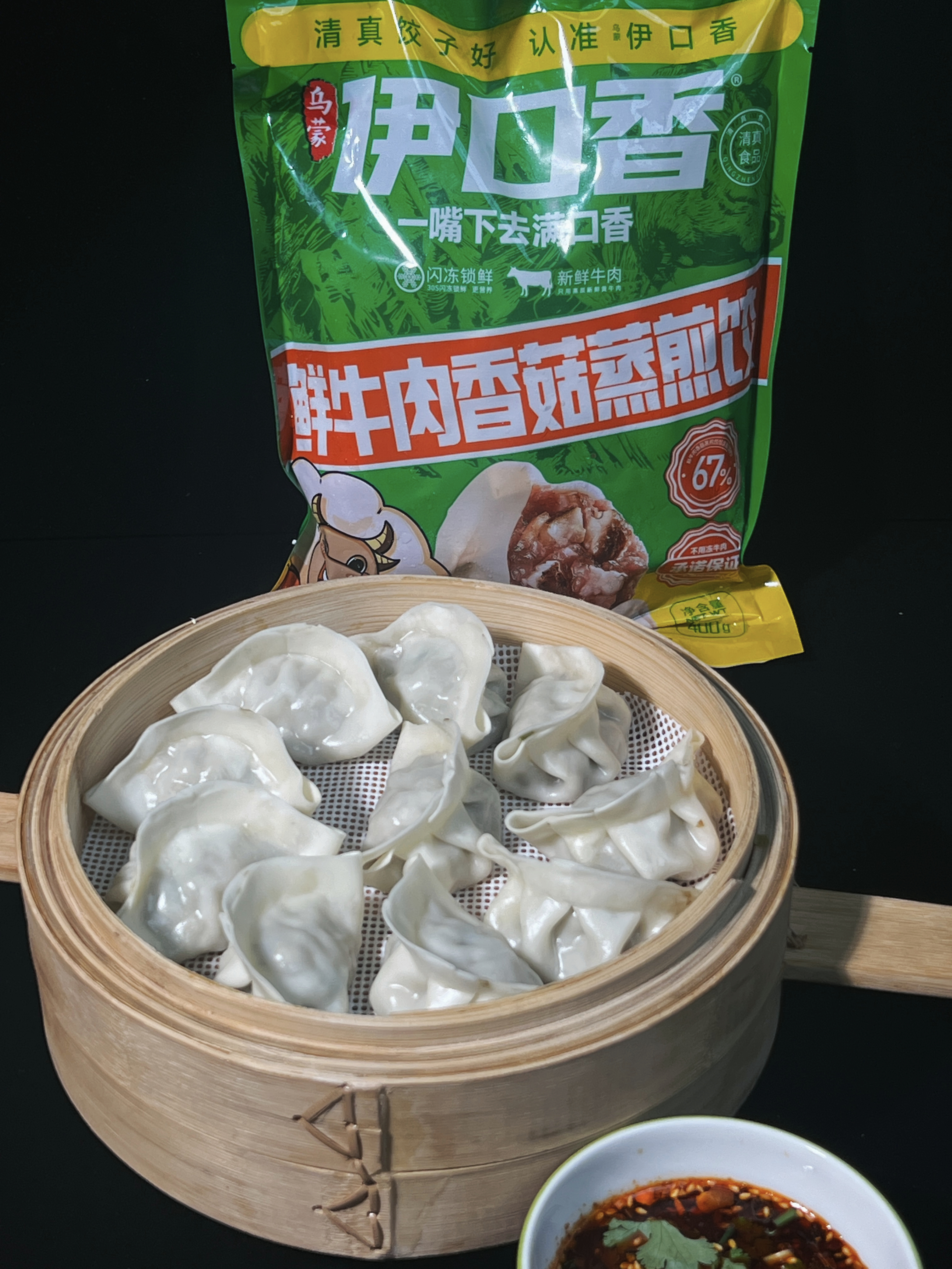 云南伊口香 鲜牛肉香菇蒸煎饺子 (400g一袋约22个) (冻品!发中通快递,请主动关注物流,及时取货!)