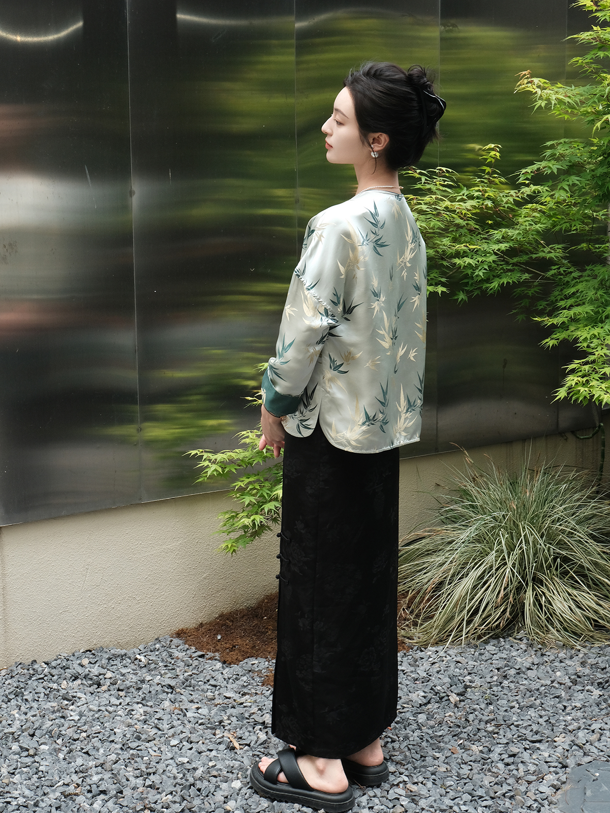 盛唐牡丹|真丝梅兰竹菊斜襟旗袍裙