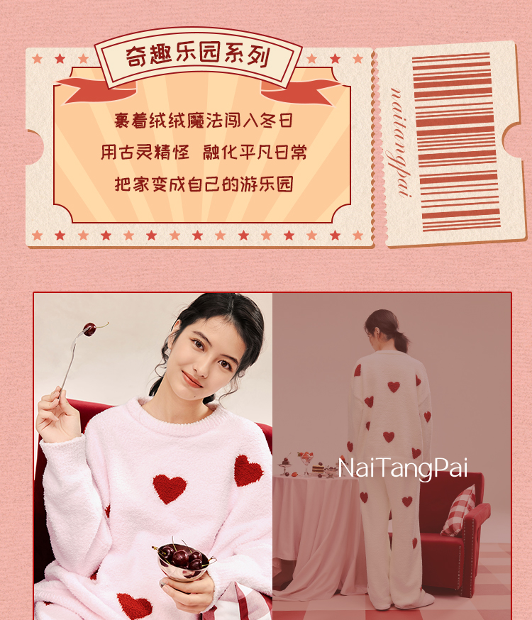 奶糖派奇趣乐园系列爱心泡泡睡衣梦幻甜心舒适亲肤保暖秋冬家居服