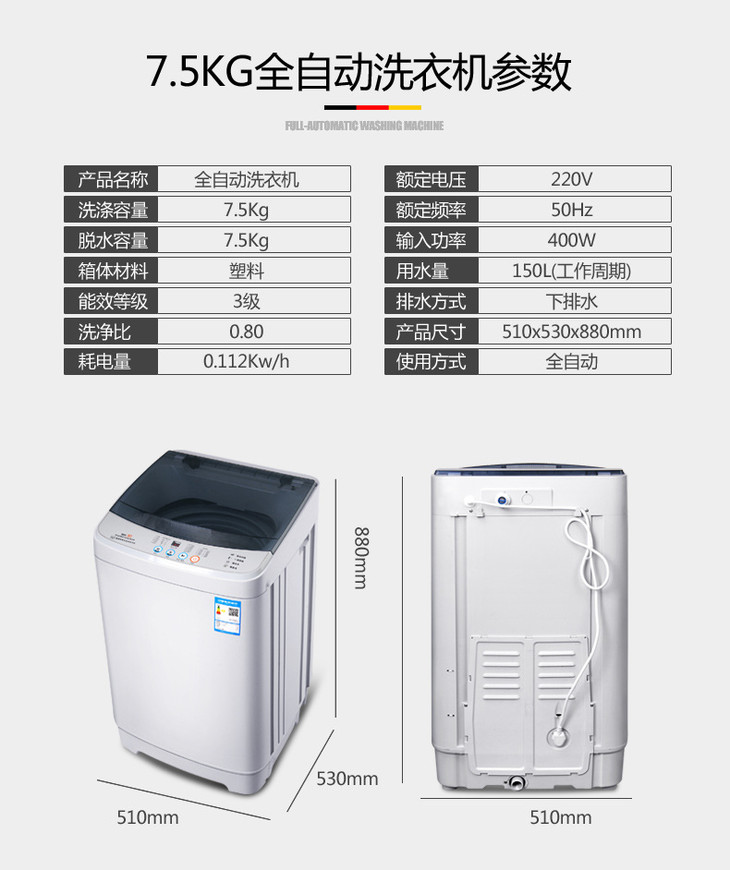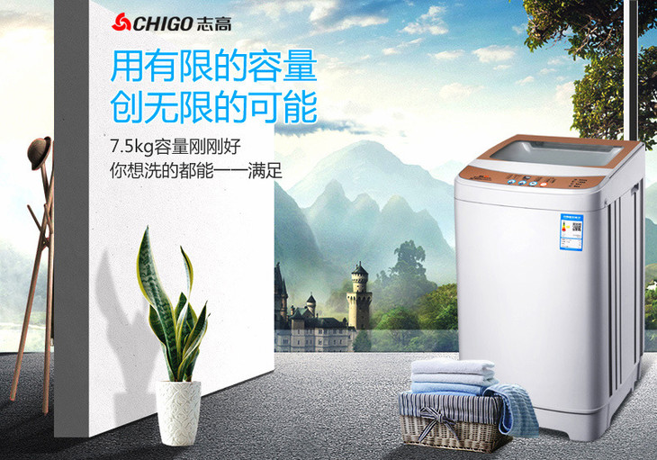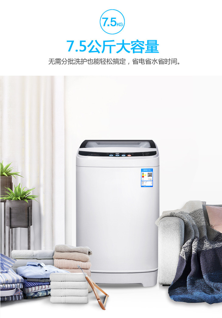 【家用电器】志高 洗衣机。志高7.5公斤家用波轮全自动洗衣机小型迷你4.8/8.5/9KG宿舍大容量