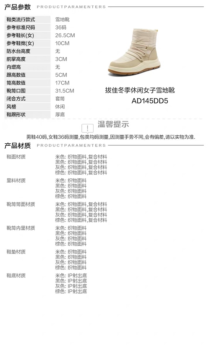 【云粉节】【拔佳】BF楼Bata雪地靴女2025冬款保暖厚底时尚百搭短靴AD145DD5 吊牌价1159 活动价799