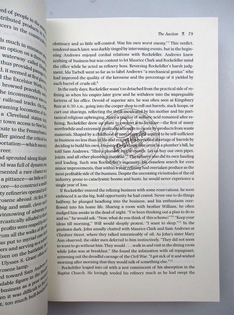本书作者发掘了大量的洛克菲勒的公开和私密的生活档案,透露了很多洛克菲勒的竞争手段、创富秘诀及许多鲜为人知的家族丑闻、悲剧和不幸,细致入微地刻画出了一个性格复杂、引人入胜的人物。Titan: The Life of John D. Rockefeller, Sr是权威的洛克菲勒传记,展示了洛克菲勒的创富过程,也是一本揭示19至20世纪美国财富积累及社会生活的百科全书,很值得一读。