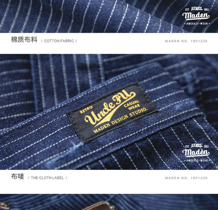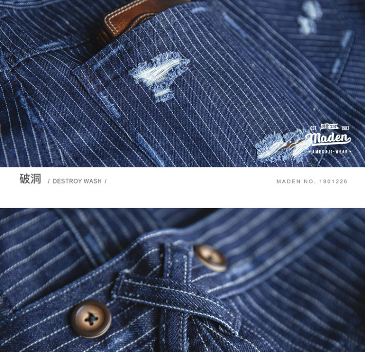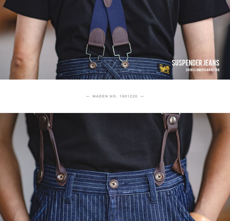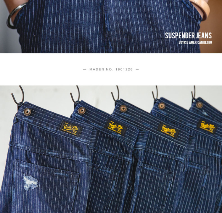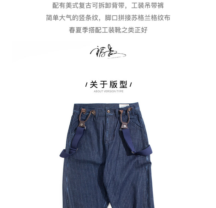 工装精选日系复古着感条纹吊带裤阿美咔叽宽松阔腿背带连体裤男潮