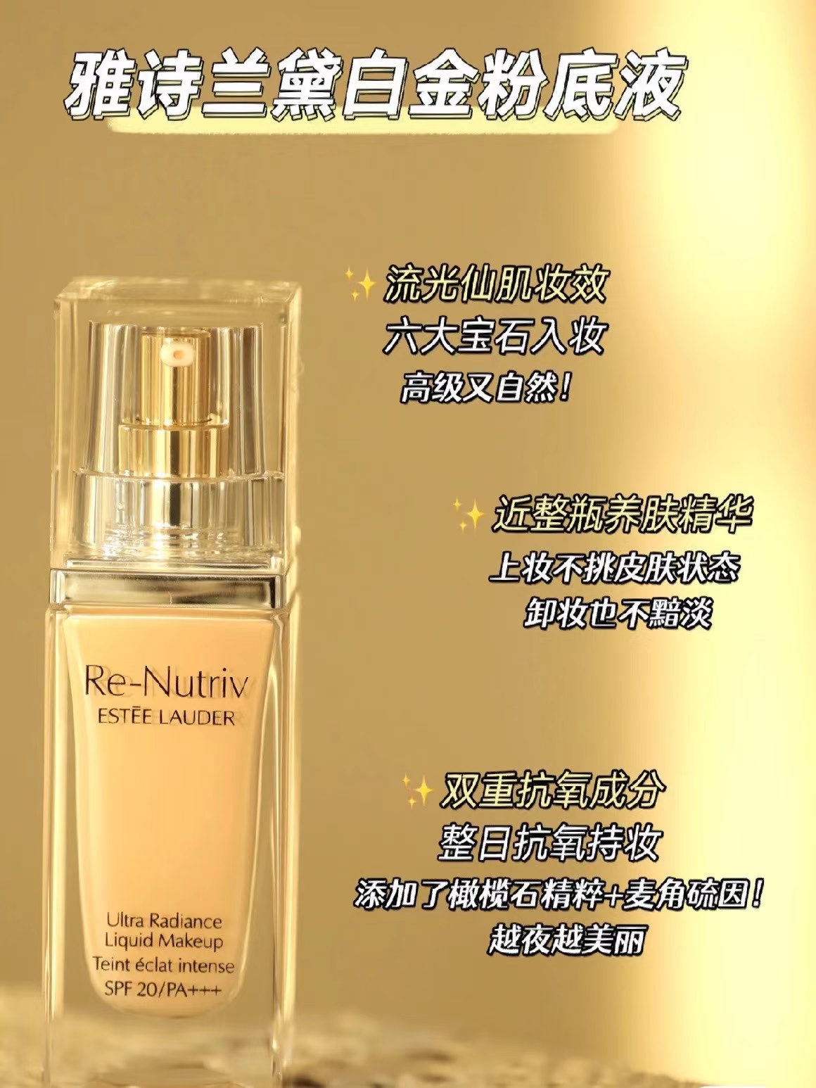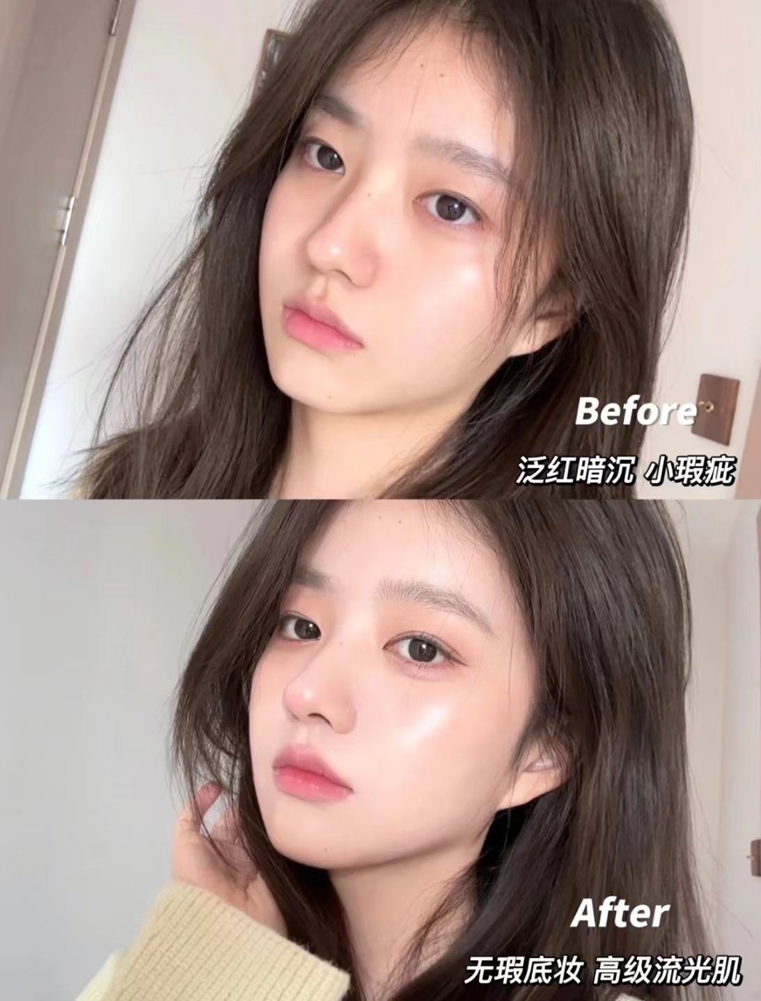 清淡的裸妆感,保湿的妆效太jue了‼自带光泽感省去了高光和修容,整个人都散发着高级的光芒。也不会说卡粉起皮自然服贴绝绝子,里面有 90%的养肤精华,还有白金系列同款成分。带妆不光不伤肤还会滋养呵护肌肤。皮肤状态不好的时候用简直救大命!