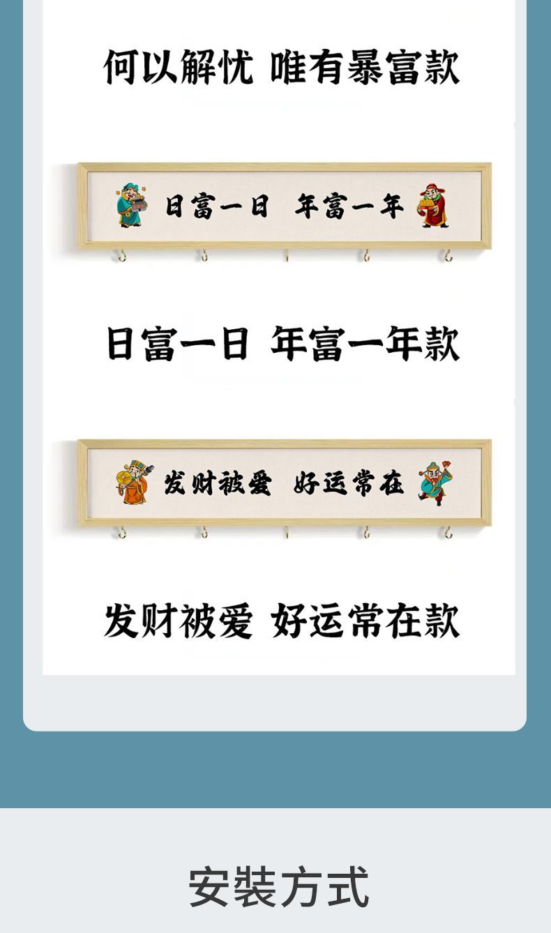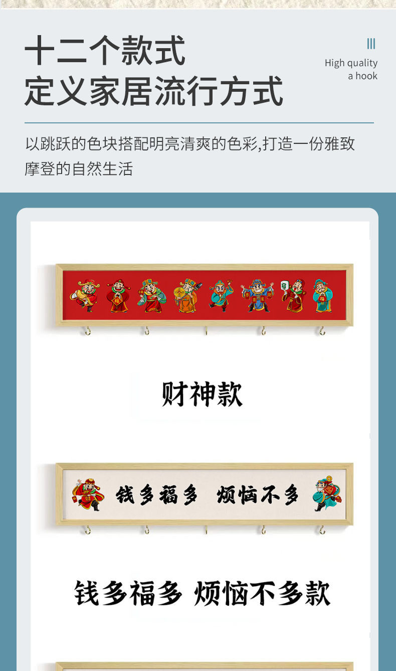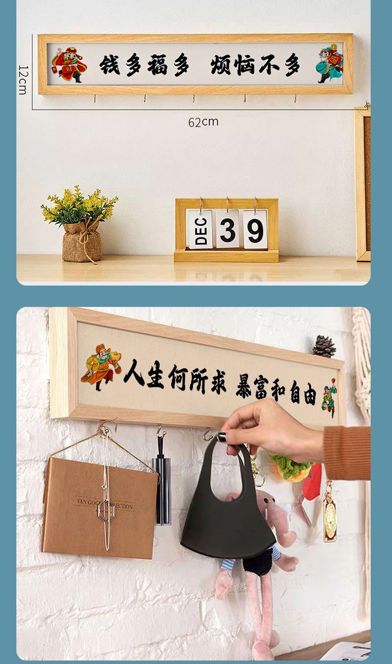 发财被爱财神招财钥匙罩收纳挂钩多功能装饰画挂画实木玄关