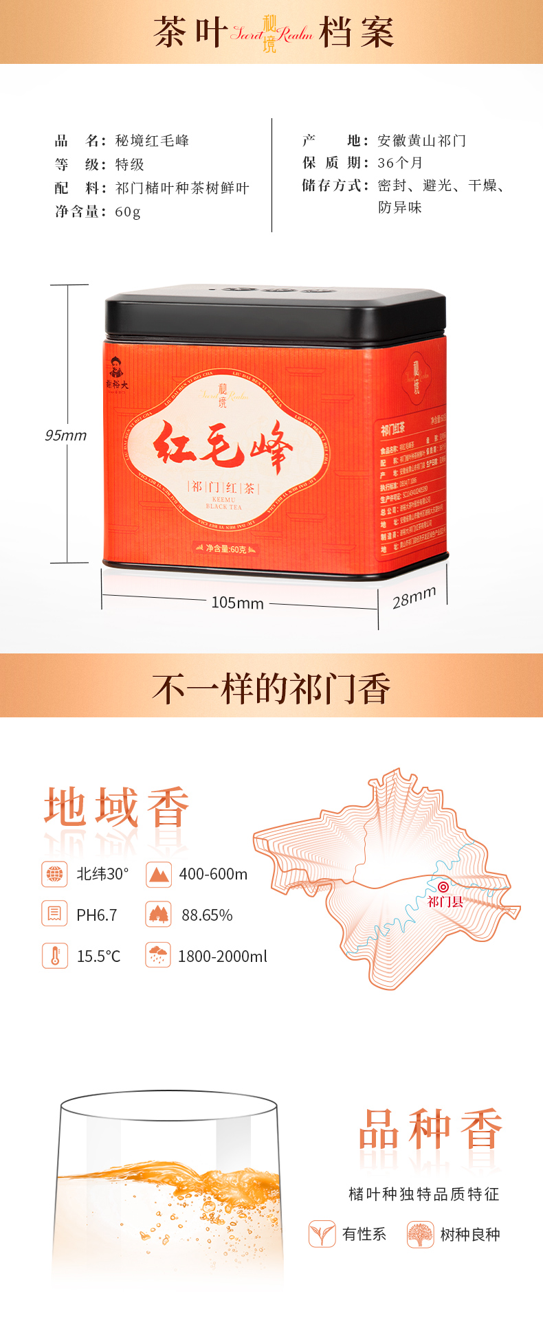 谢裕大茶叶秘境系列祁门红茶特级祁红毛峰安徽红茶60g自饮听装