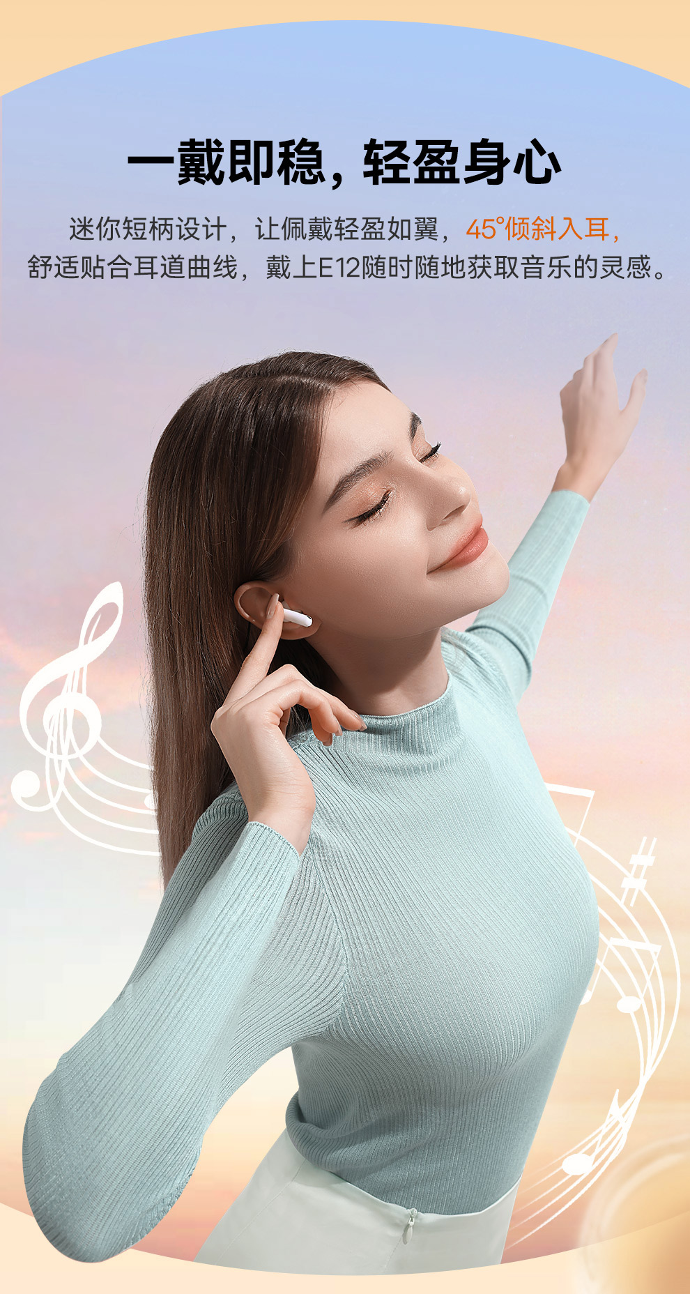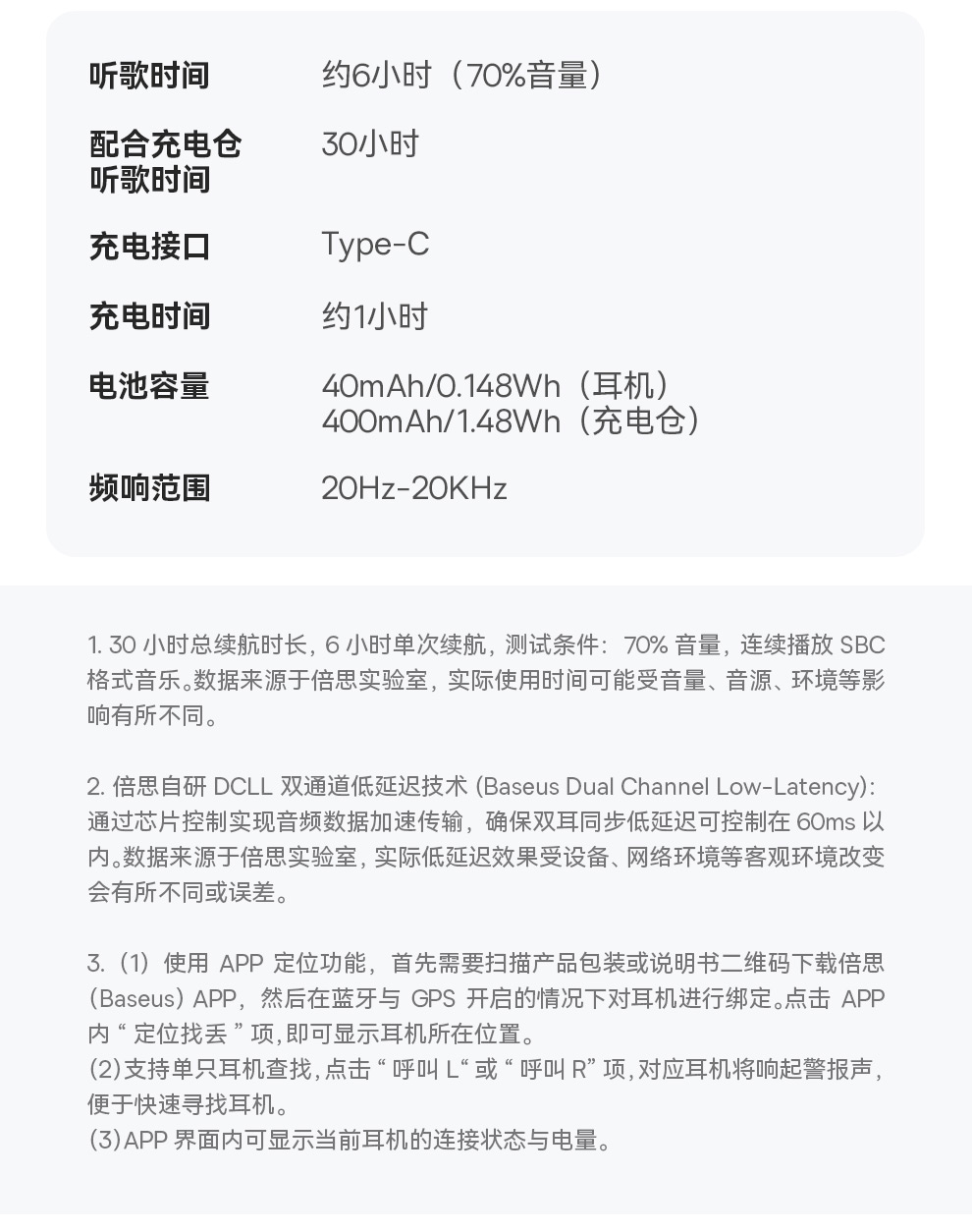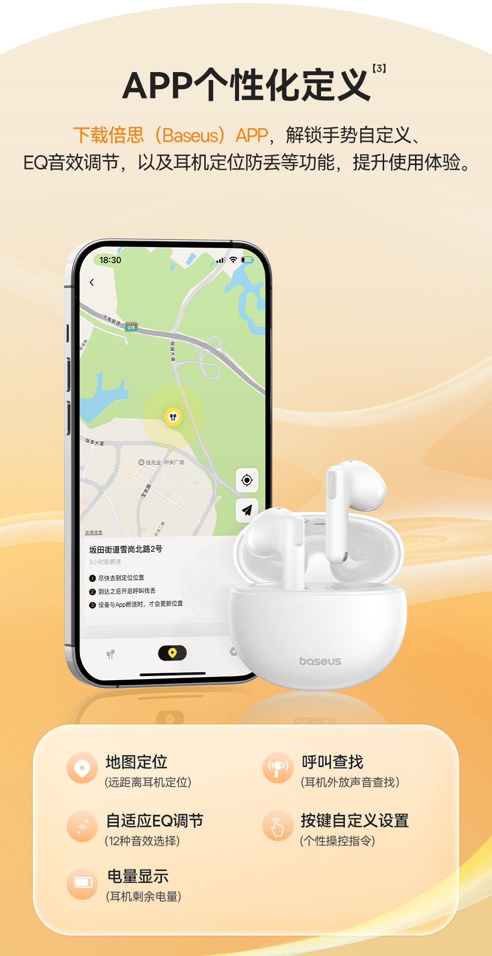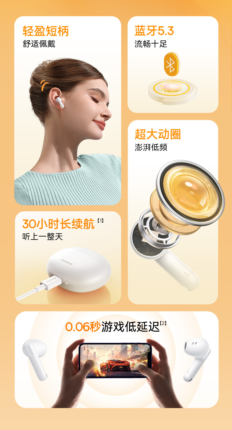 倍思 Bowie系列 E12 TWS真无线蓝牙耳机(含:简易通用数据线 Type-c 3A 0.3M 黑色)