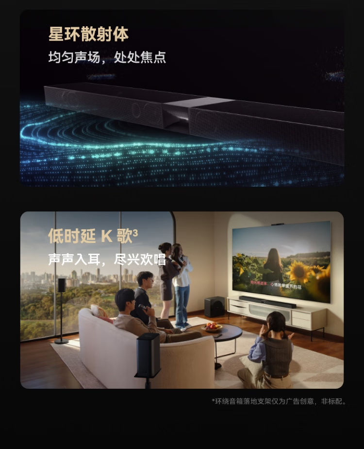华为悦彰家庭影院 7.1.4 星穹声场 鲸鳍超重低音 回音壁家庭影院 投影仪电视游戏音箱