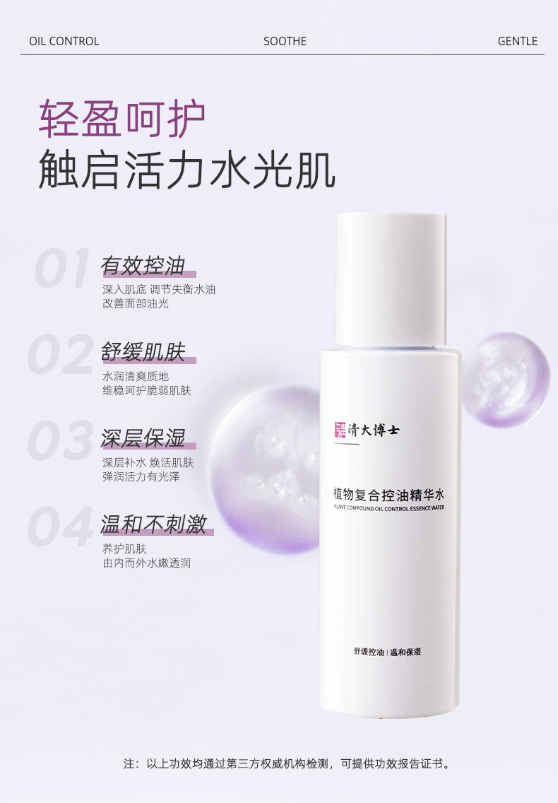 「下单2瓶赠吸油纸1盒」清大博士 植物复合控油精华水 温和安全 控油保湿 80ml/瓶