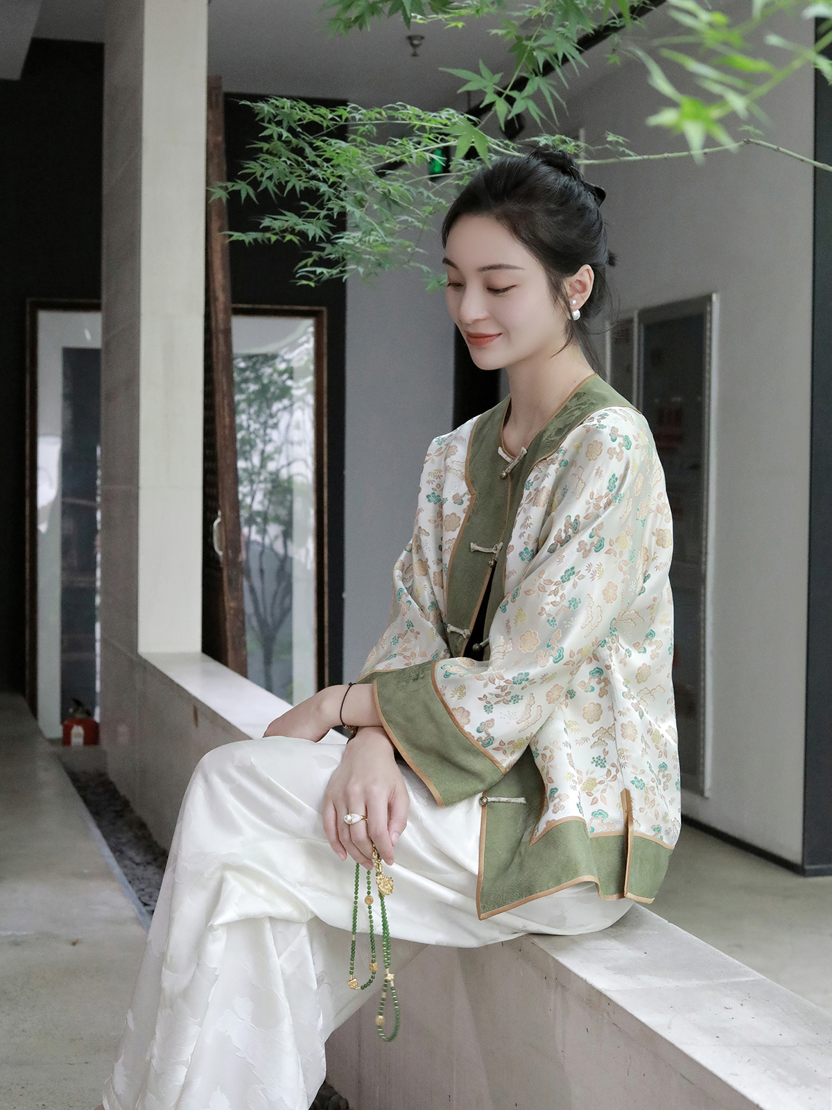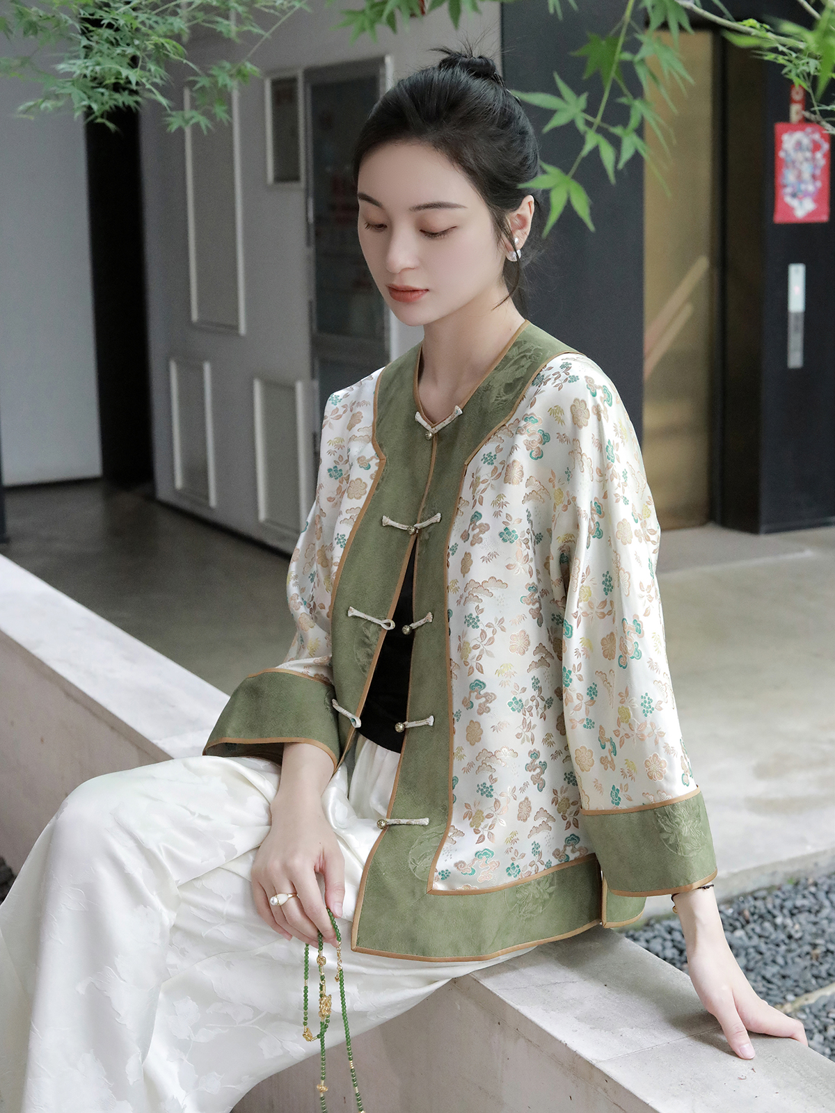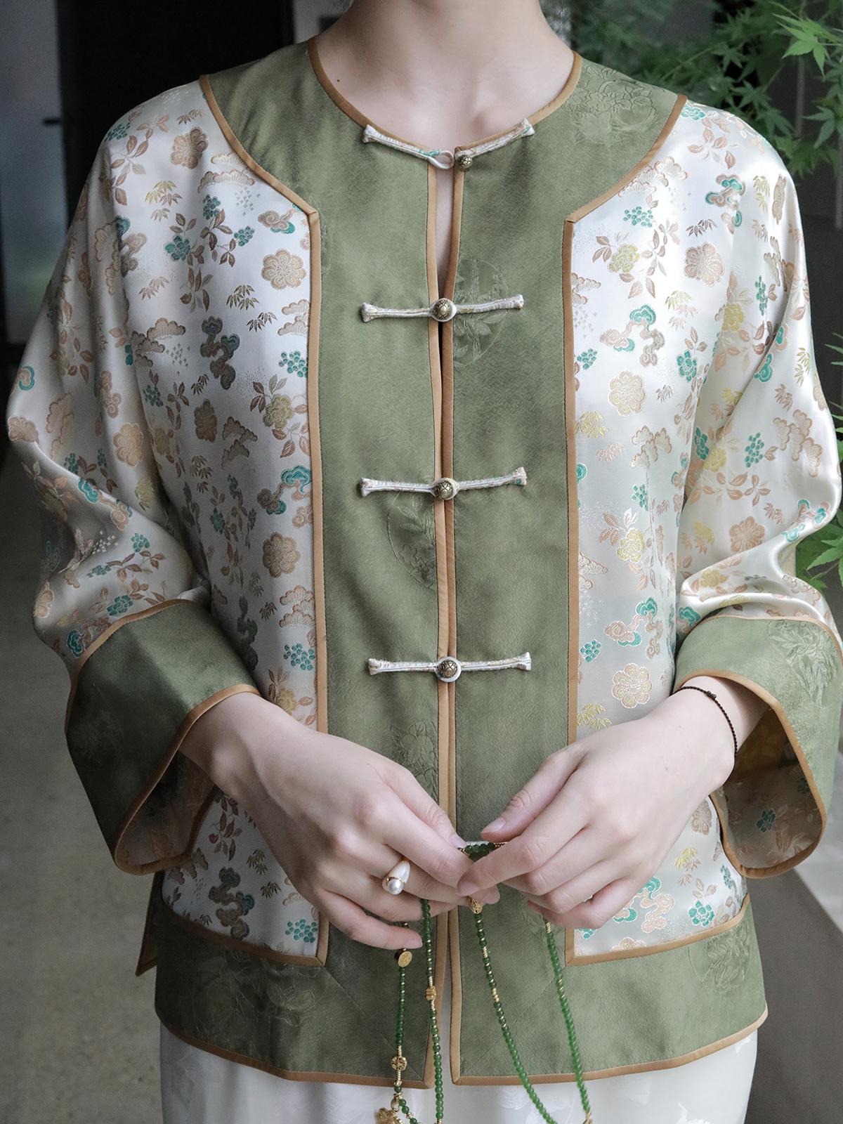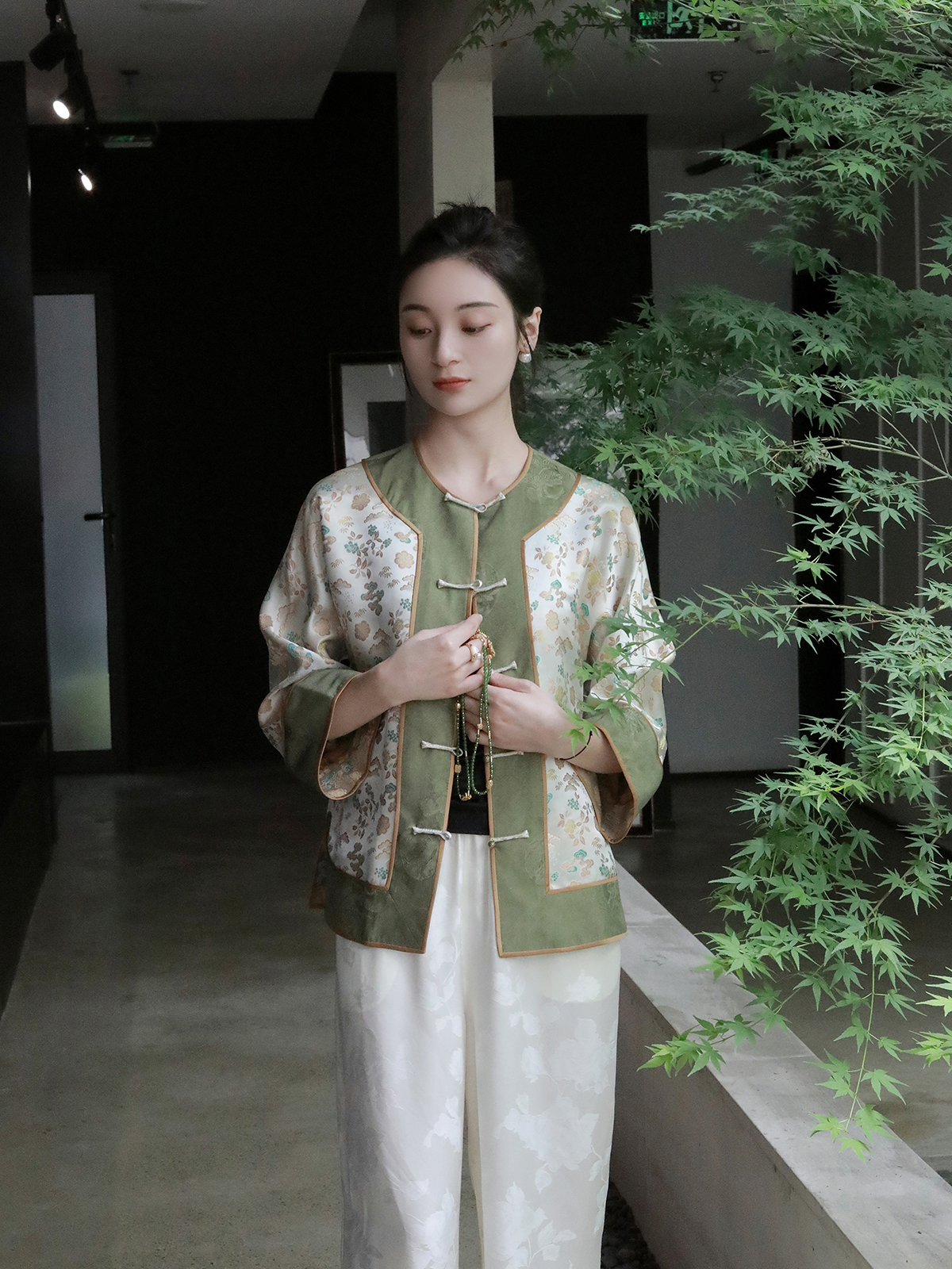 盛唐婧 |重缎真丝宋锦云松纹对襟外套