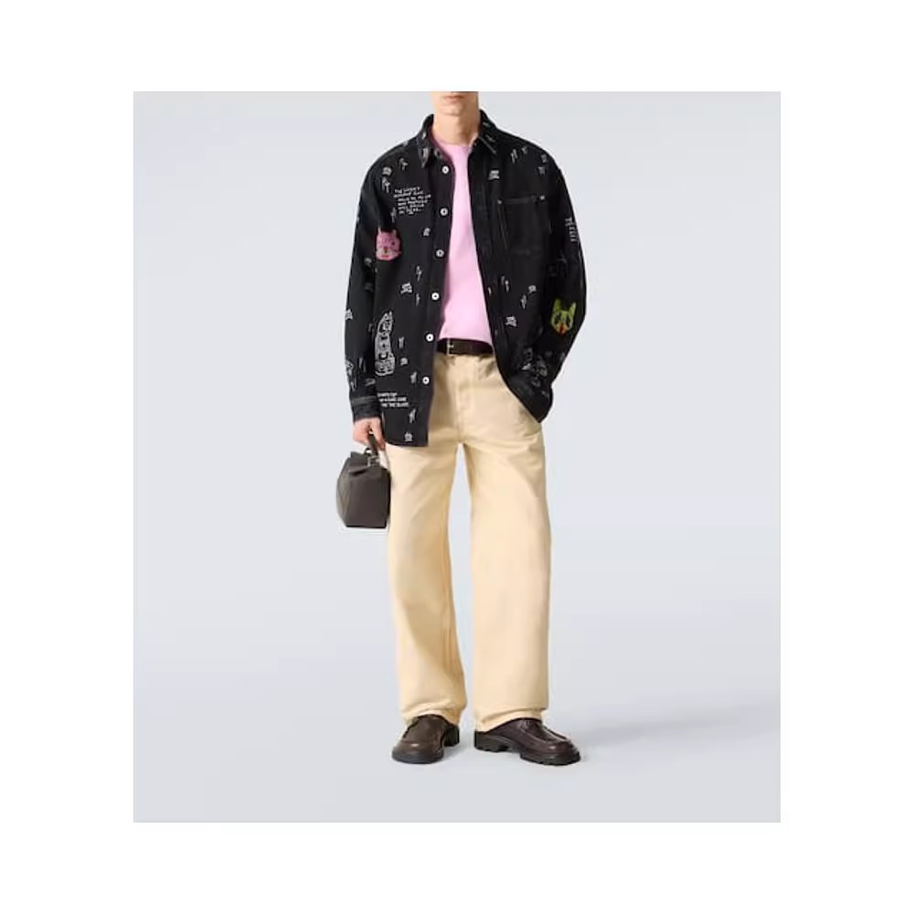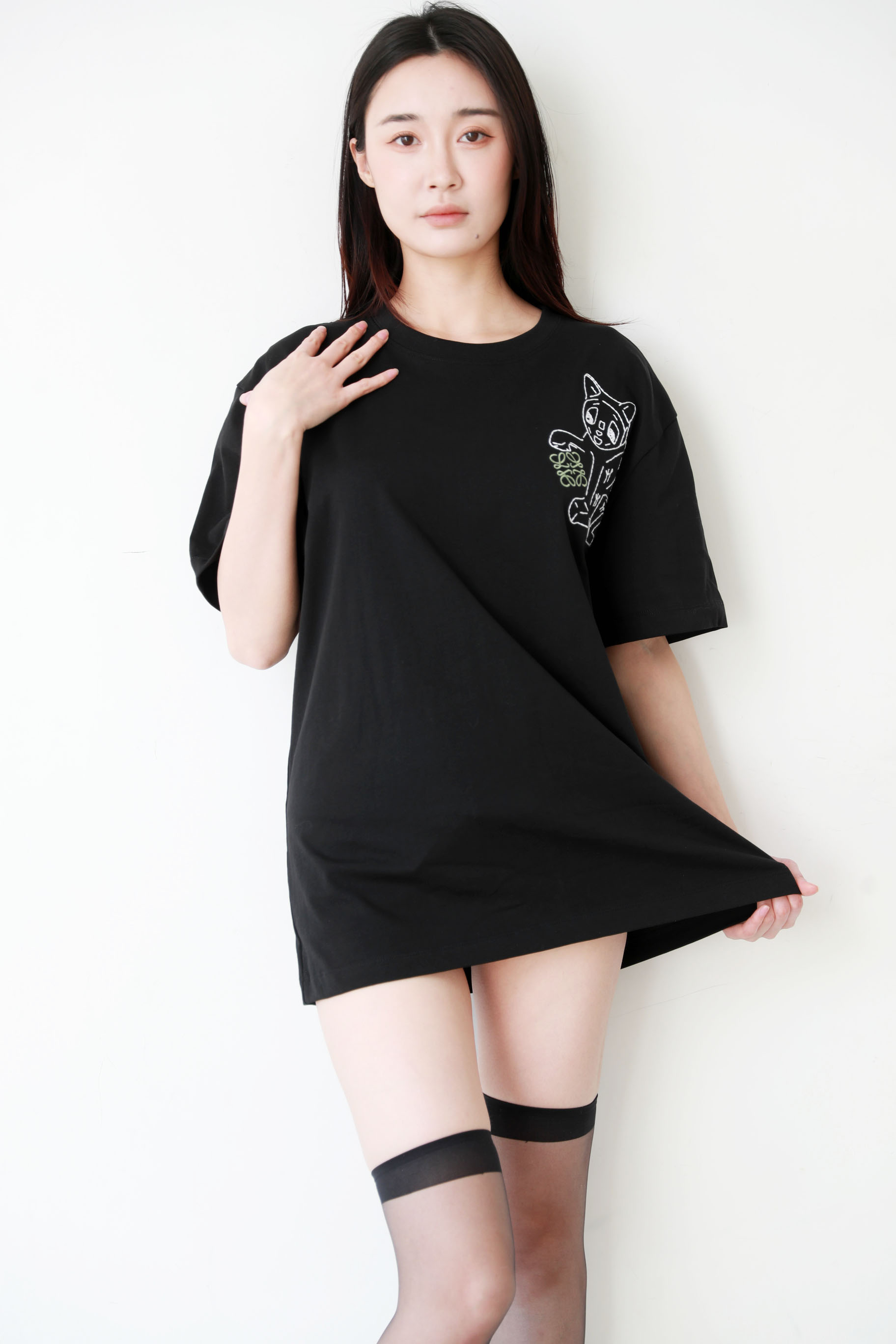 卡通刺绣tee,慵懒的氛围感。基础设计圆领宽松纯棉半袖儿E011558