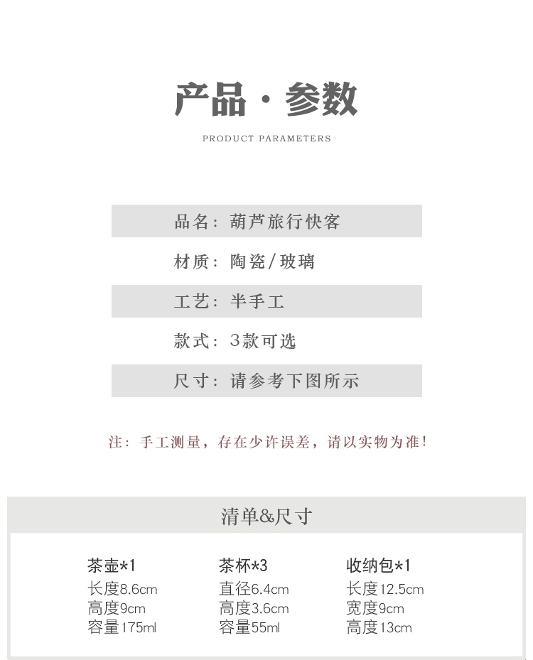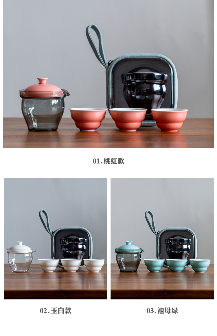 永利汇陶瓷快客杯一壶三杯旅行茶具户外收纳包便携式车载酒店