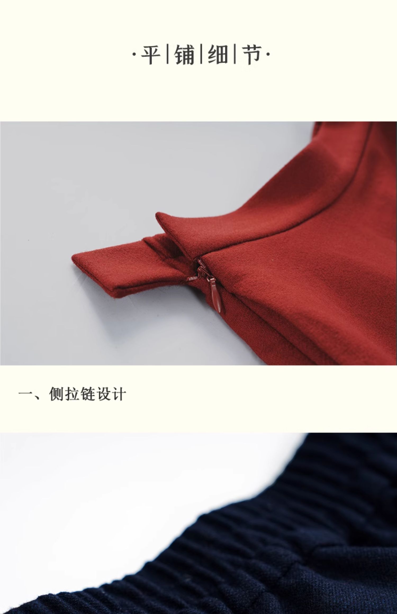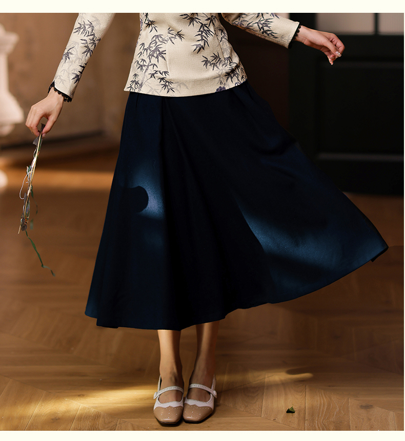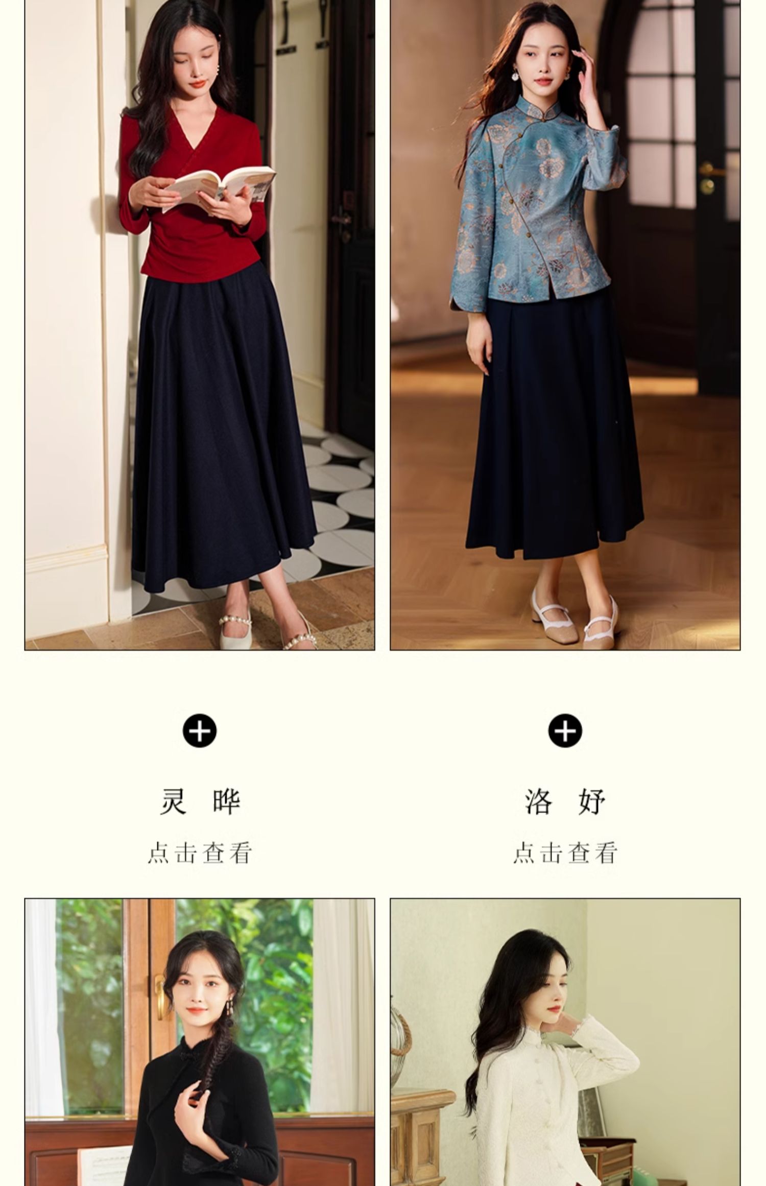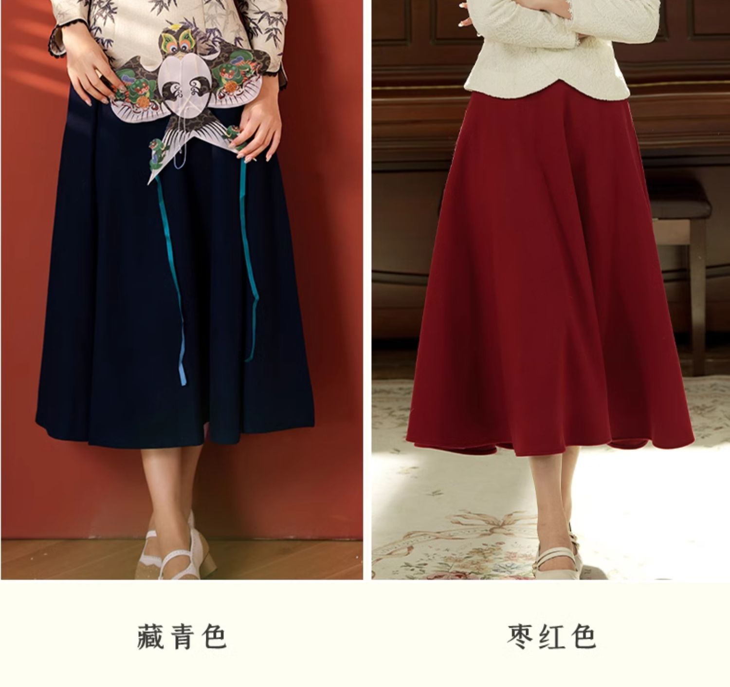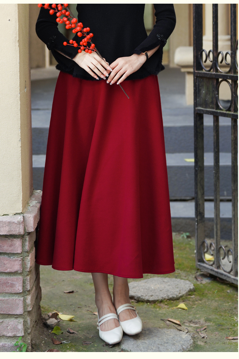 上海逸红颜芸婳2025秋冬新款毛呢新中式A摆后腰松紧百搭半身裙女