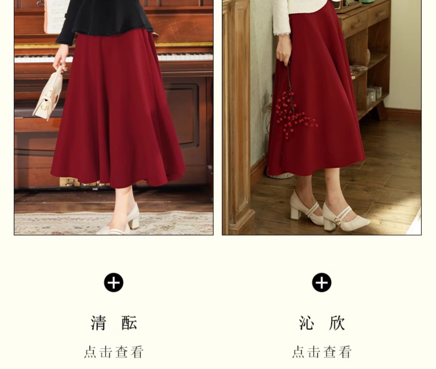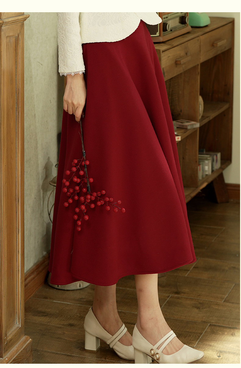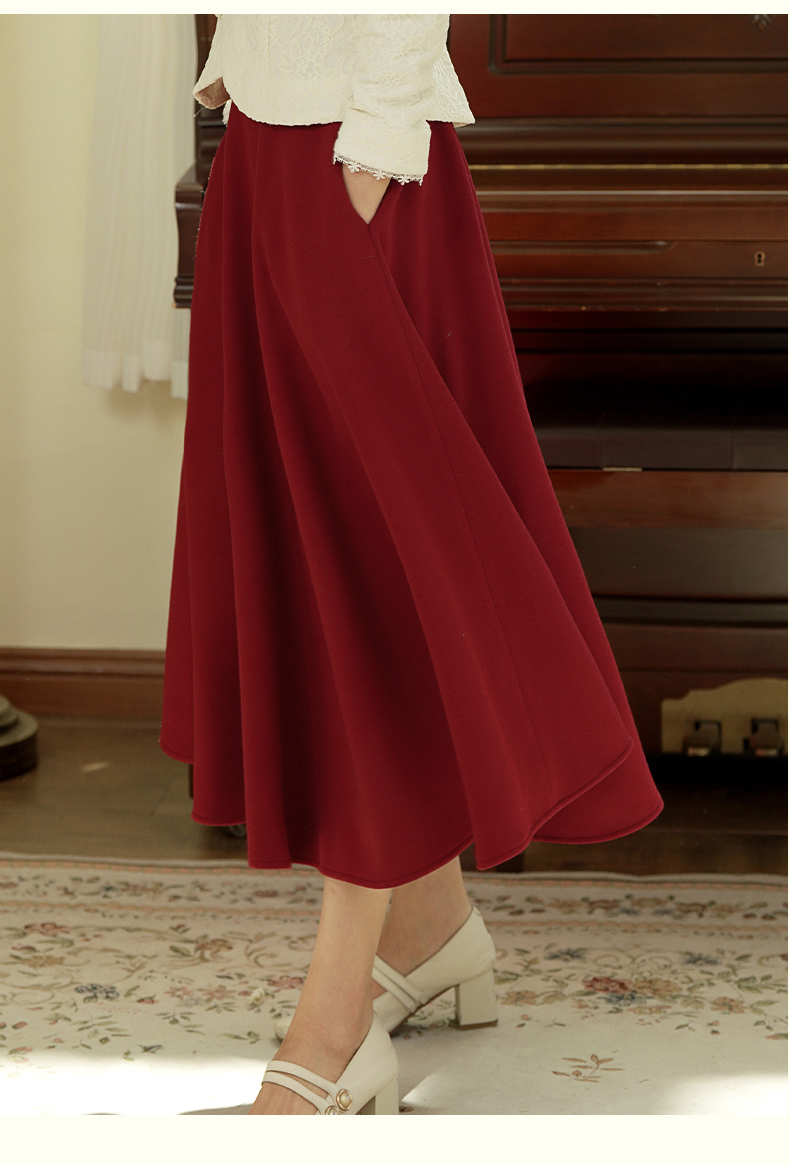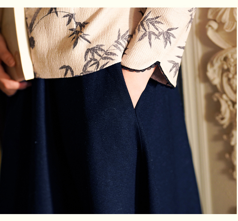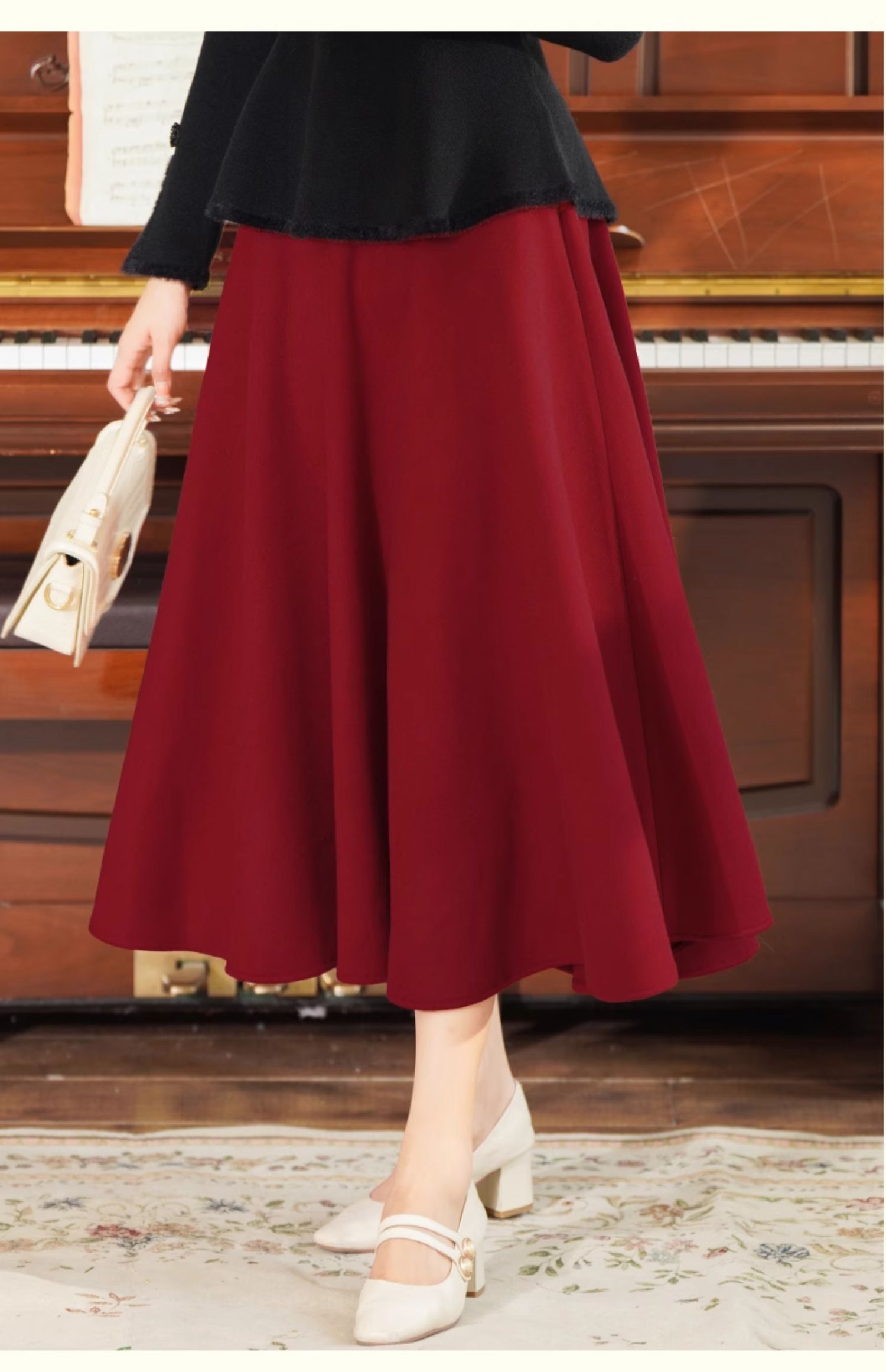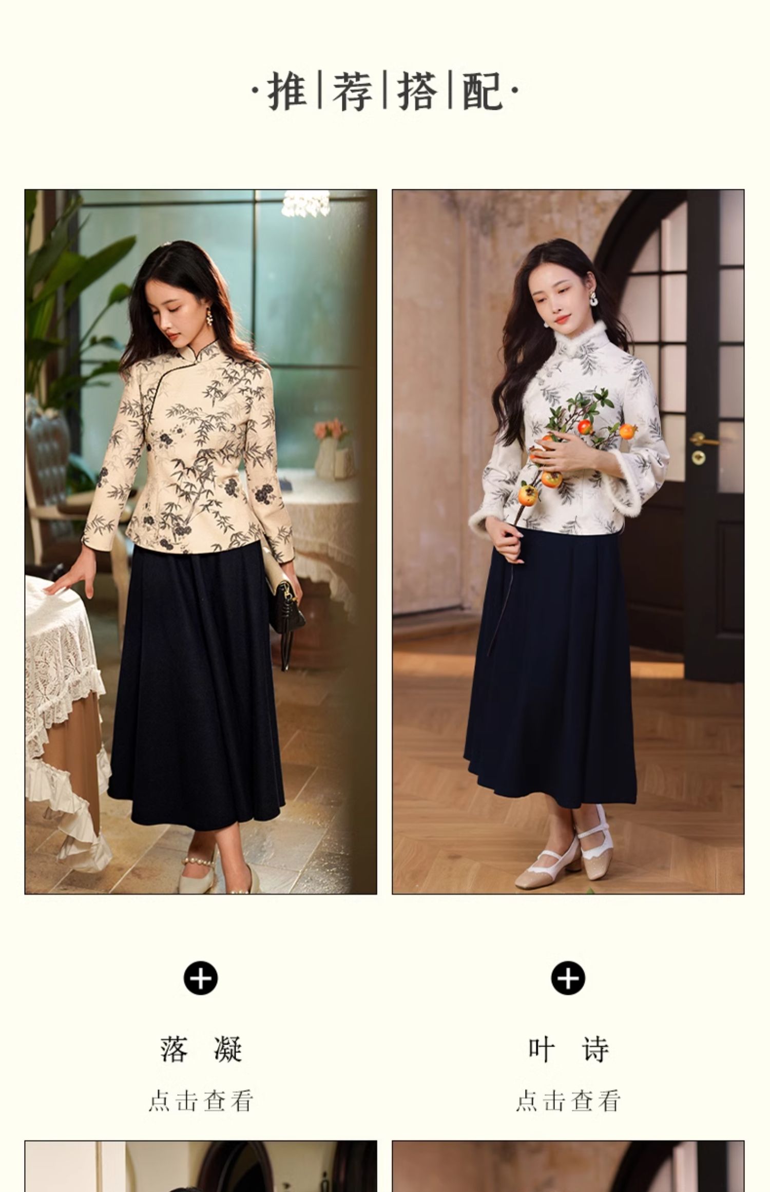 上海逸红颜芸婳2025秋冬新款毛呢新中式A摆后腰松紧百搭半身裙女