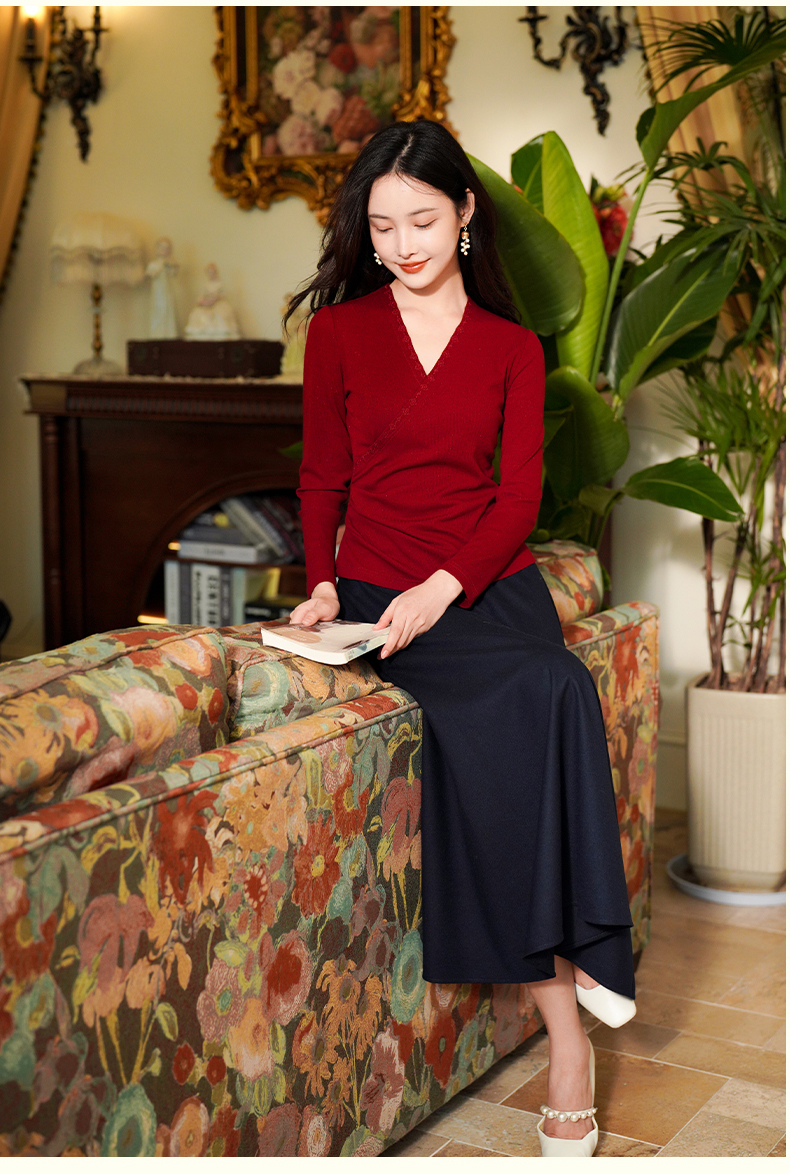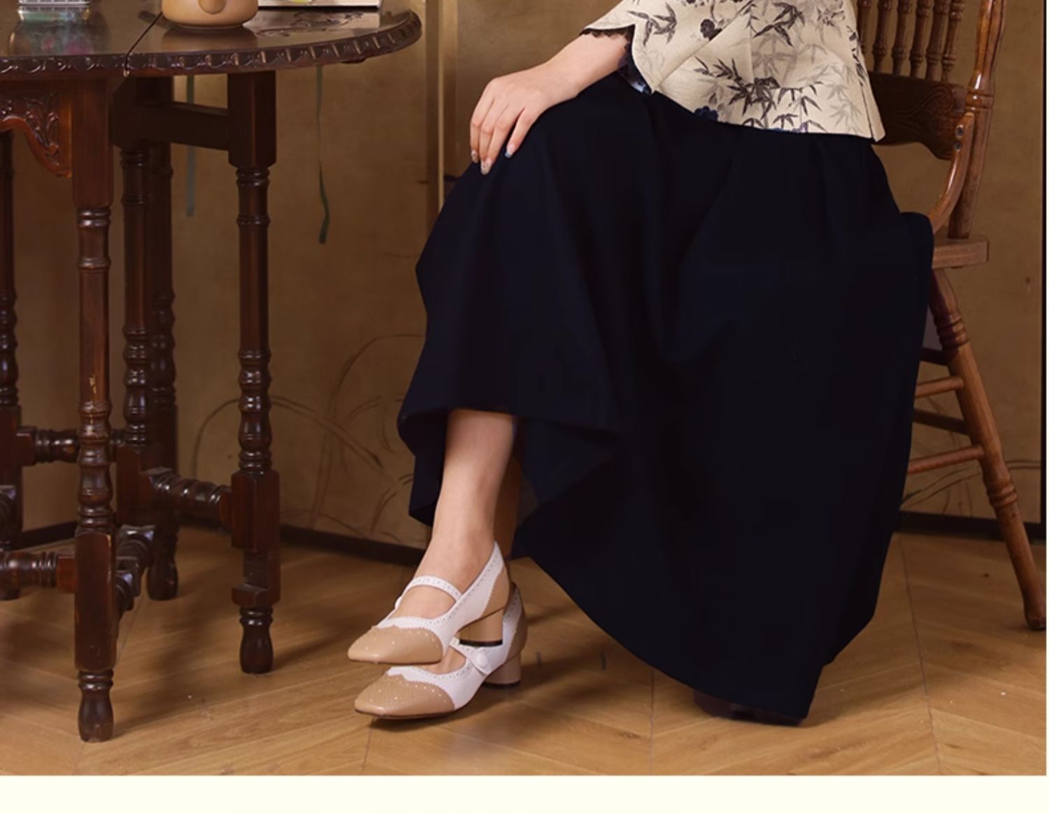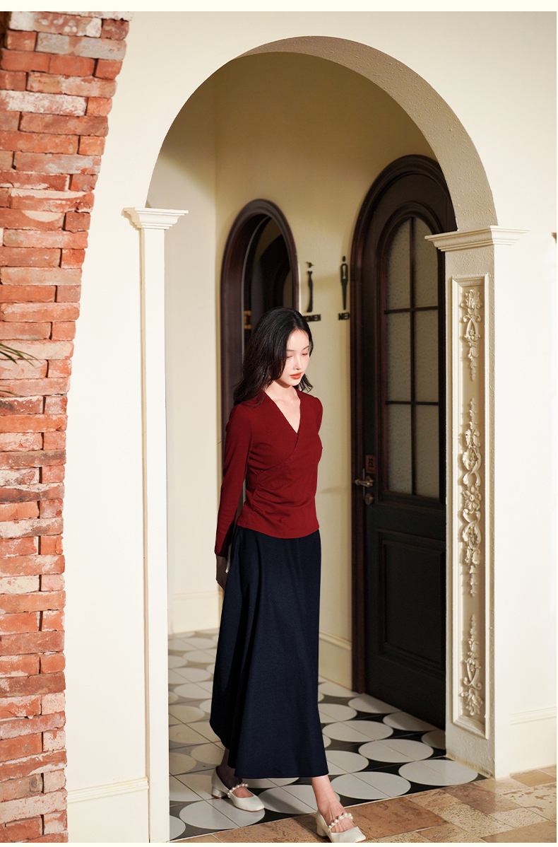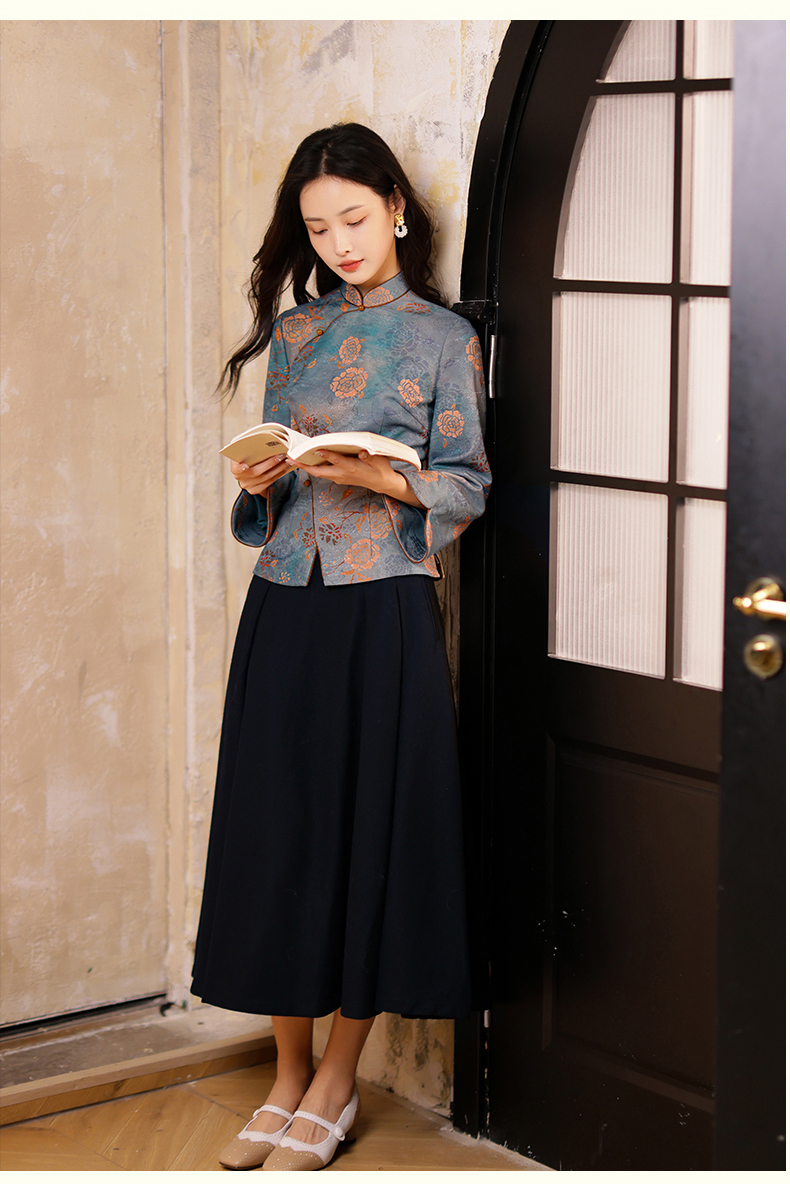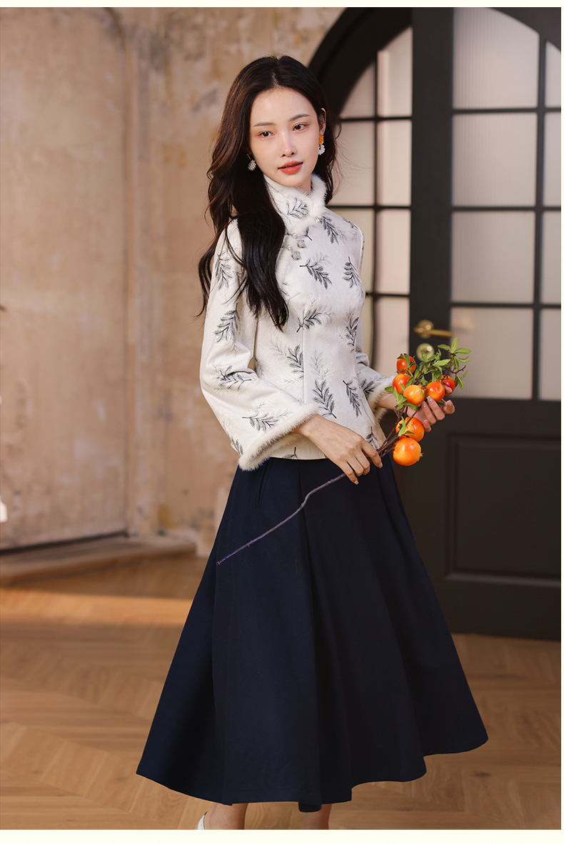 上海逸红颜芸婳2025秋冬新款毛呢新中式A摆后腰松紧百搭半身裙女