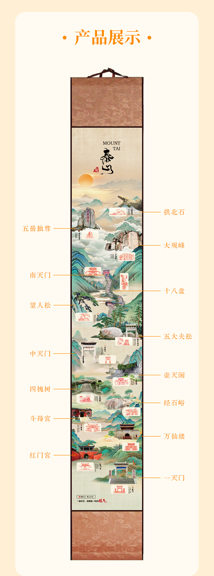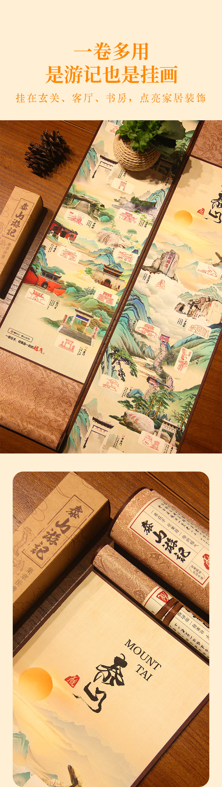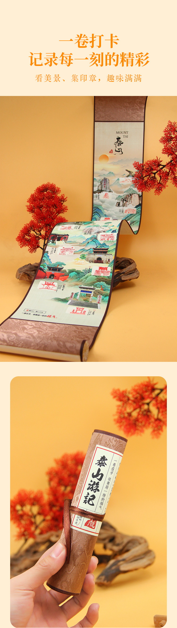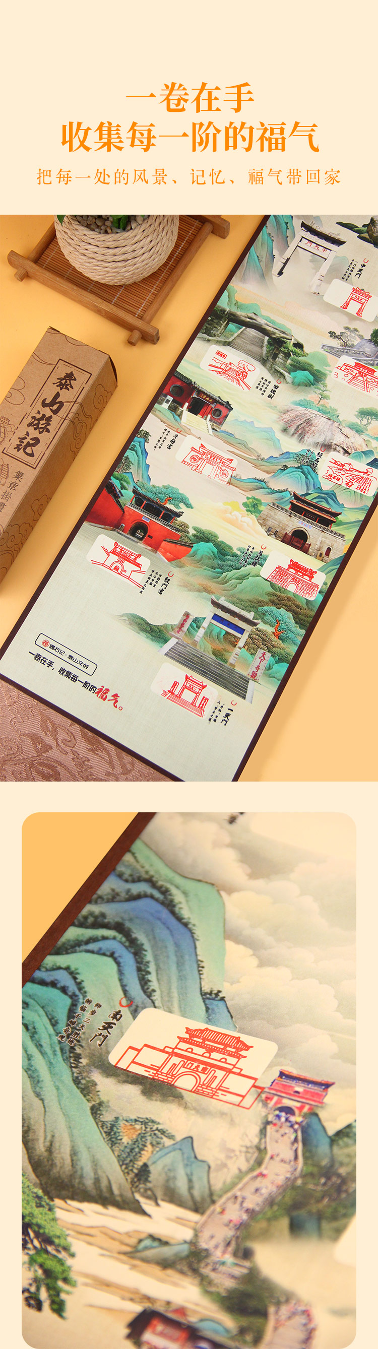 泰山游记泰山景点手工盖章卷轴系列