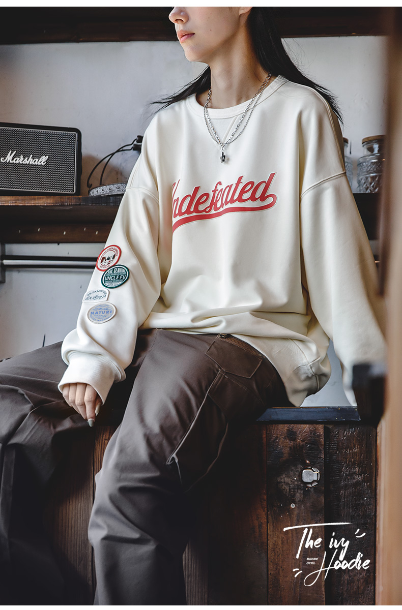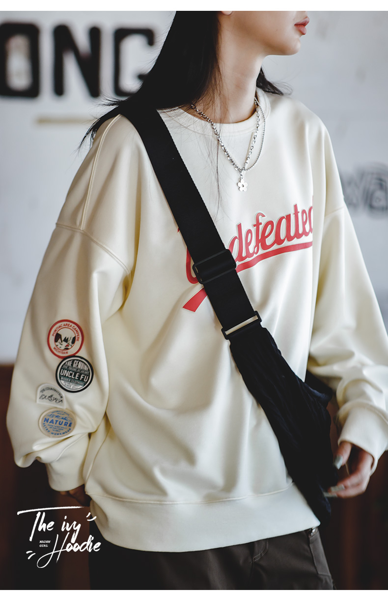 工装优选美式复古字母贴布卫衣渐变色水洗做旧宽松圆领T恤男春季
