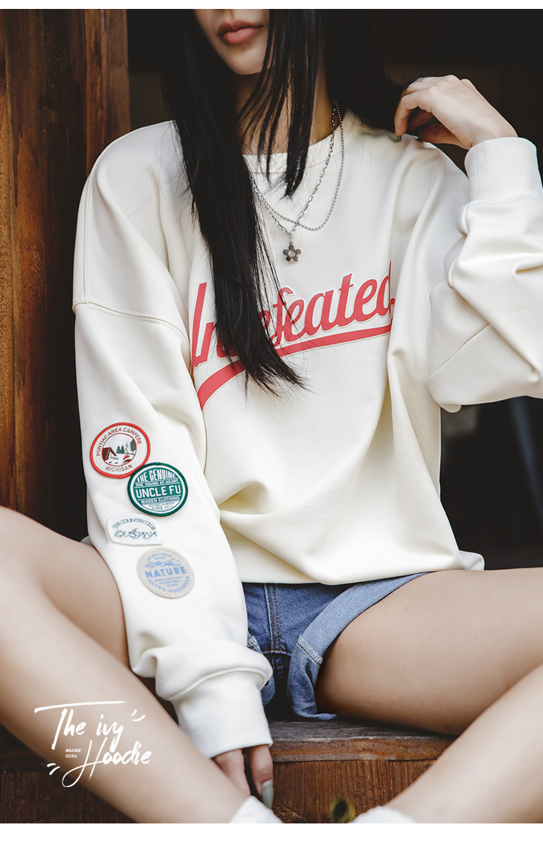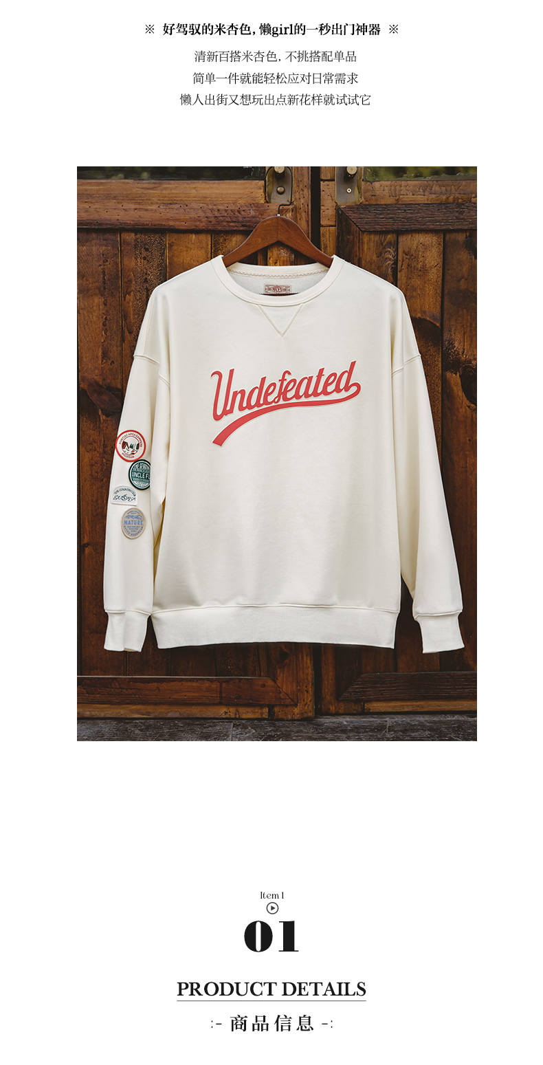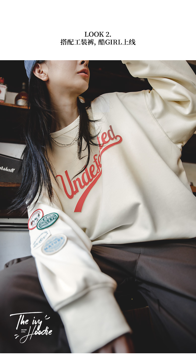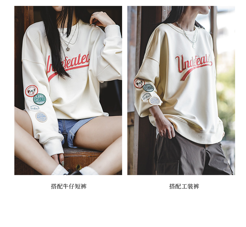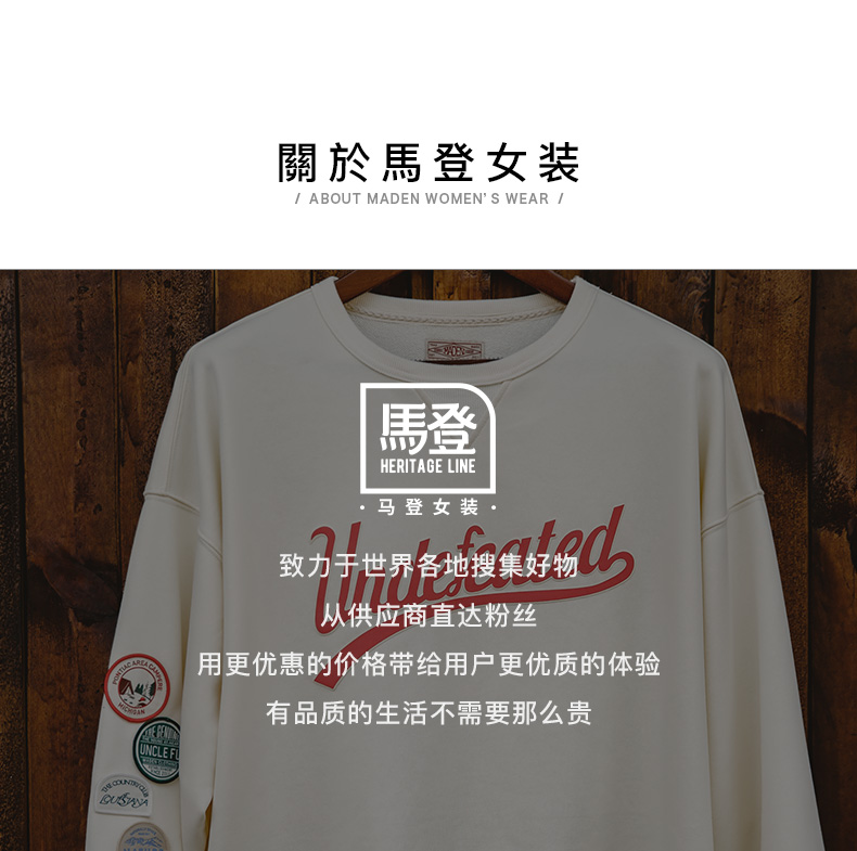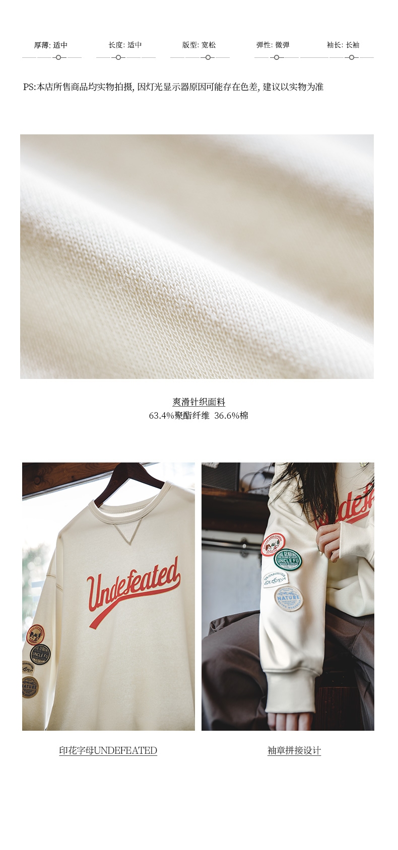马登女装美式休闲插肩袖套头卫衣女撞色拼接学院风长袖上衣T恤秋