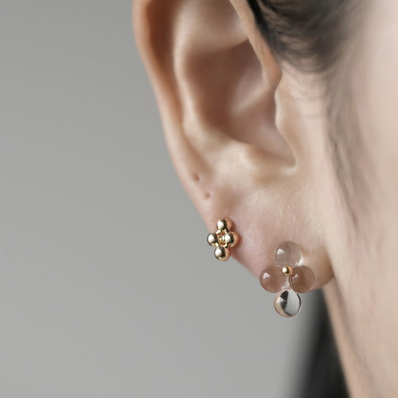 北京仓|BUBUN-organ #12-四颗 菱形 冷工玻璃 耳环(小号)[日本设计师]