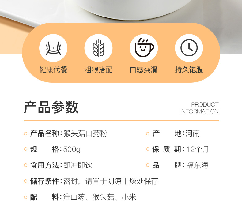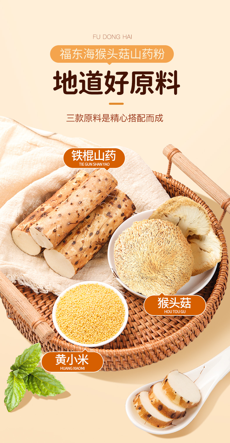 福东海 猴头菇山药粉500克/罐淮山药小米猴头菇粉代餐