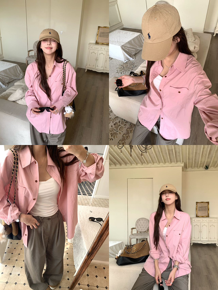 廓感版型,盖臀衣长,可内搭,可外穿,怎么穿都很美~前片双压分割+单侧贴袋 比普通衬衫更有结构。