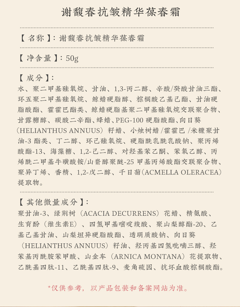 【加赠同款体验装】谢馥春 抗皱精华葆春霜 50克