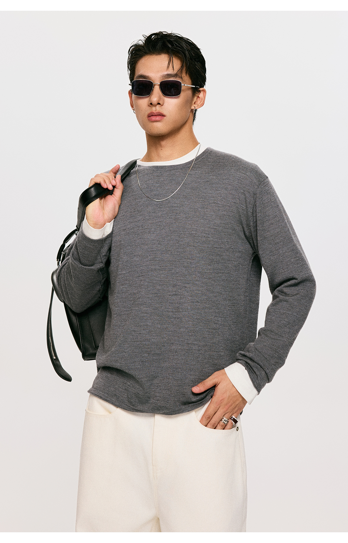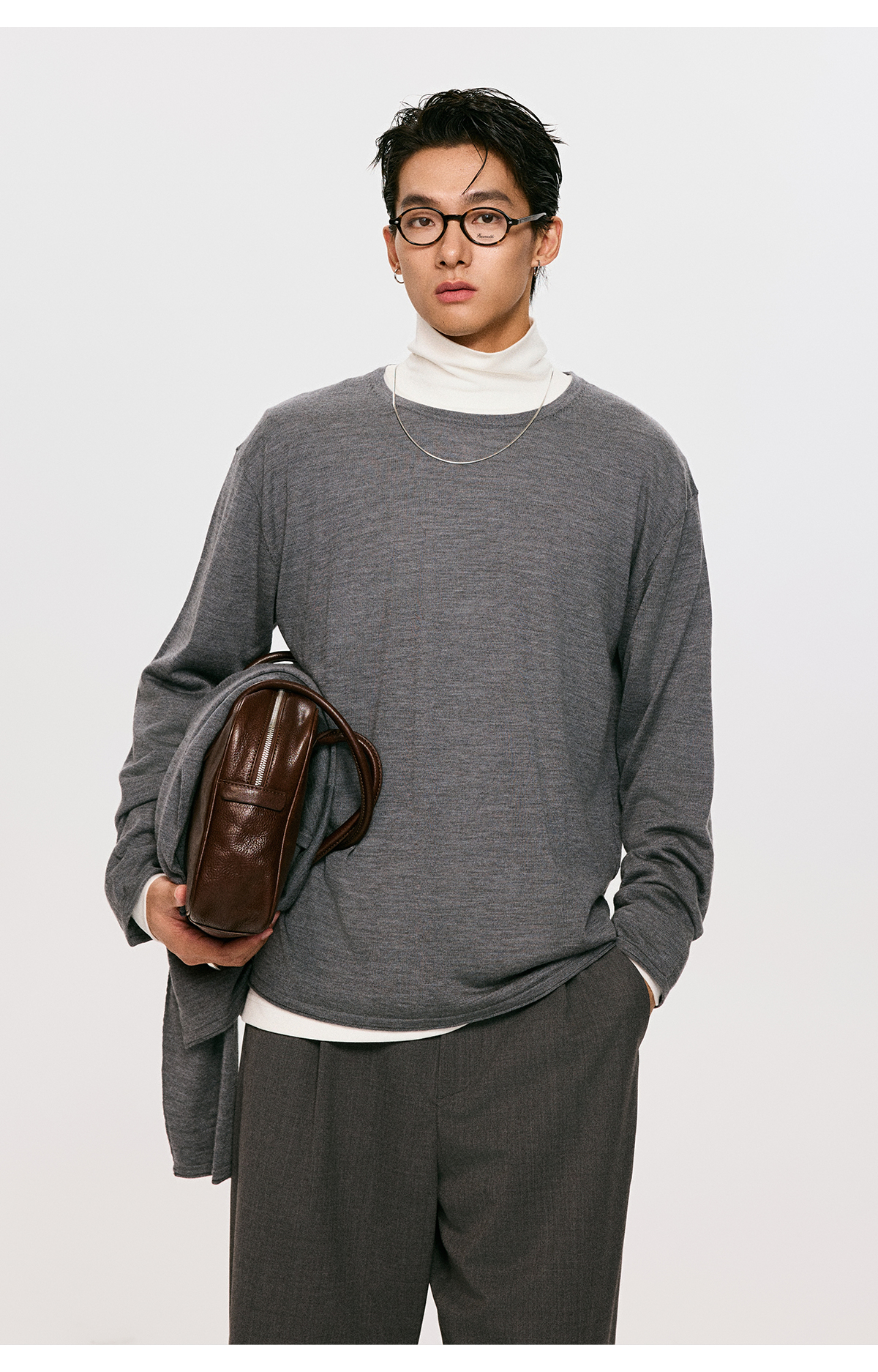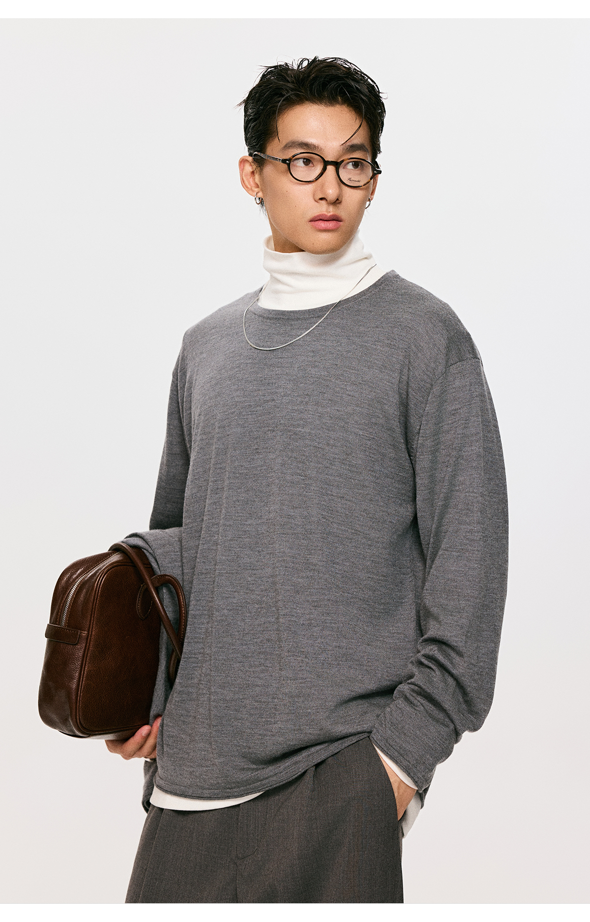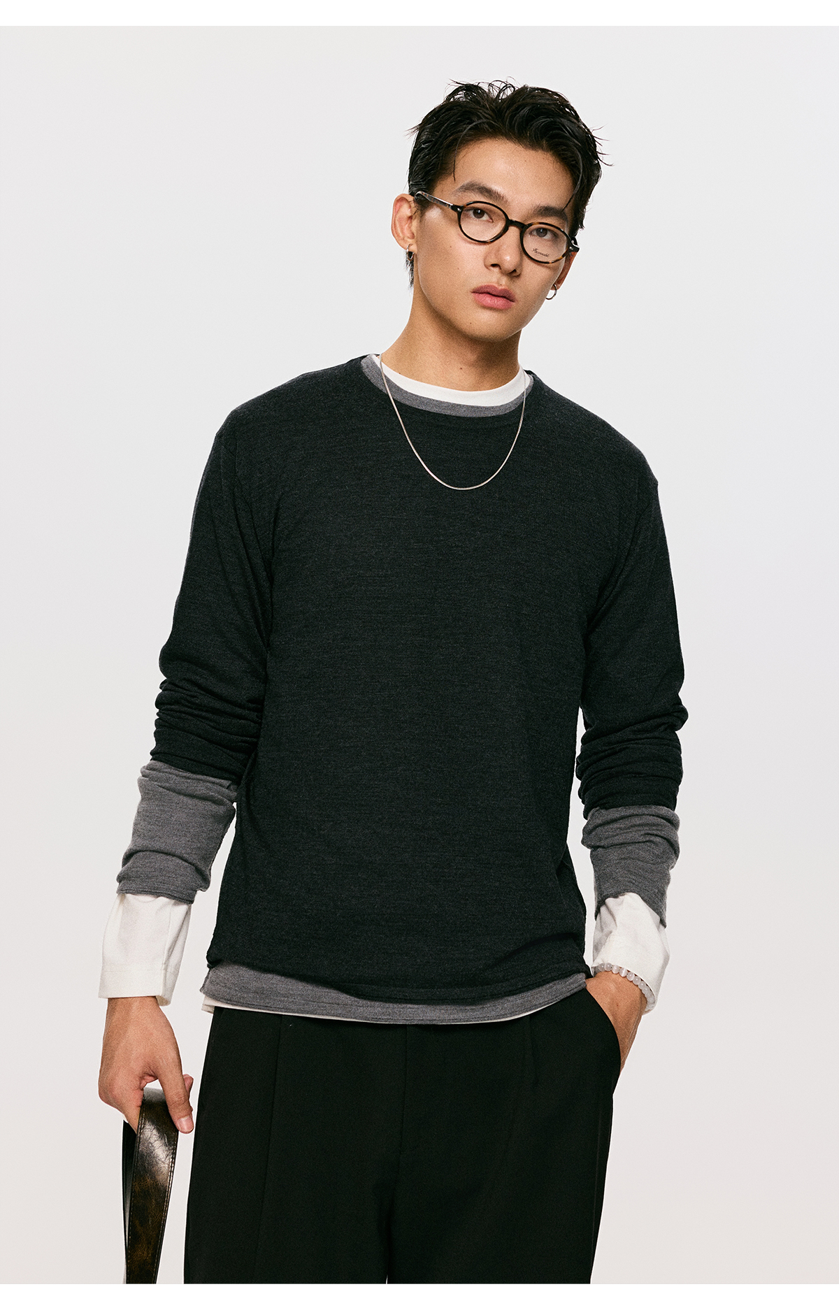 棉仓3561026001-【设计师合作版】松弛学者 冬季男士精纺羊毛简约设计圆领毛衣