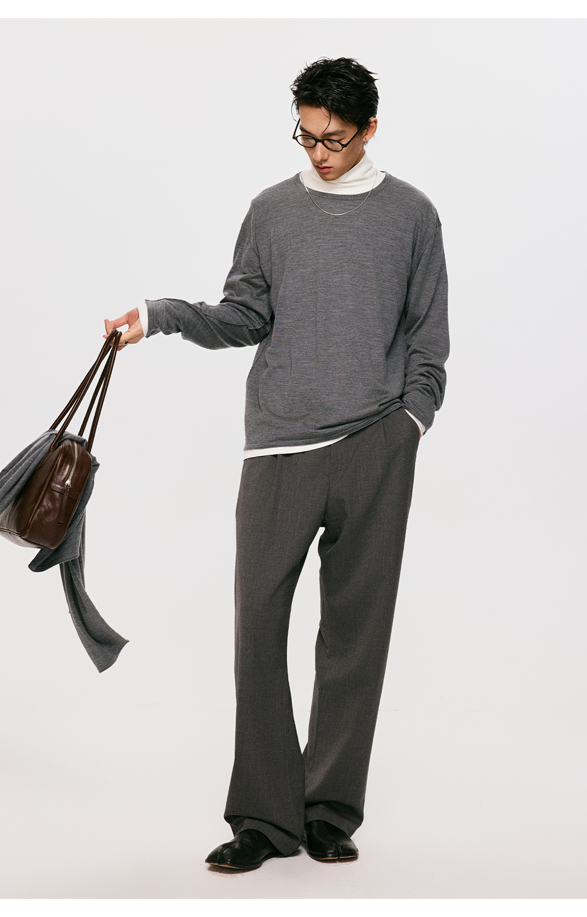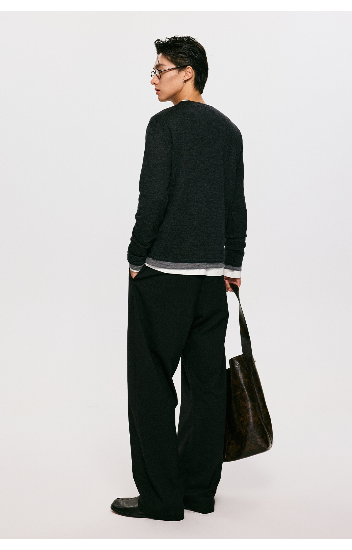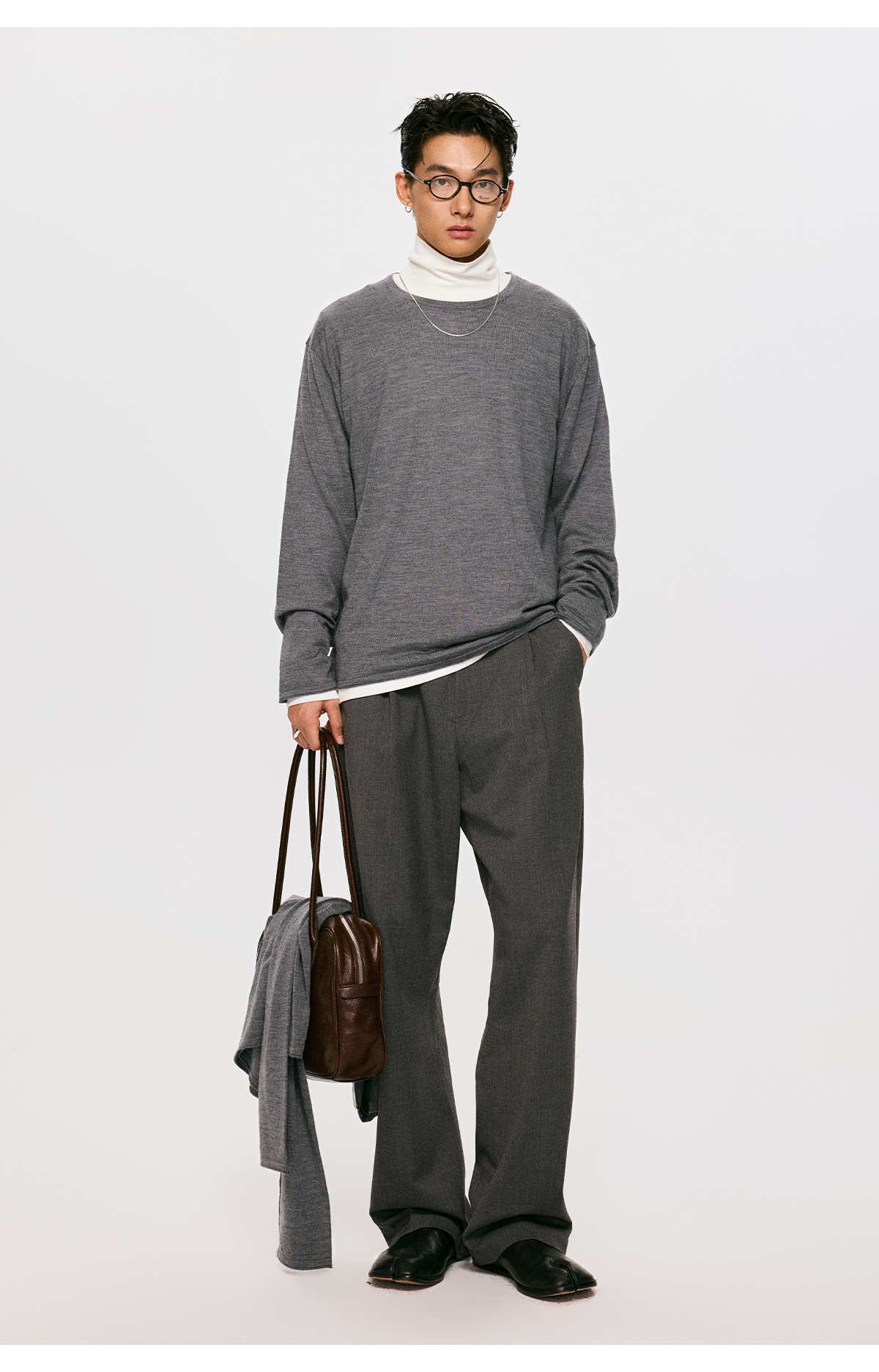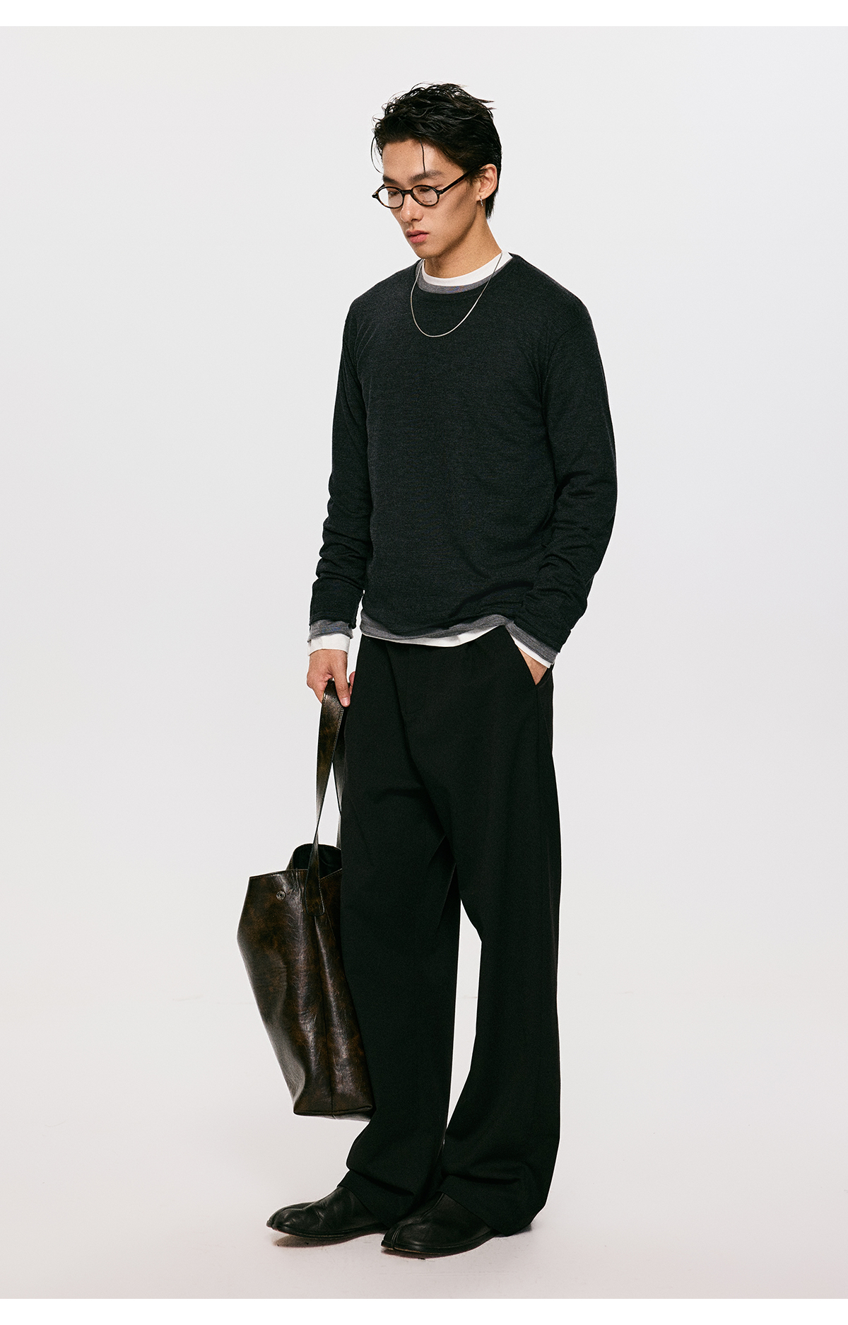 棉仓3561026001-【设计师合作版】松弛学者 冬季男士精纺羊毛简约设计圆领毛衣