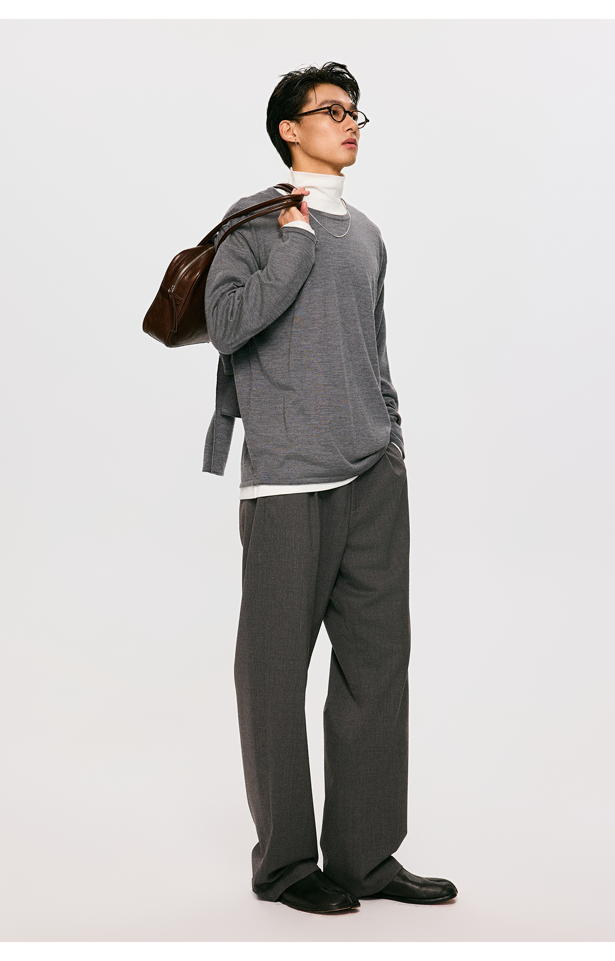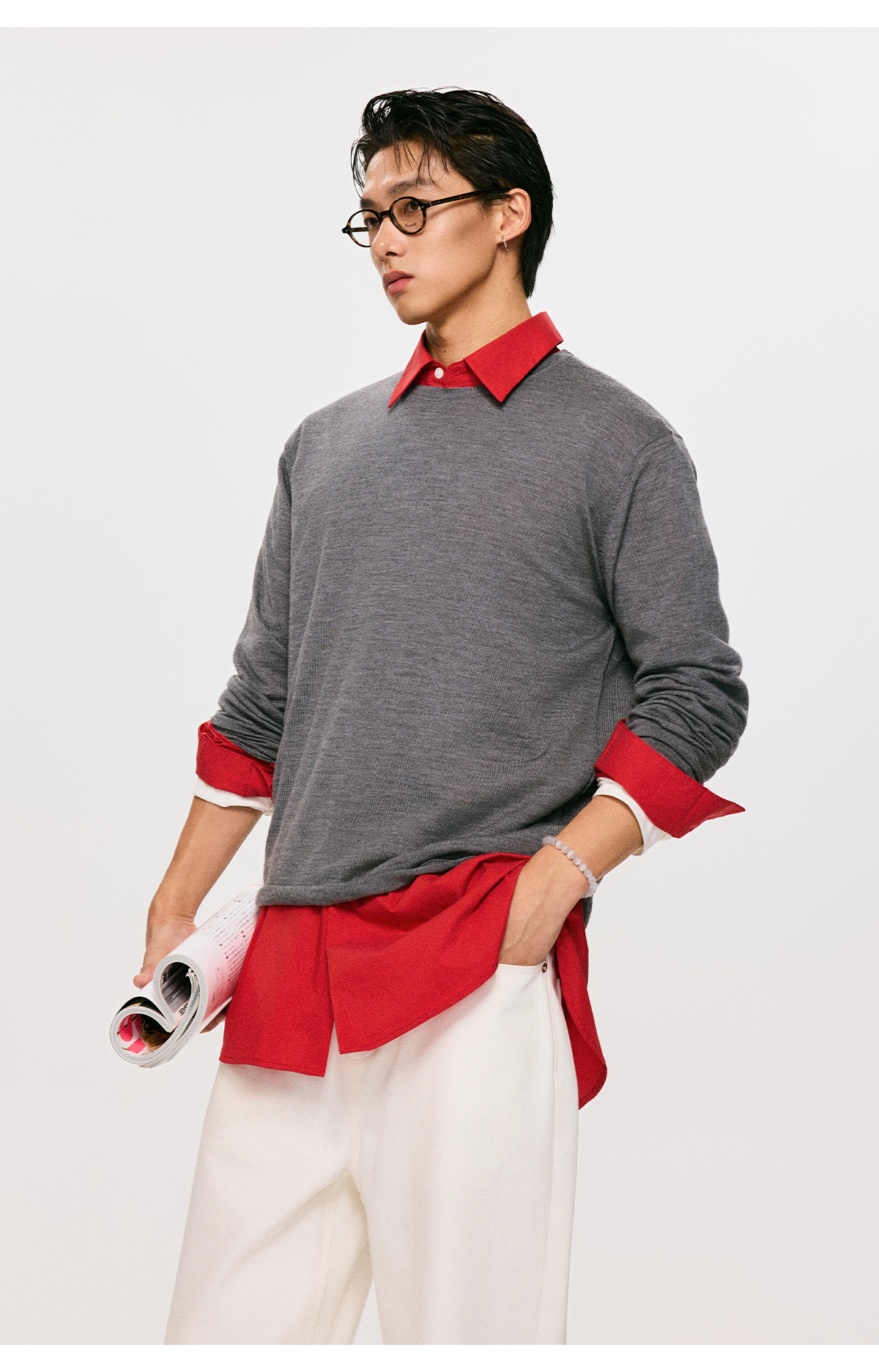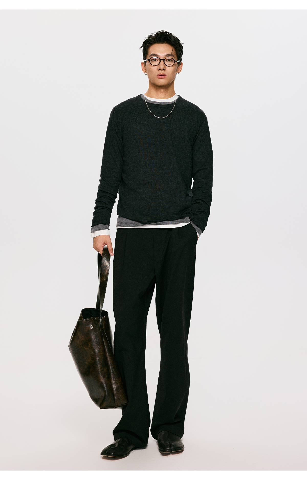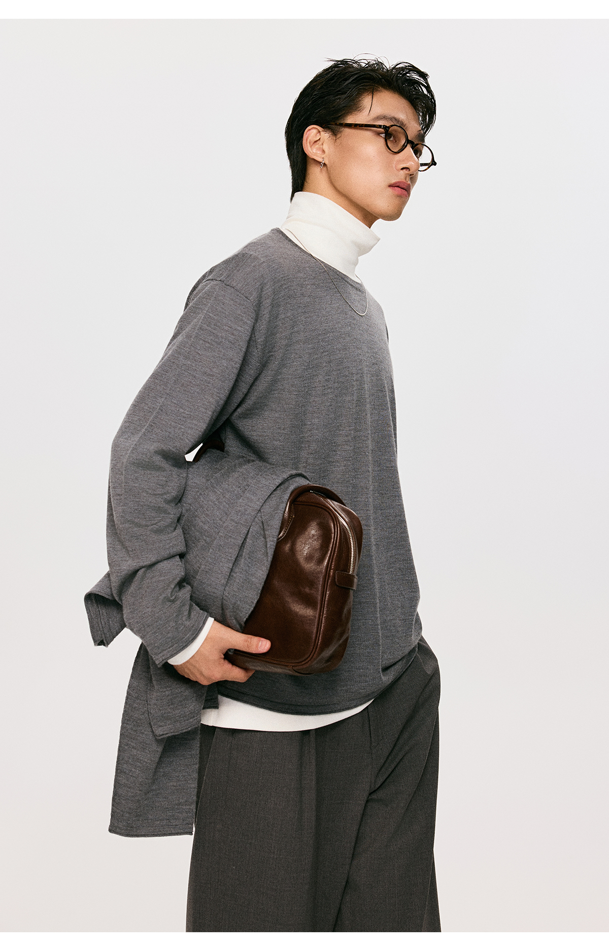 棉仓3561026001-【设计师合作版】松弛学者 冬季男士精纺羊毛简约设计圆领毛衣