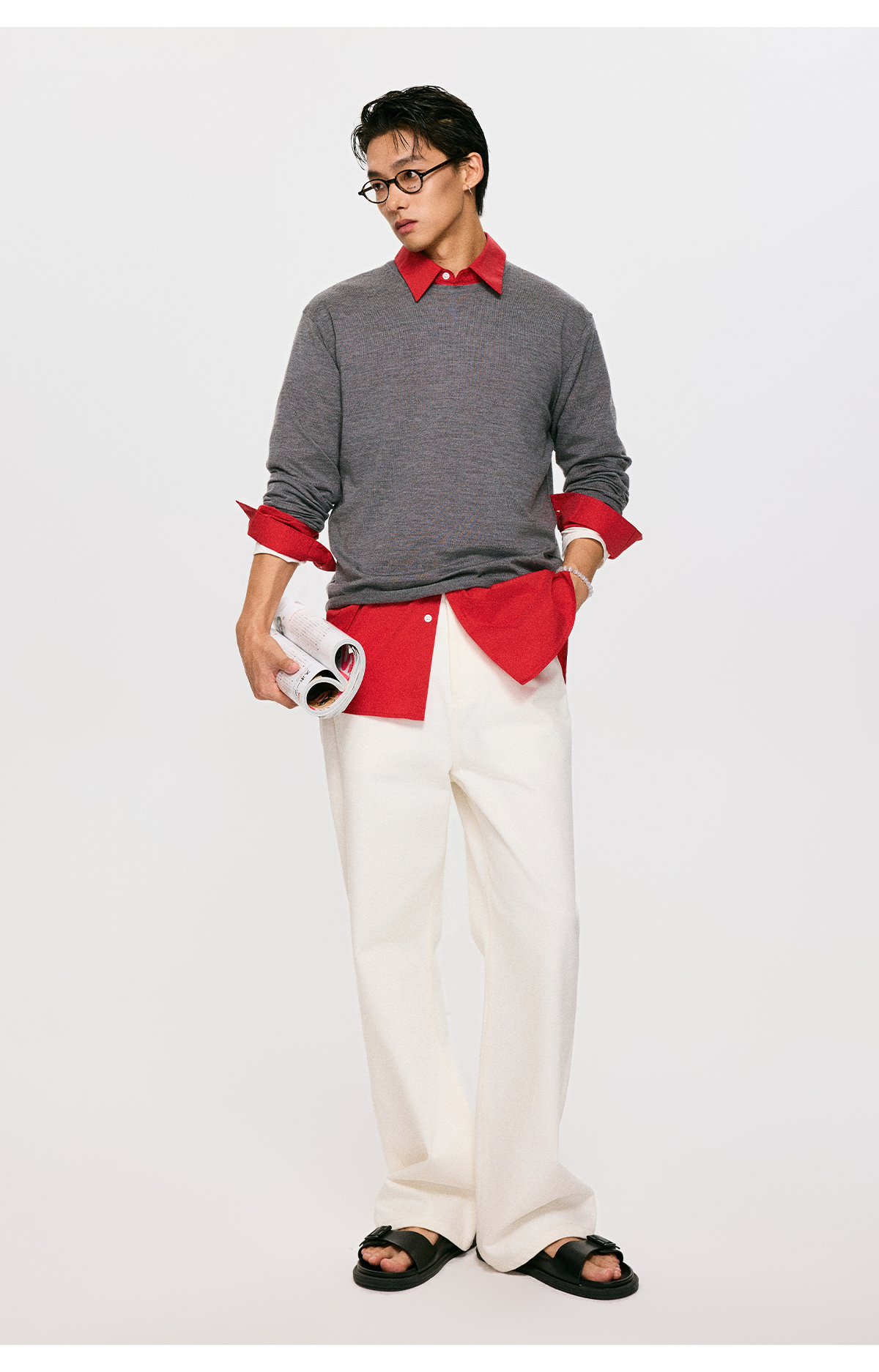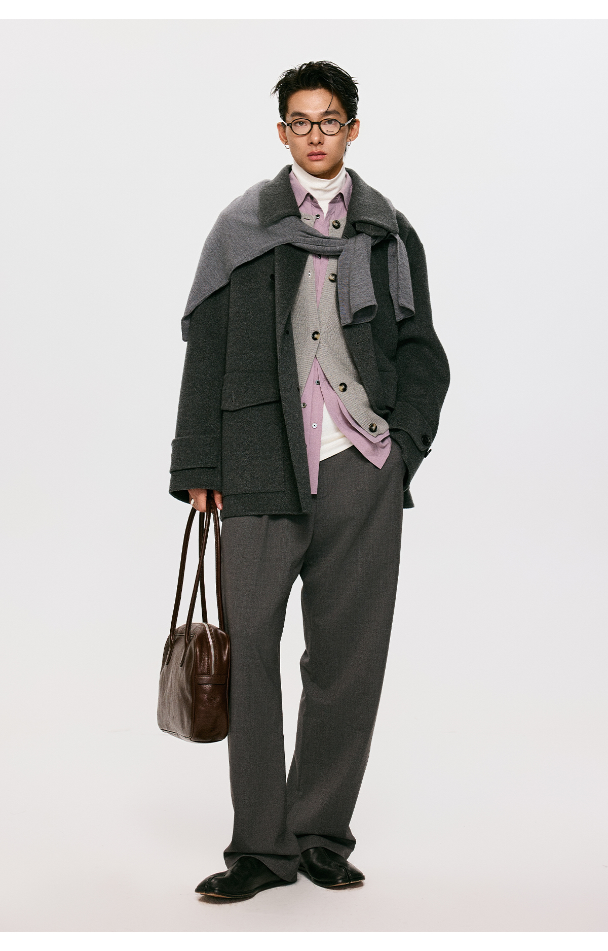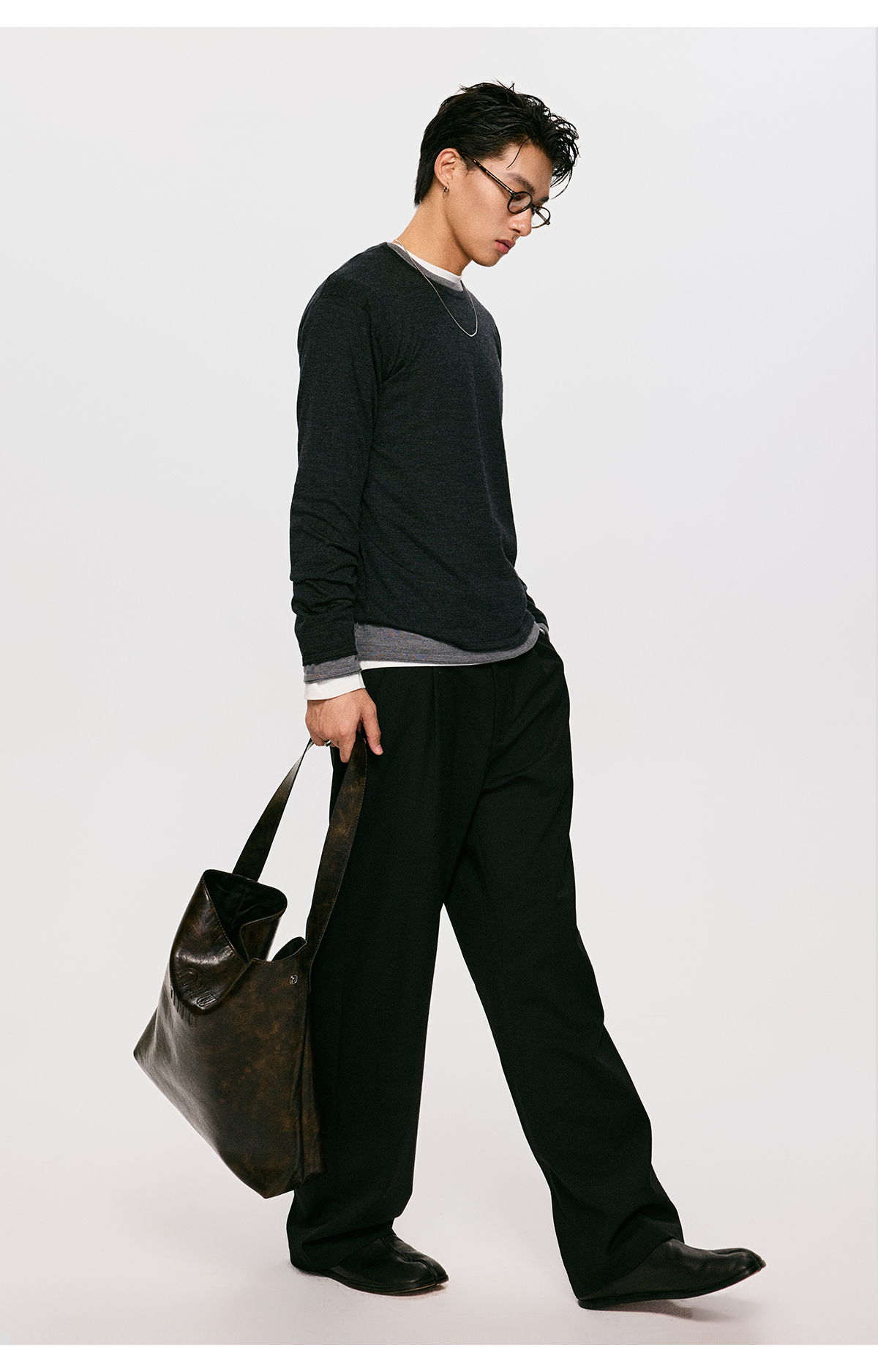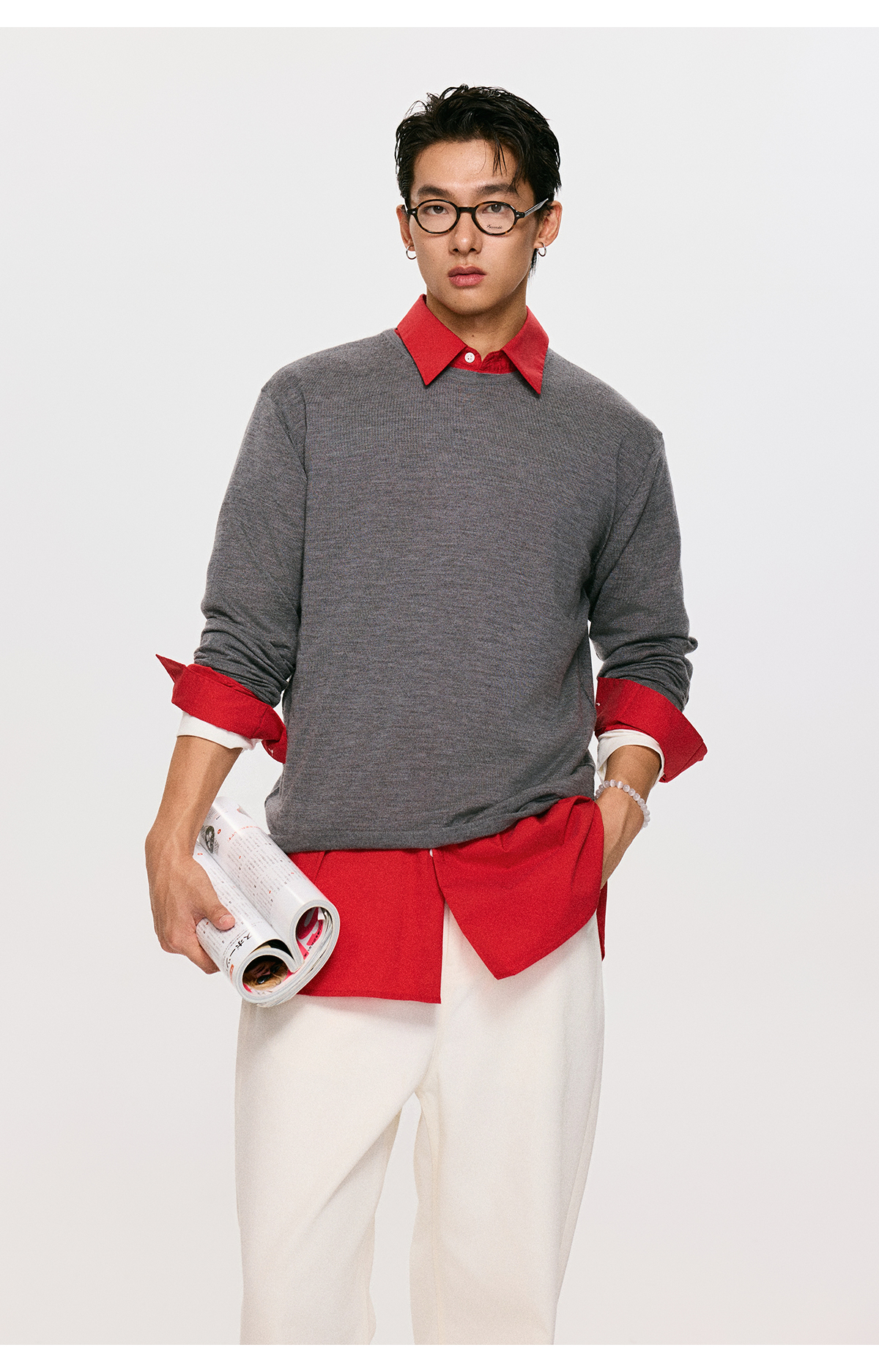 棉仓3561026001-【设计师合作版】松弛学者 冬季男士精纺羊毛简约设计圆领毛衣