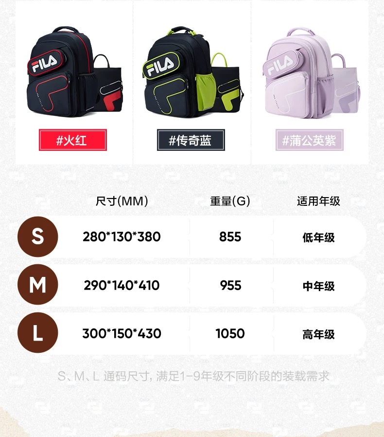 【5F】【蝶翼魔法包】FILA斐乐儿童双肩包护脊减负书包
