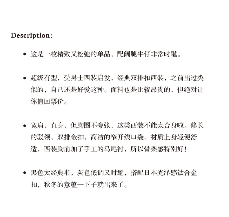 [特价]双排金扣廓形高智感西装 100%羊毛