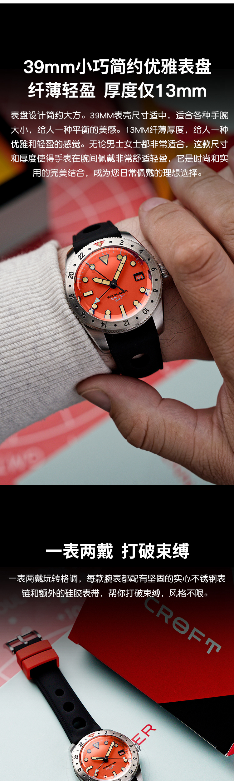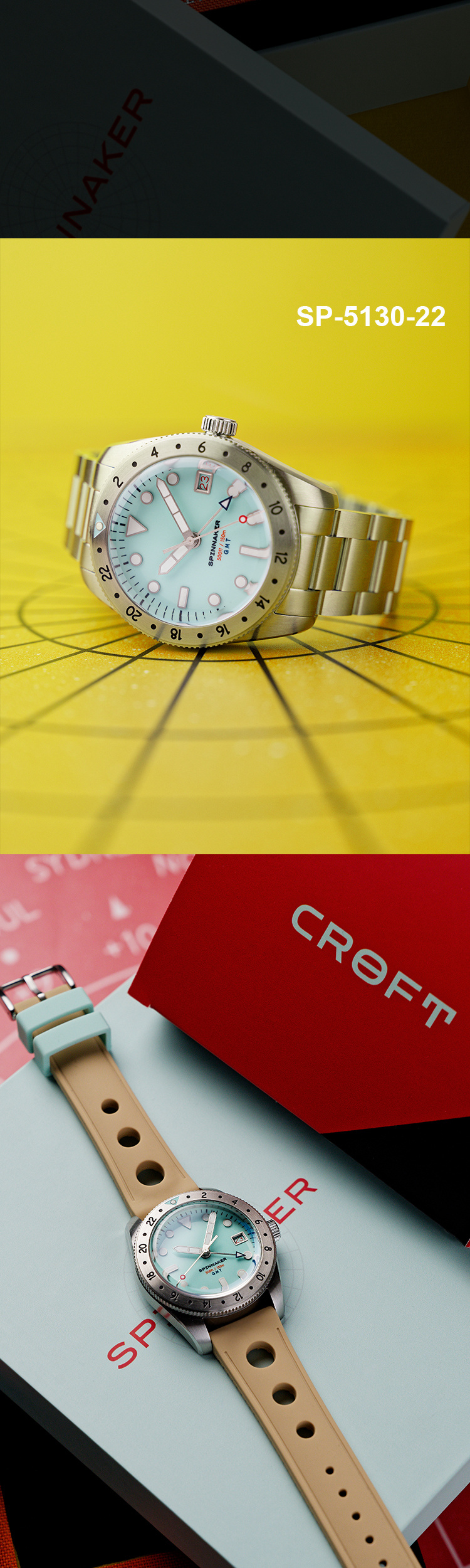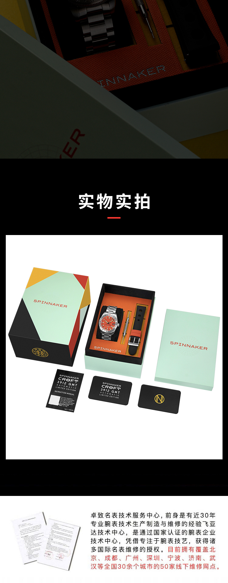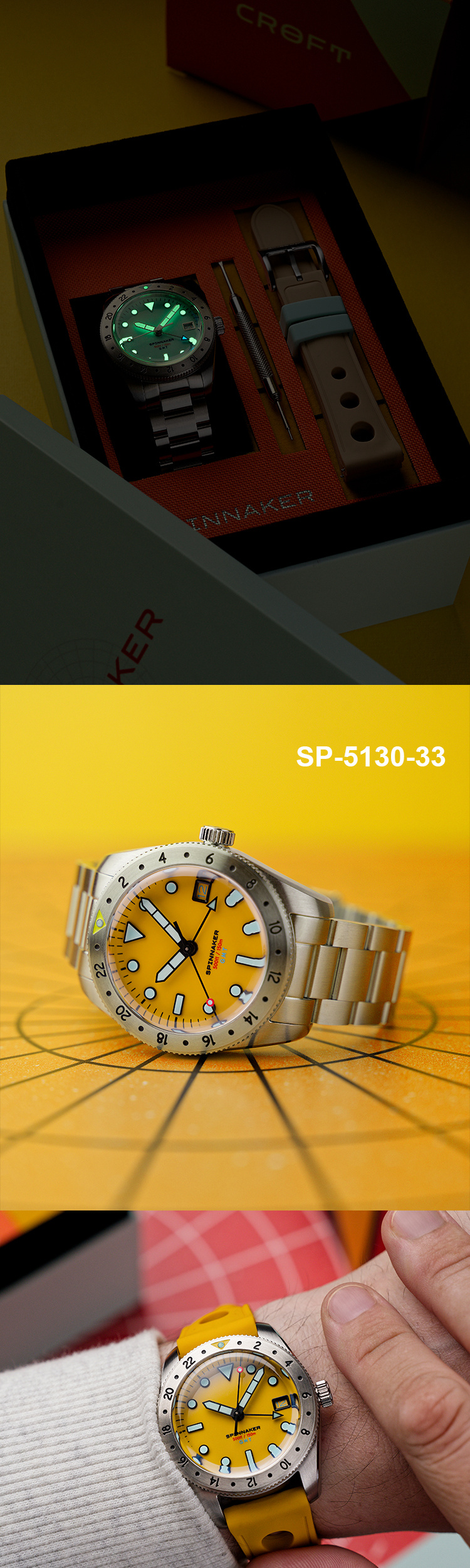新款SPINNAKER三角帆39毫米限量版GMT两地时自动机械表夜光5130