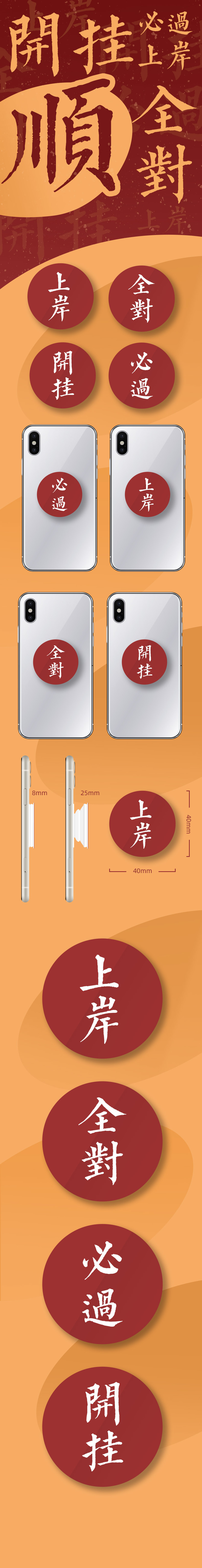 【逢考必过】 好运手机支架 原创图案 气囊支架伸缩吸盘 新年中国红大吉大利