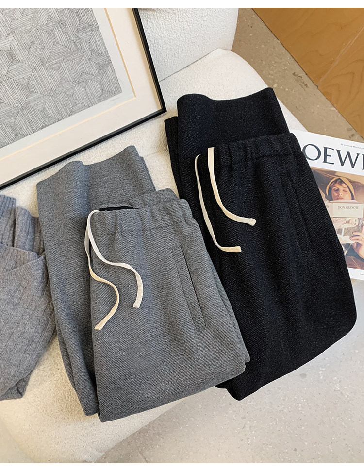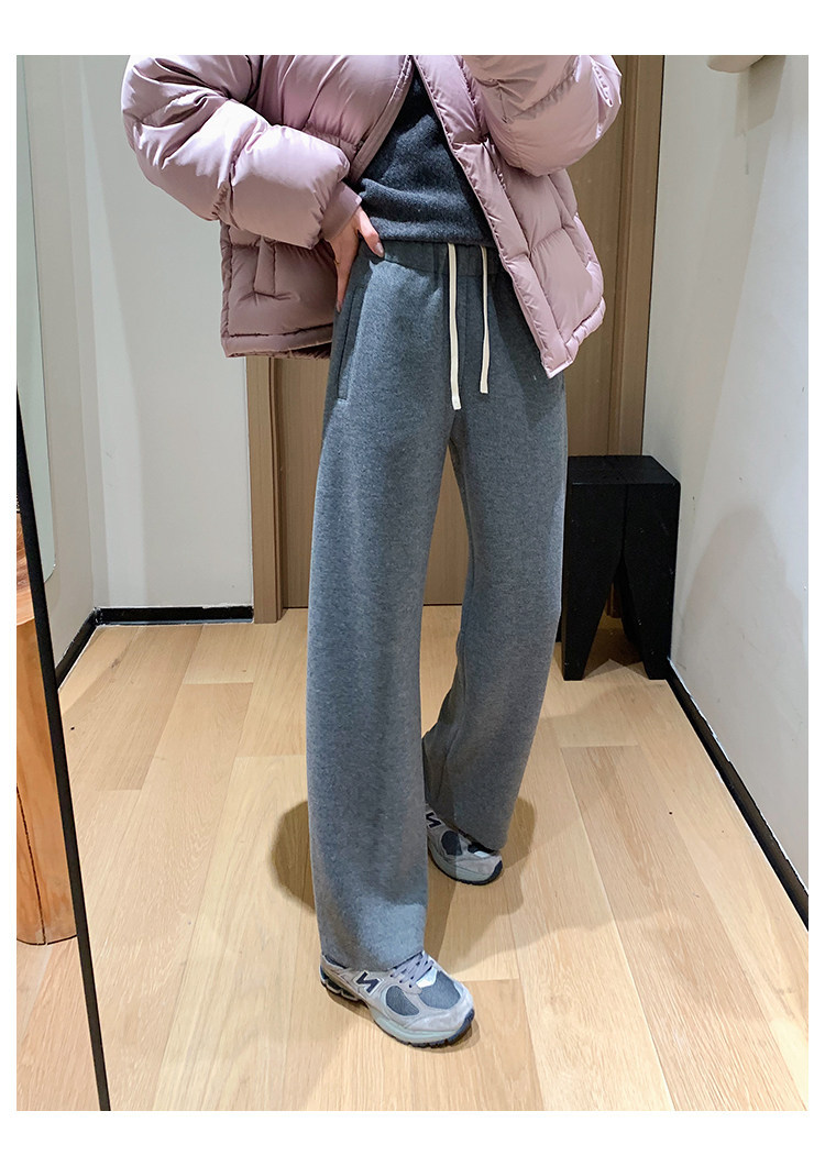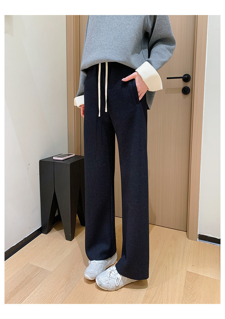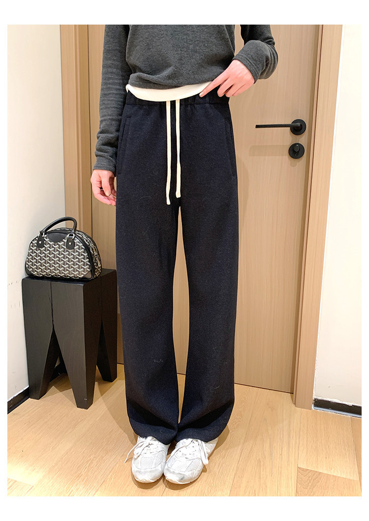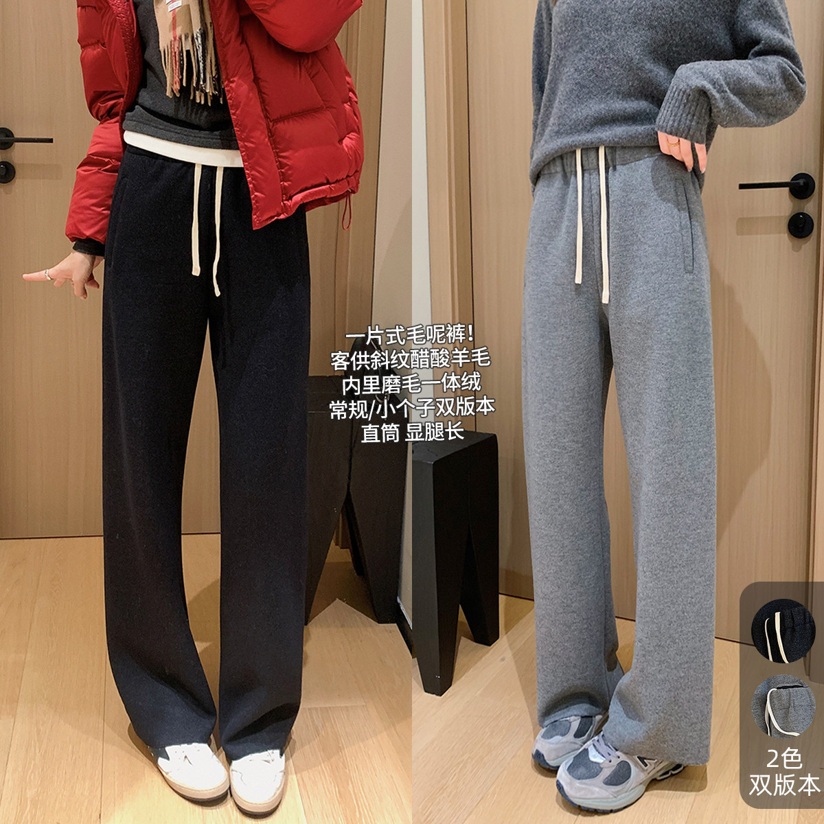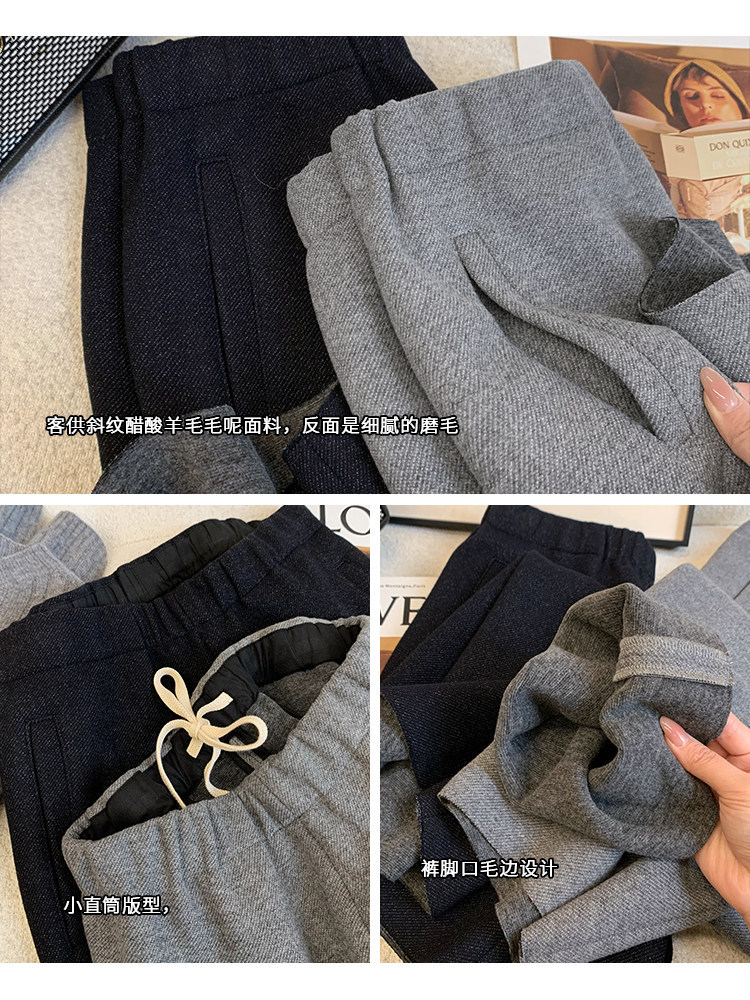 客供斜纹醋酸羊毛一体绒毛边直筒休闲裤!#