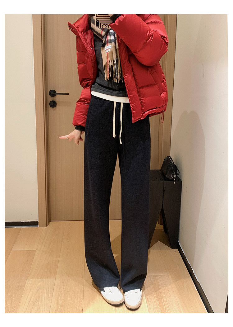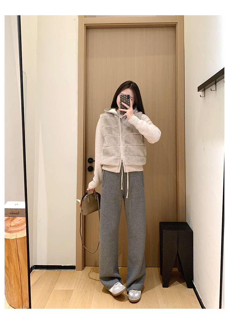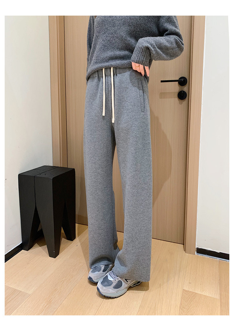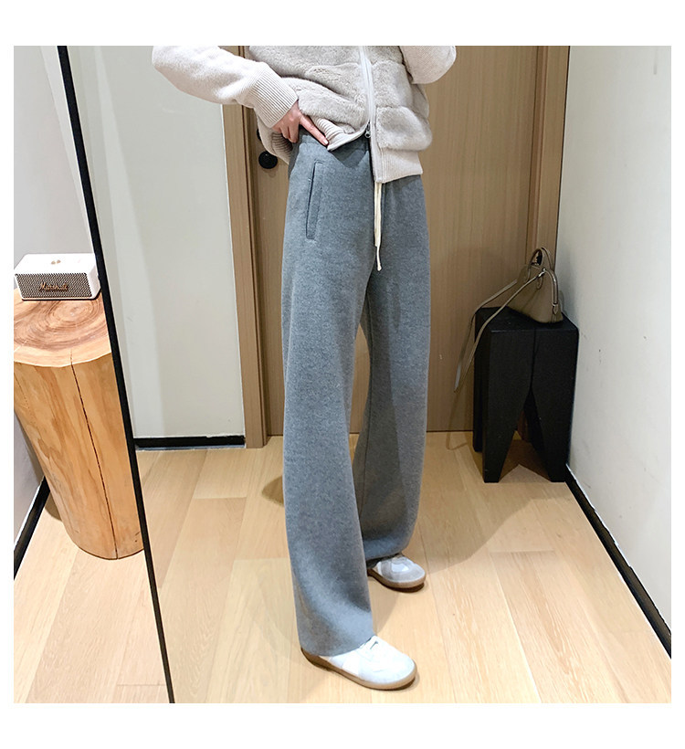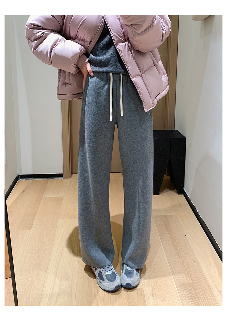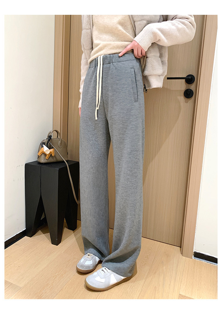 客供斜纹醋酸羊毛一体绒毛边直筒休闲裤!#