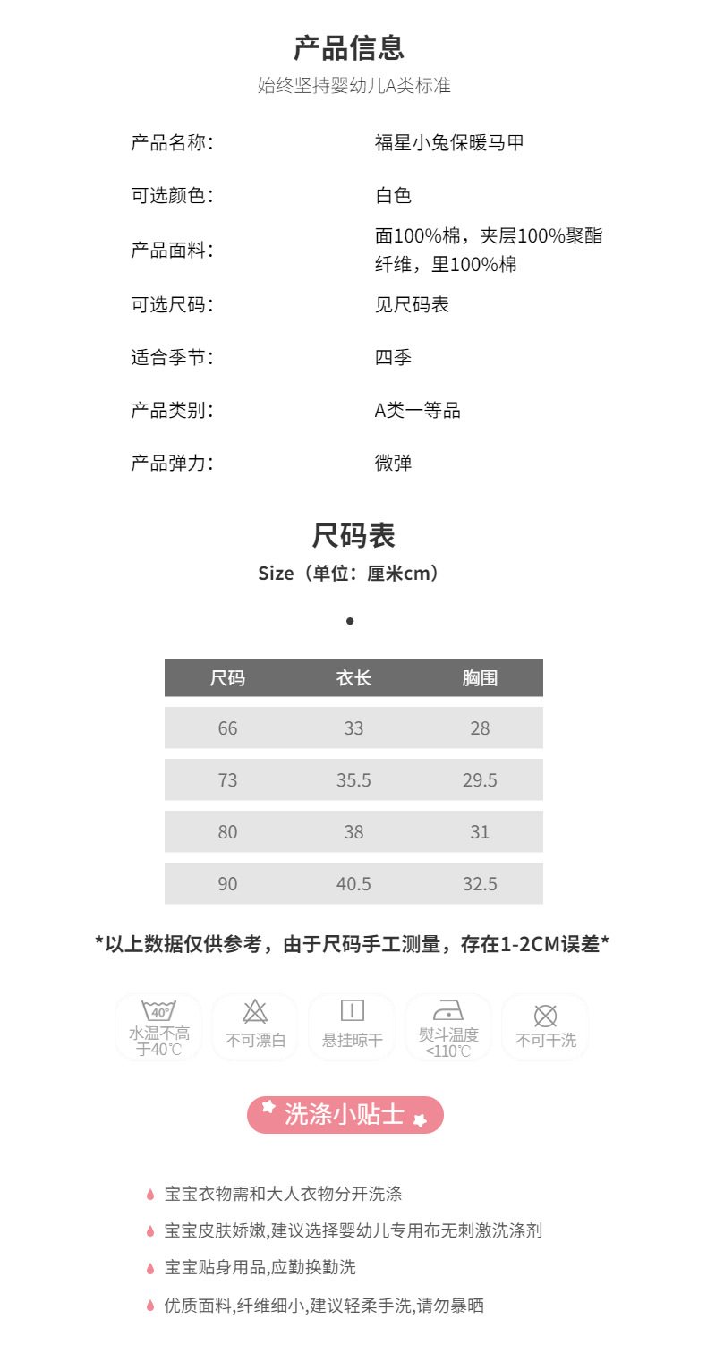 【福星小兔保暖马甲】宝宝马甲儿童春秋季婴儿背心薄纯棉马夹秋冬小童男女婴幼 儿坎肩