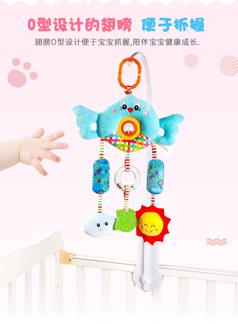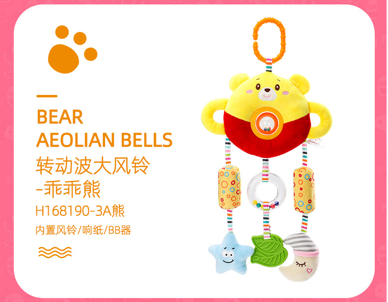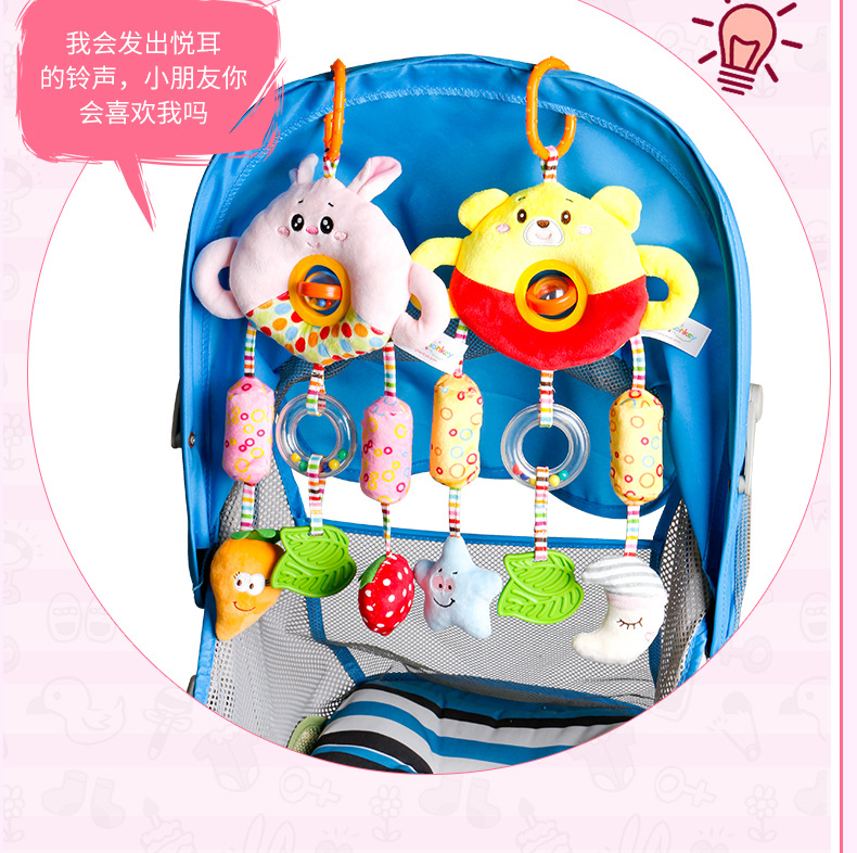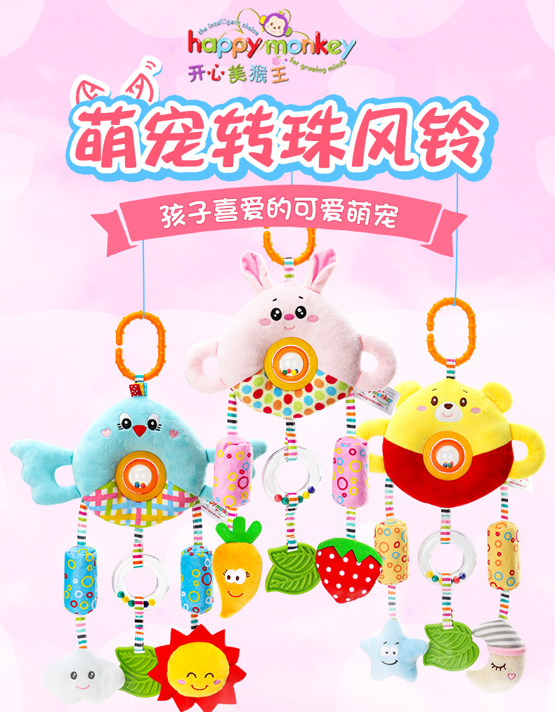 【趣味萌宠转珠风铃】Happy monkey婴幼儿0-1岁床头铃车载摇铃推车挂件宝宝安抚玩具