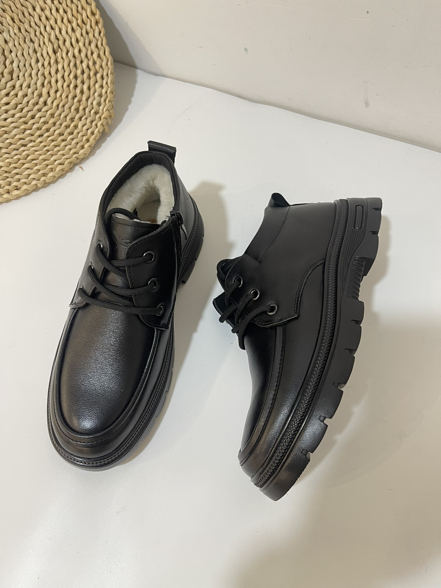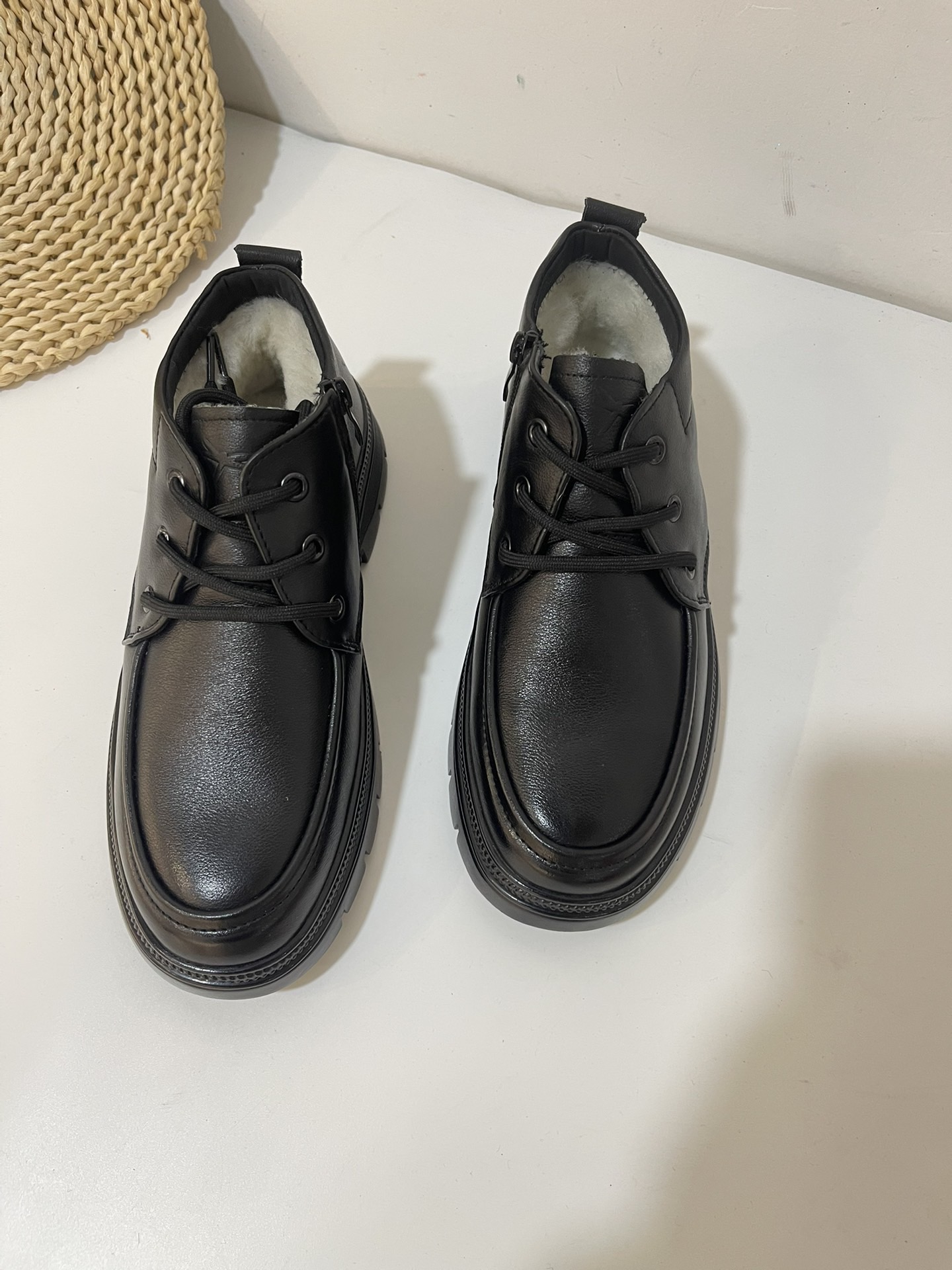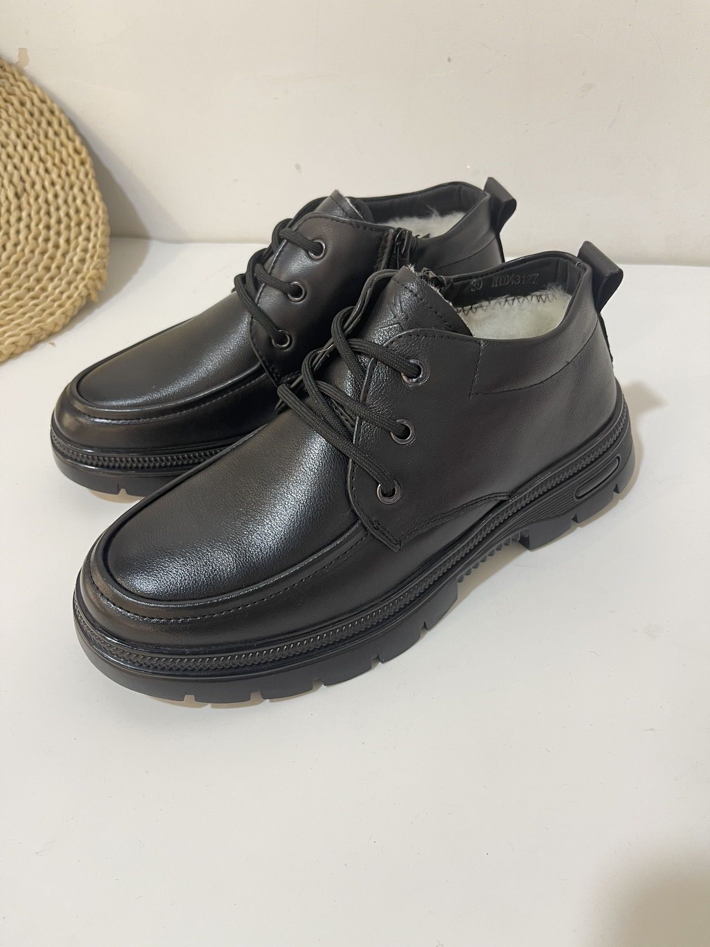 男士头层牛皮羊毛冬季保暖加厚商务休闲大棉皮鞋爸爸鞋材质头层牛皮 内里羊毛 橡胶底