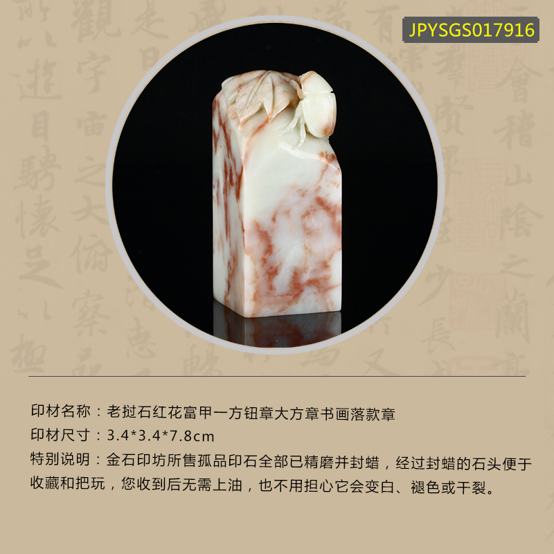 孤品17916老挝石红花富甲一方钮章大方章书画落款章3.4*3.4*7.8cm