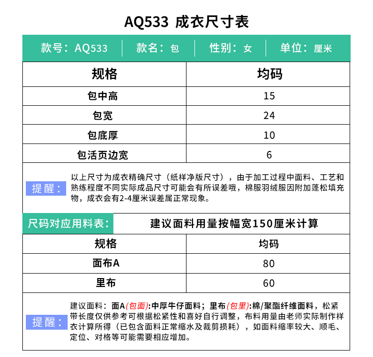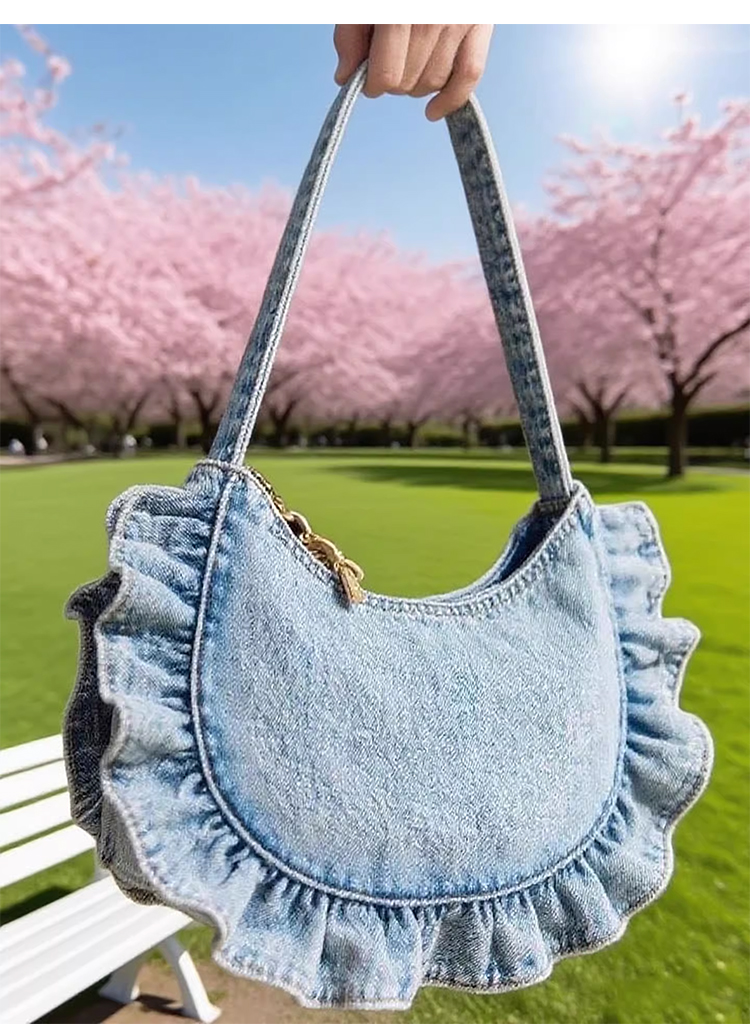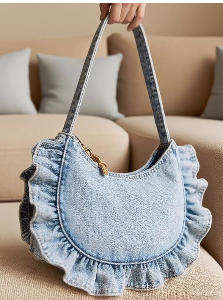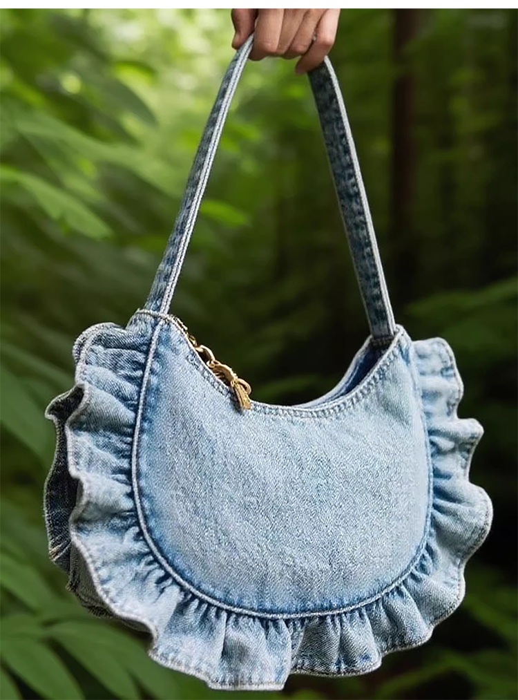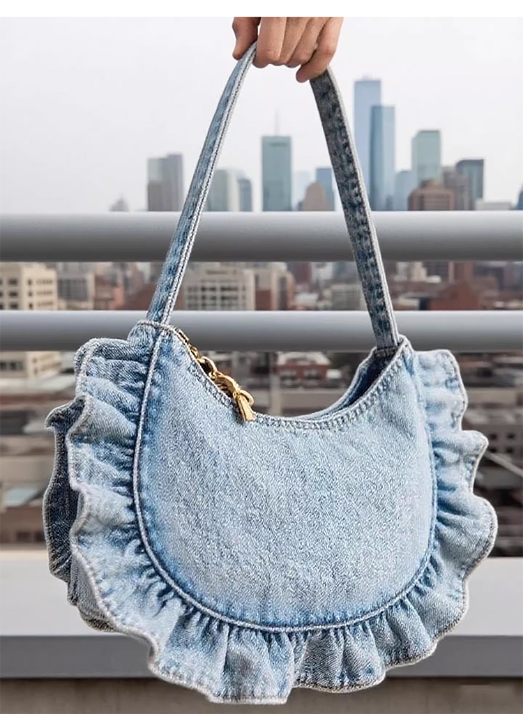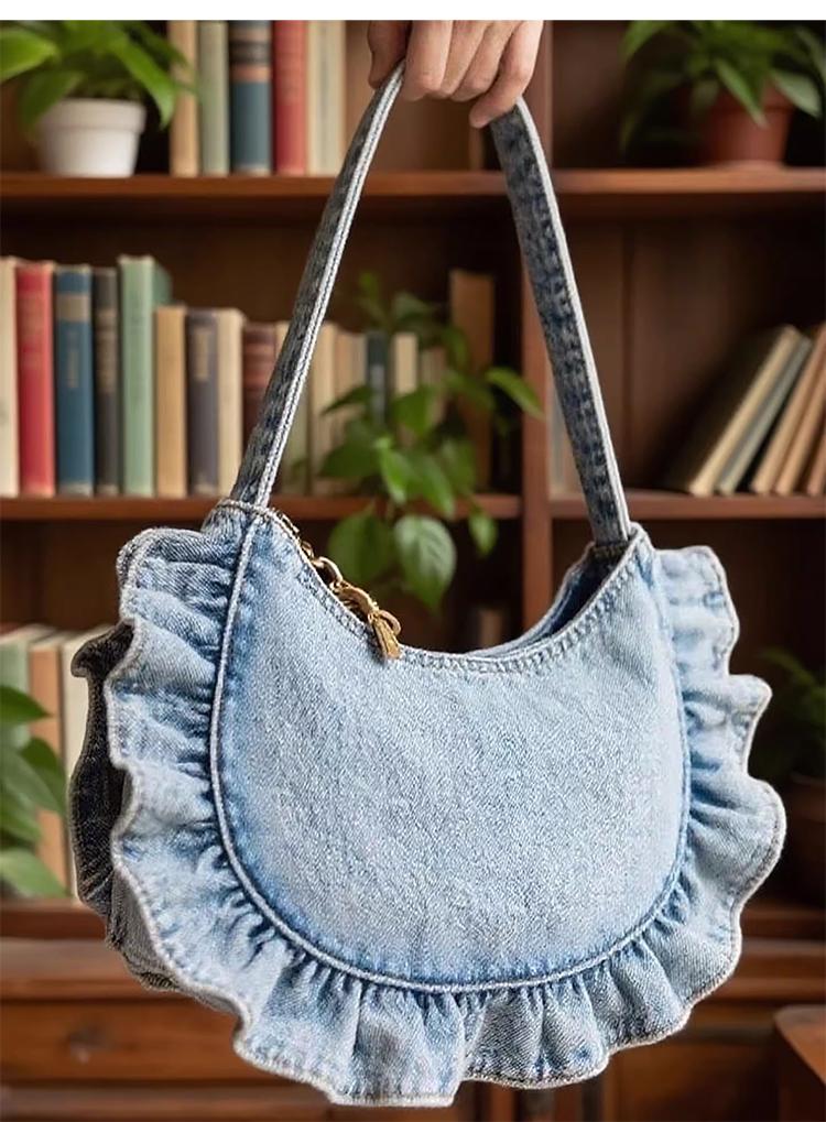 裁缝学苑AQ533韩系牛仔花边褶皱包纸样女装单肩腋下包通勤手提样板