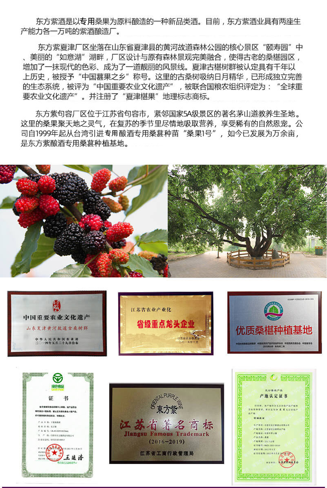 东方紫酒 一紫独秀干型750ml桑葚低度果酒
