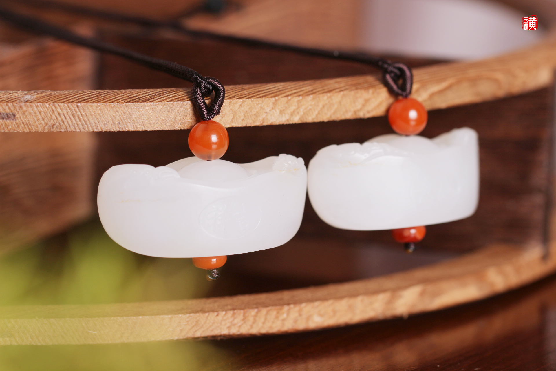 和田玉羊脂白玉【元宝】吊坠一对
